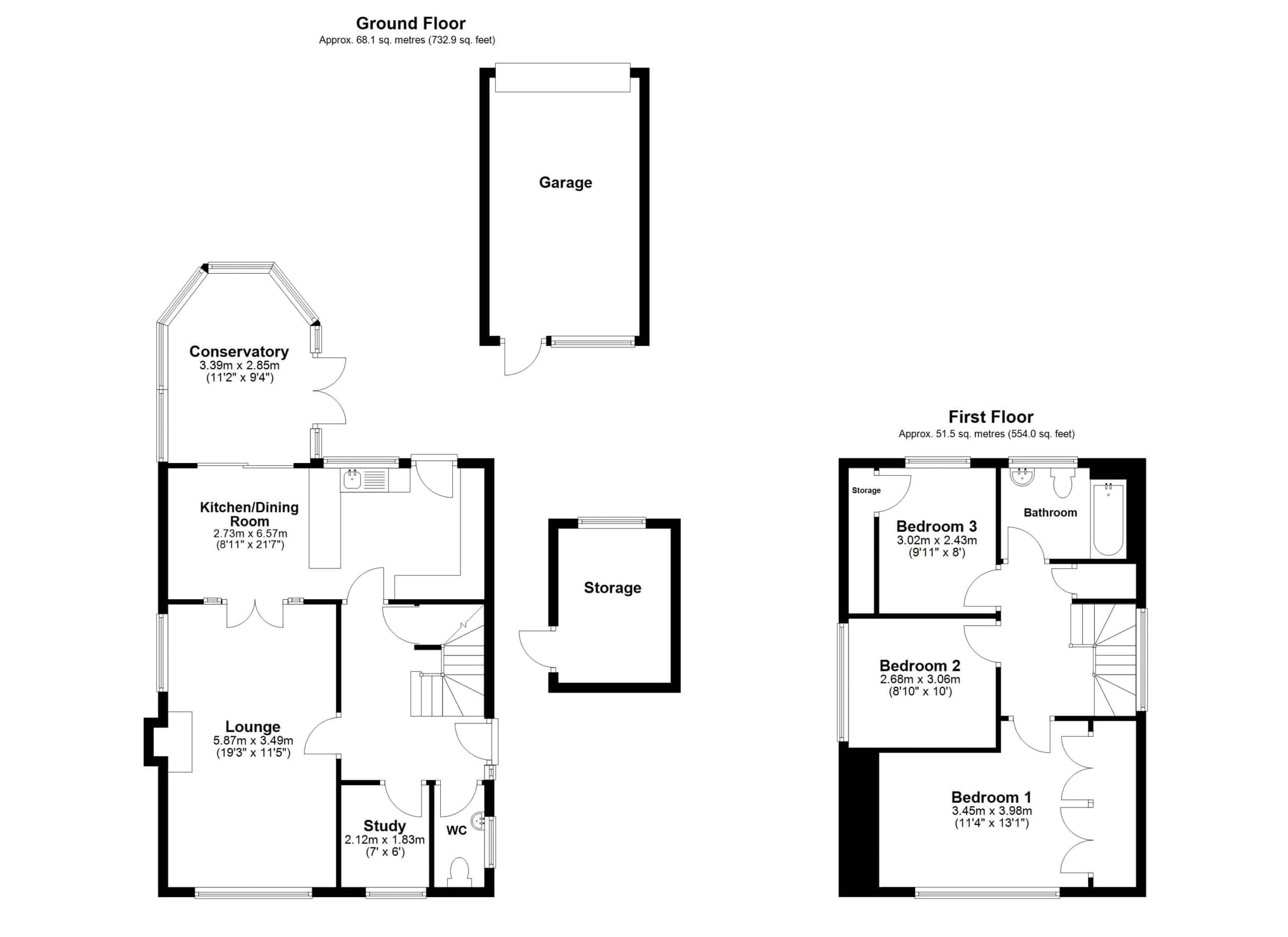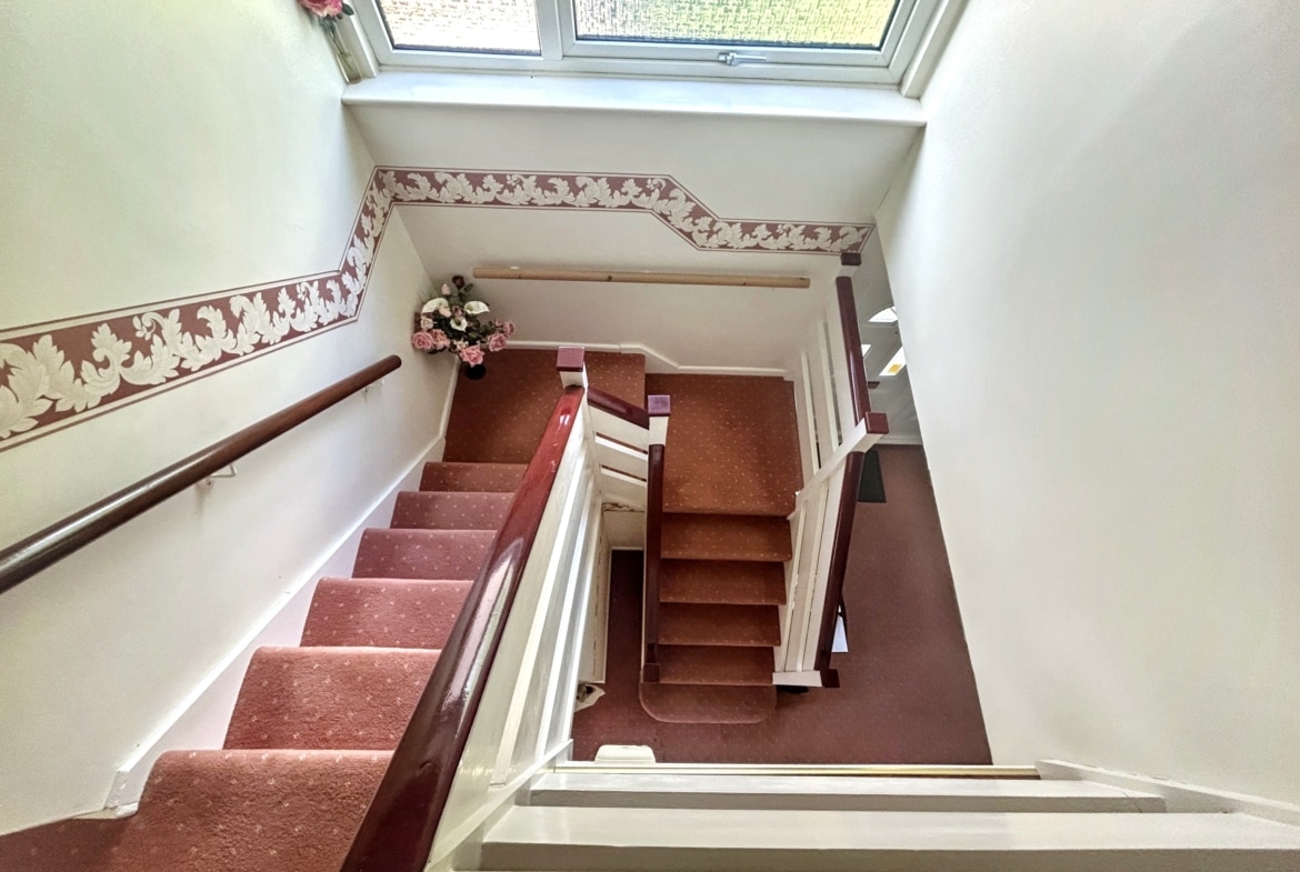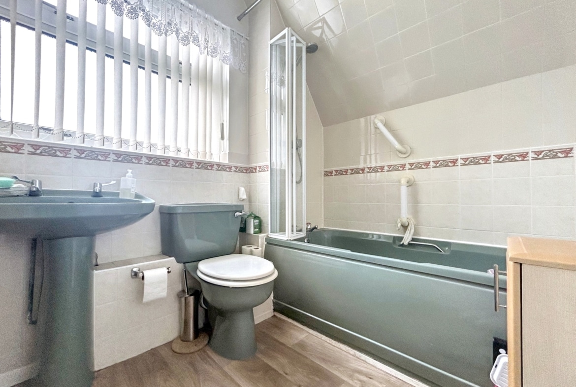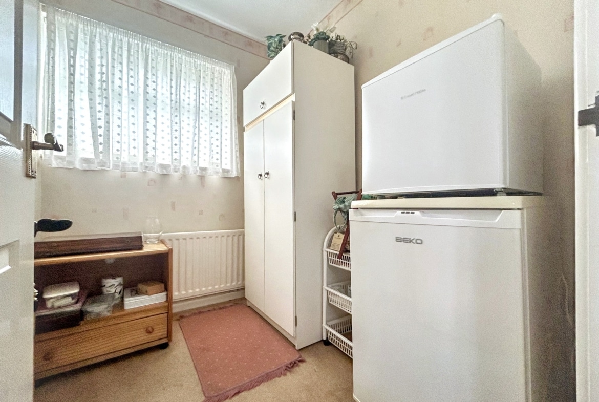Upstairs, the property offers three well-proportioned bedrooms, with the principal bedroom benefiting from ample built-in storage. The first floor also includes a family bathroom and additional storage space.