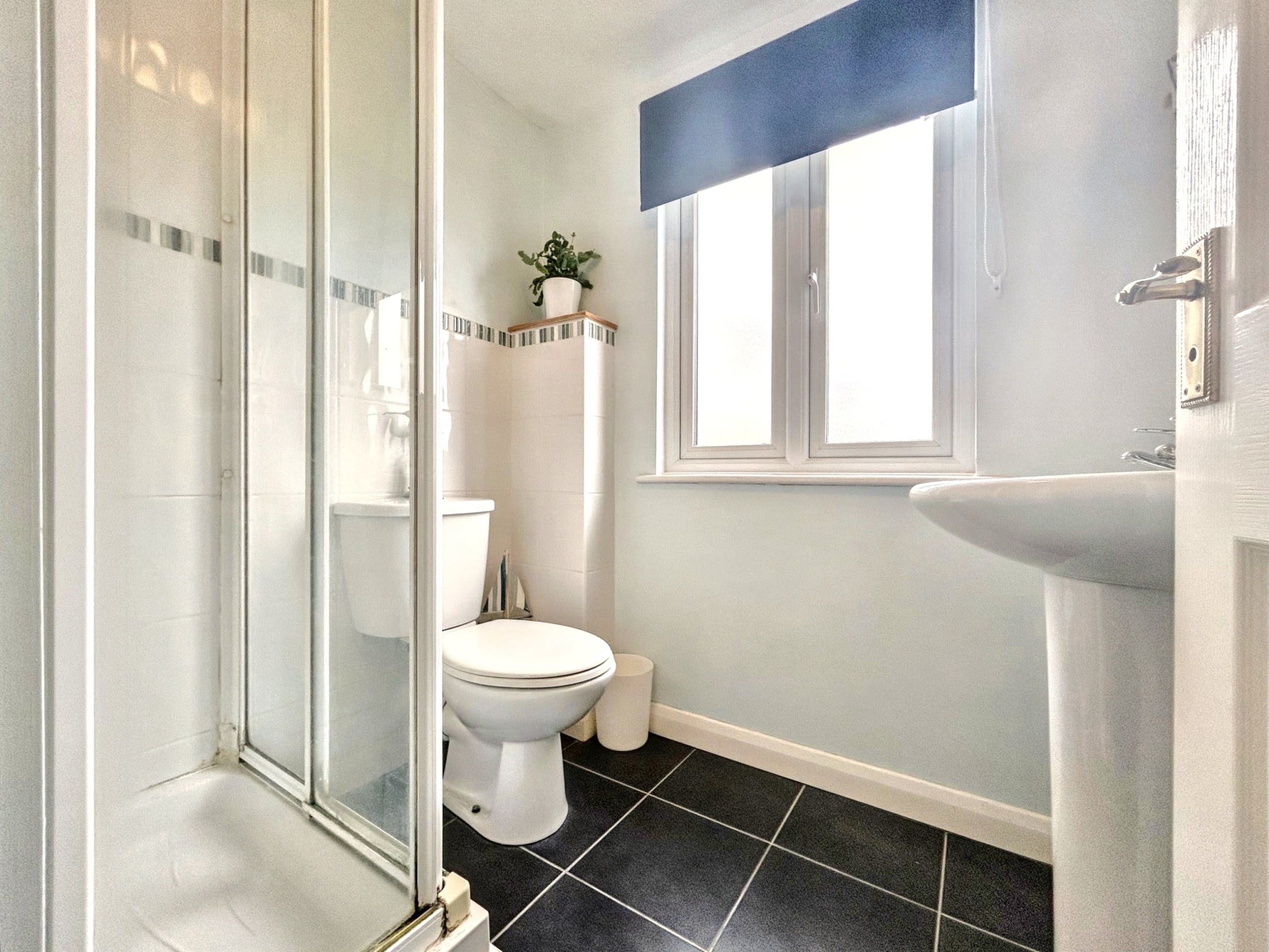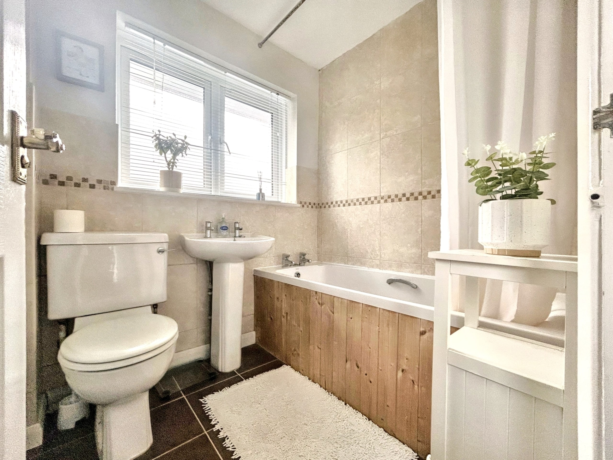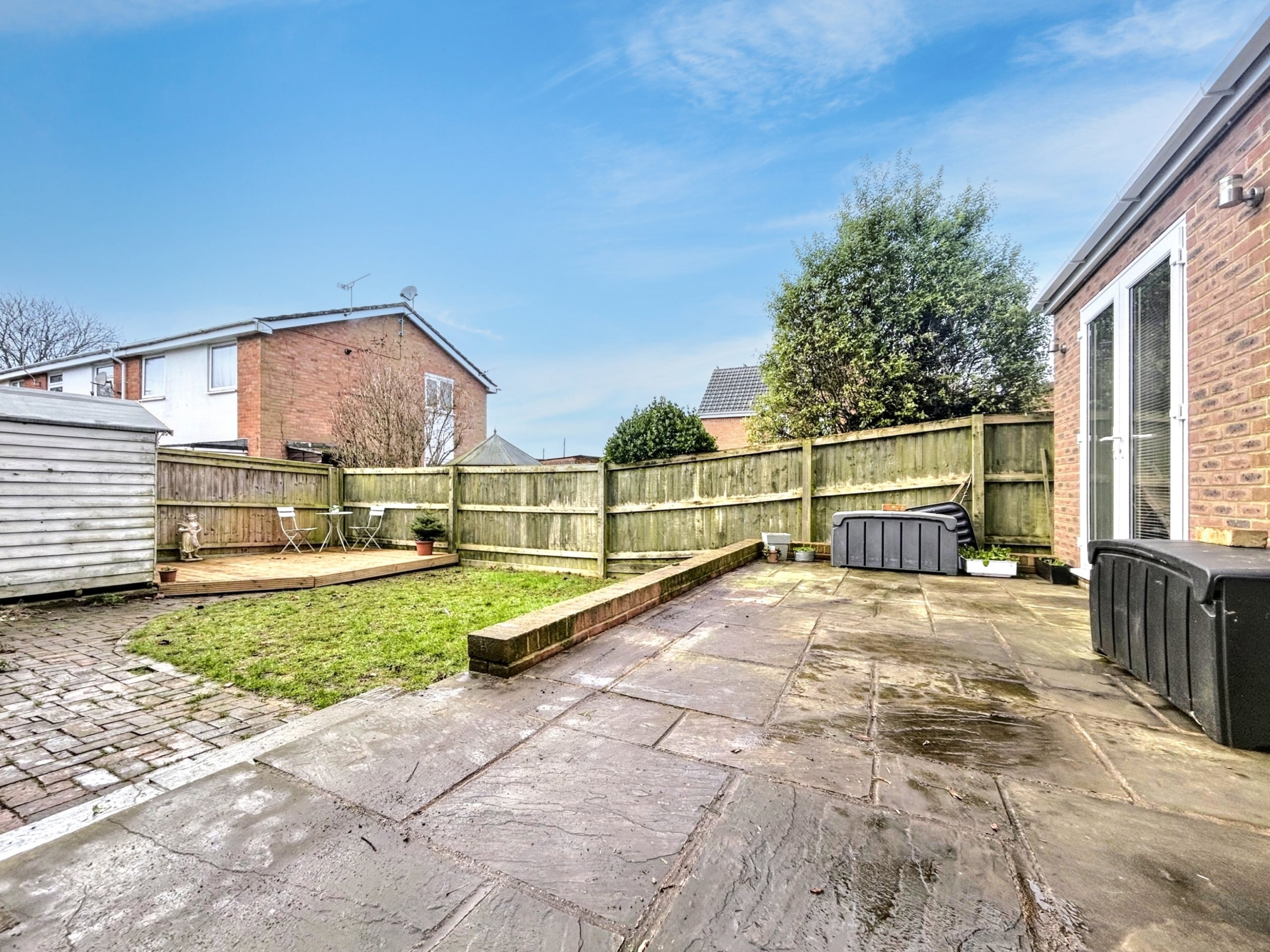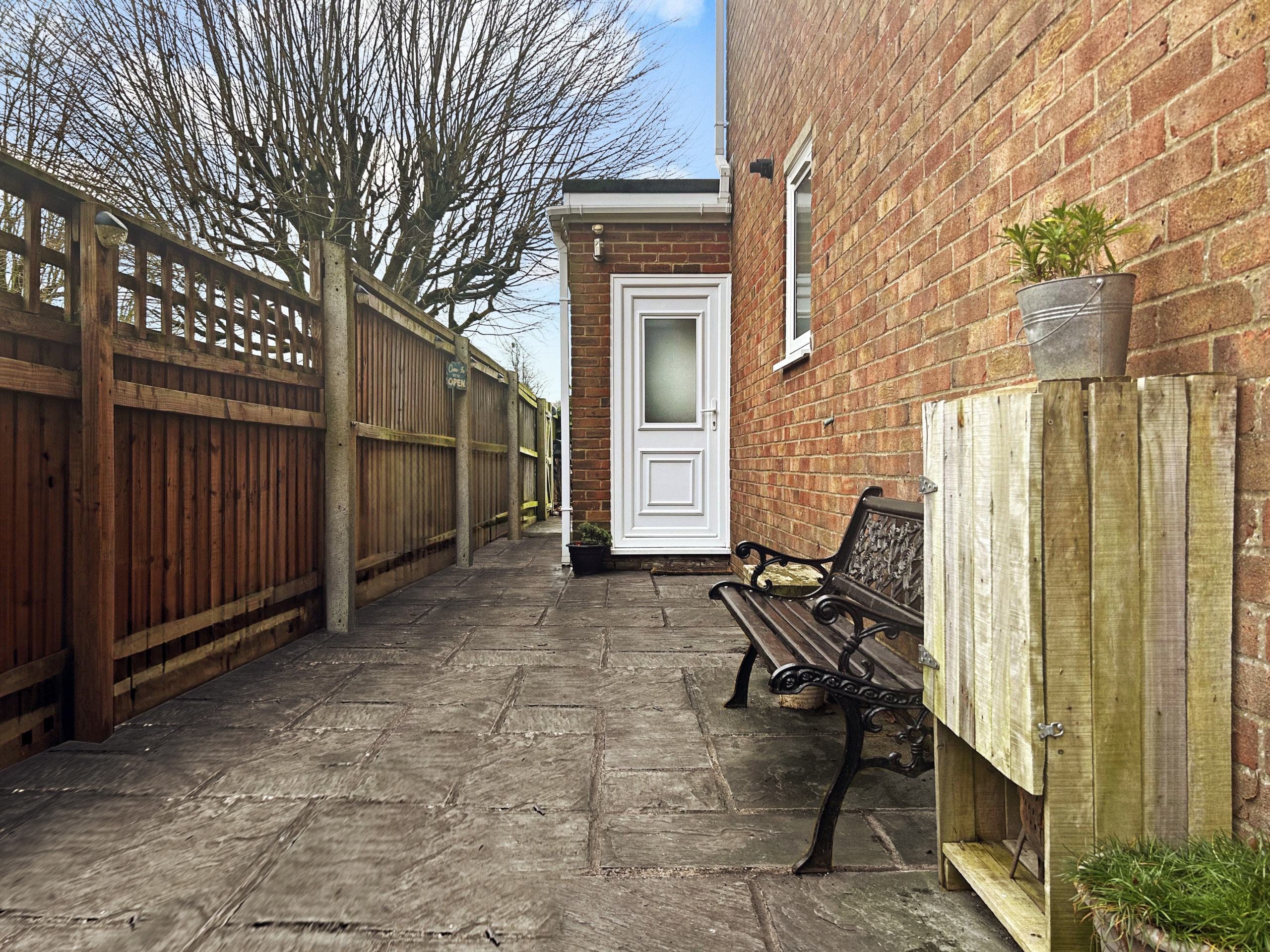 Upon arrival, you’ll be welcomed by private driveway parking for 3-4 vehicles. Gated side access leads to a low-maintenance rear garden, designed for both relaxation and entertaining. The garden boasts a patio area, accessible via French doors from the kitchen/dining room—perfect for alfresco dining—a lush lawn, a decked area, a handy shed, and vibrant shrubs that add a touch of greenery.