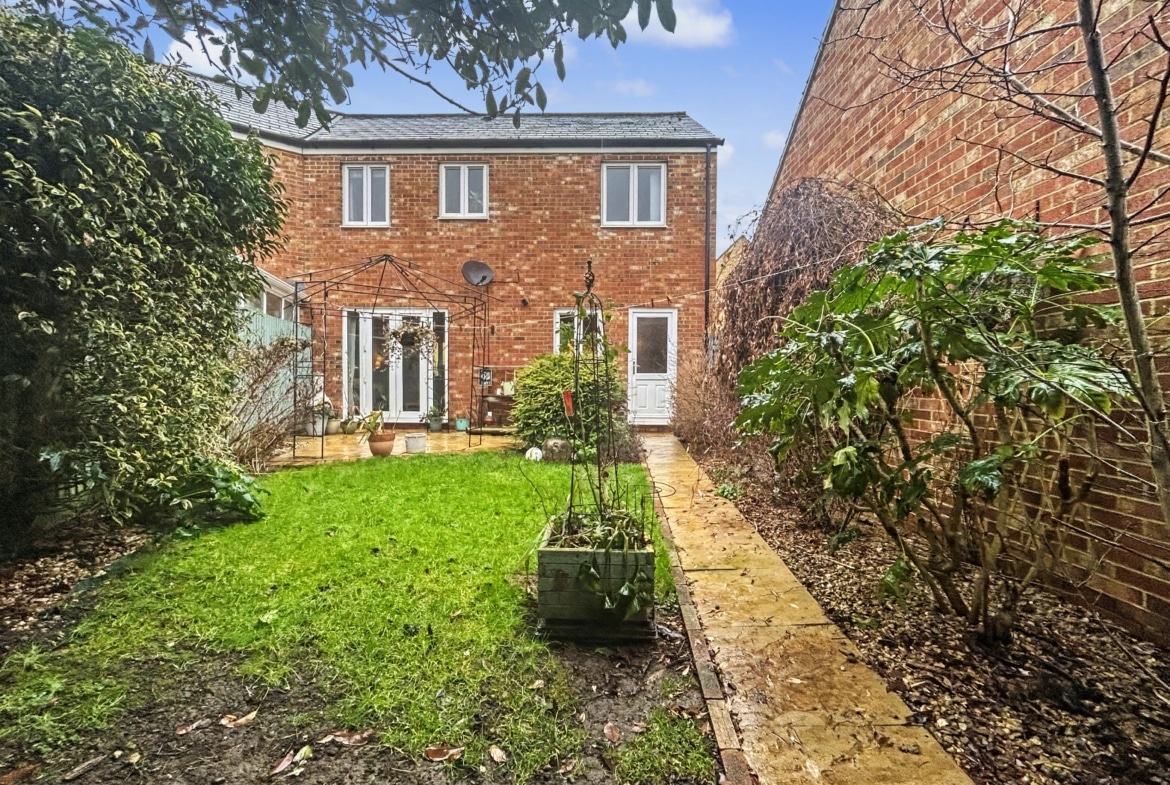 Internally, the ground floor opens into a welcoming entrance hall with a convenient cloakroom/WC. The house features a fitted kitchen/breakfast room, providing a practical and sociable space for everyday living, and a generous sitting/dining room enjoying excellent natural light and benefiting from double doors opening directly onto the southerly facing garden, creating a seamless indoor-outdoor flow ideal for entertaining.