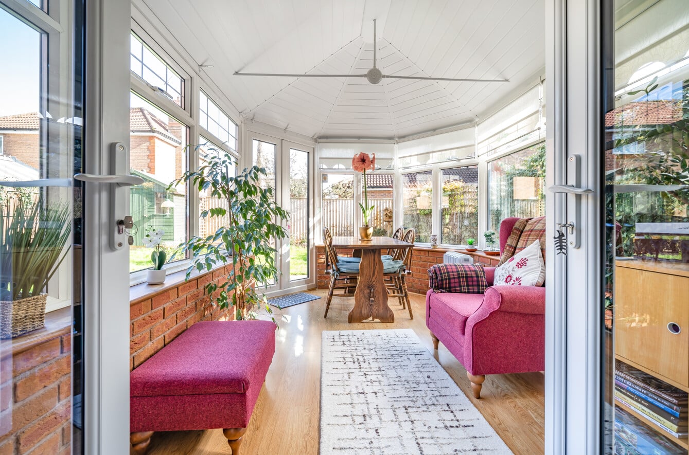 A converted garage now provides an additional reception room, currently utilised as a study.