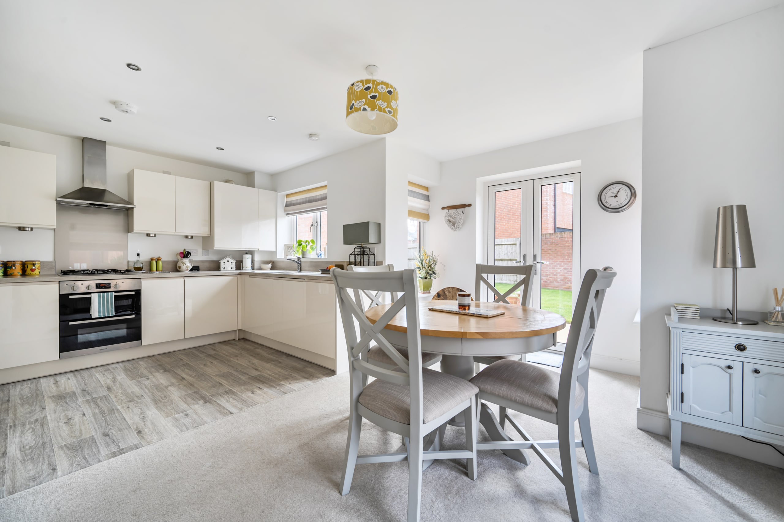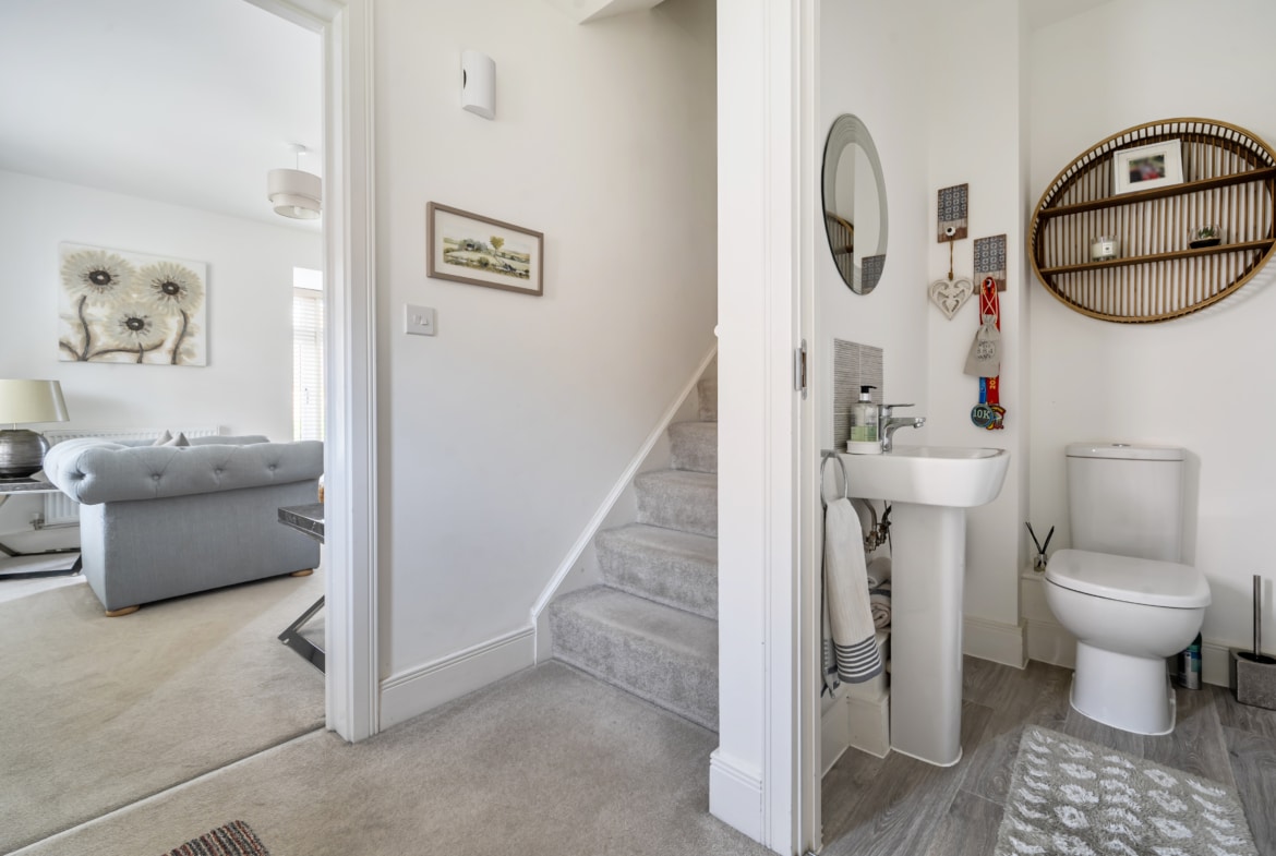 The double fronted design gives the house a lovely balanced feel from the moment you arrive. Inside, you’ve got a spacious lounge to one side and a kitchen/diner to the other, both with large windows that flood the rooms with natural light. Importantly, neither space feels compromised. The kitchen is well set up with built-in appliances and plenty of room for a dining table, with French doors opening straight out to the garden. There’s also a downstairs cloakroom which is always a big plus.