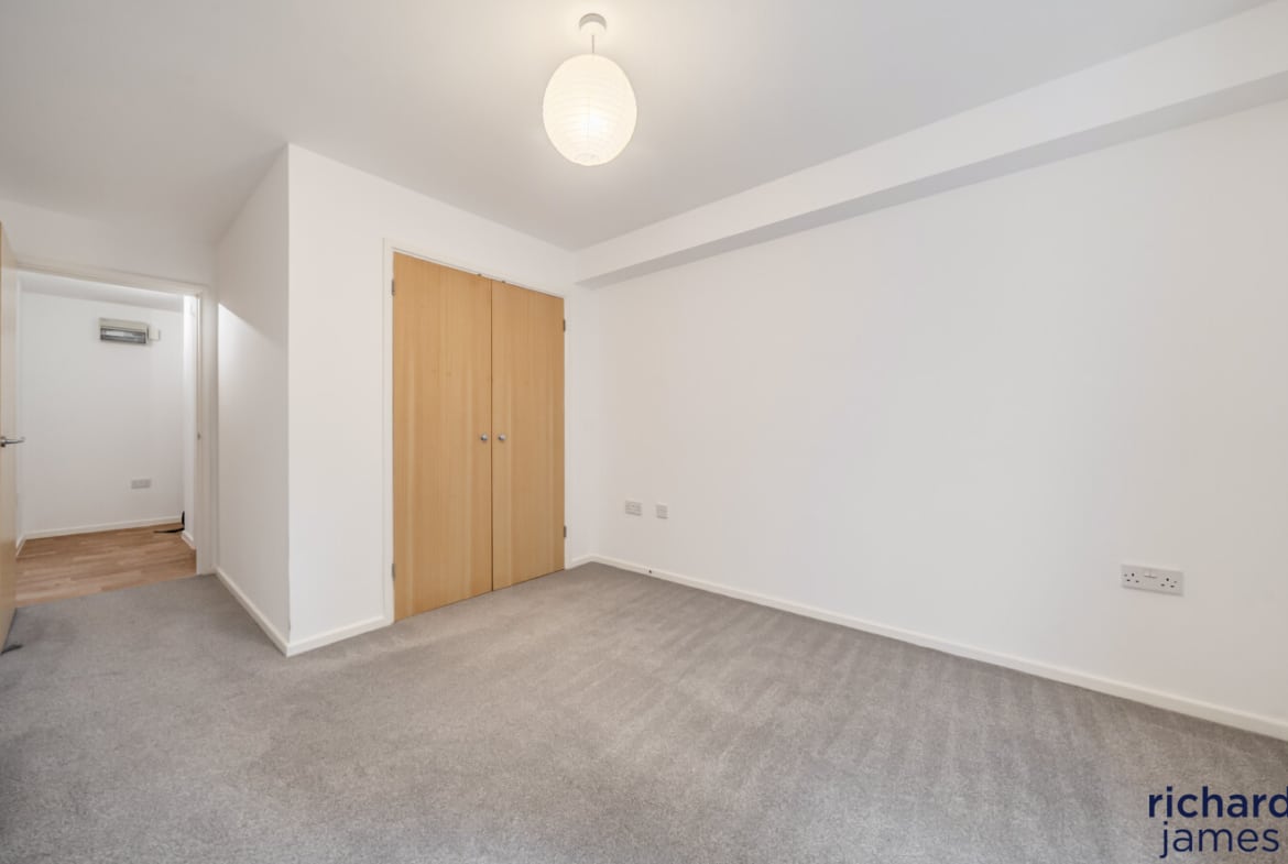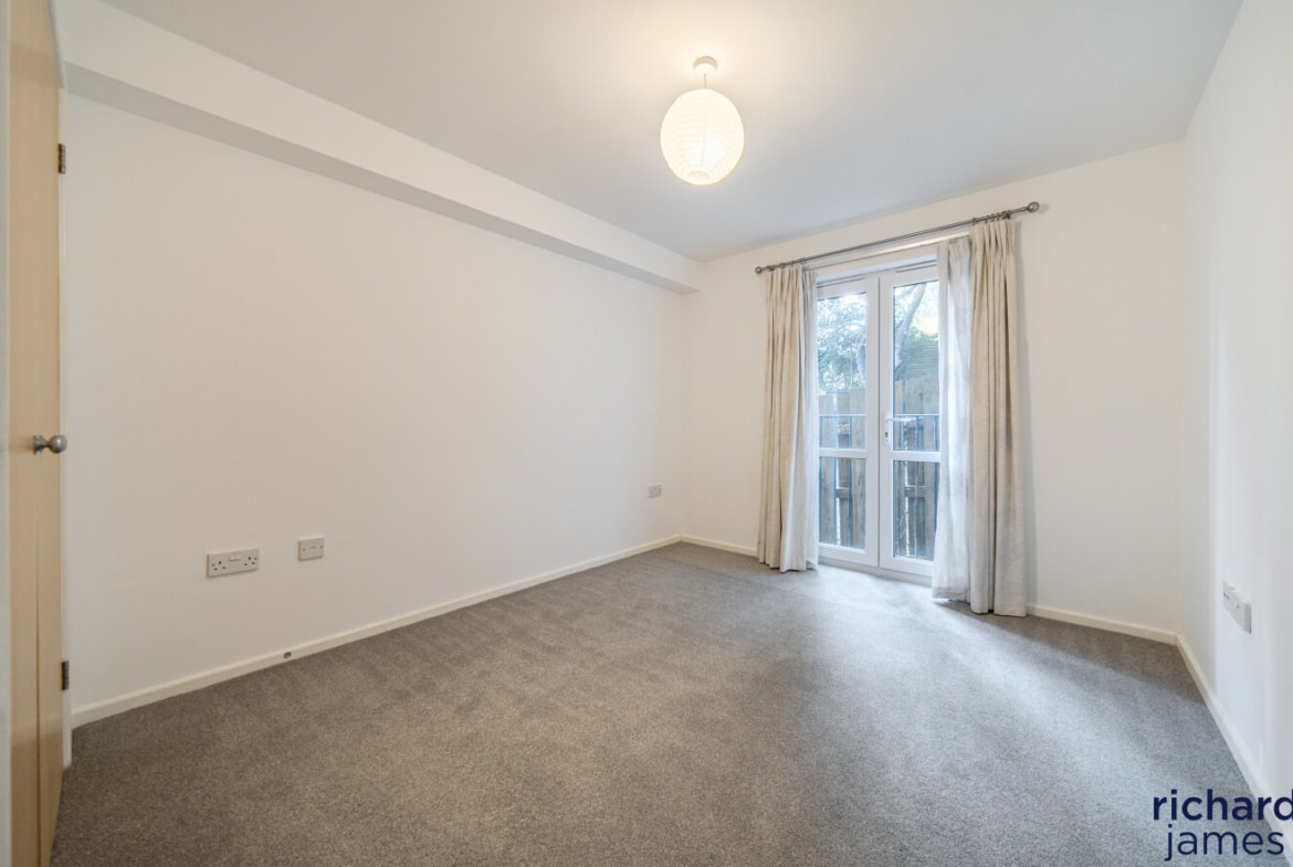 The apartment features two well-proportioned bedrooms. The main bedroom is particularly spacious, offering flexibility for wardrobes, dressers, or a comfortable reading nook. The second bedroom is versatile and could serve as a guest room, home office, or nursery. There is also well-appointed bathroom with bath and shower.