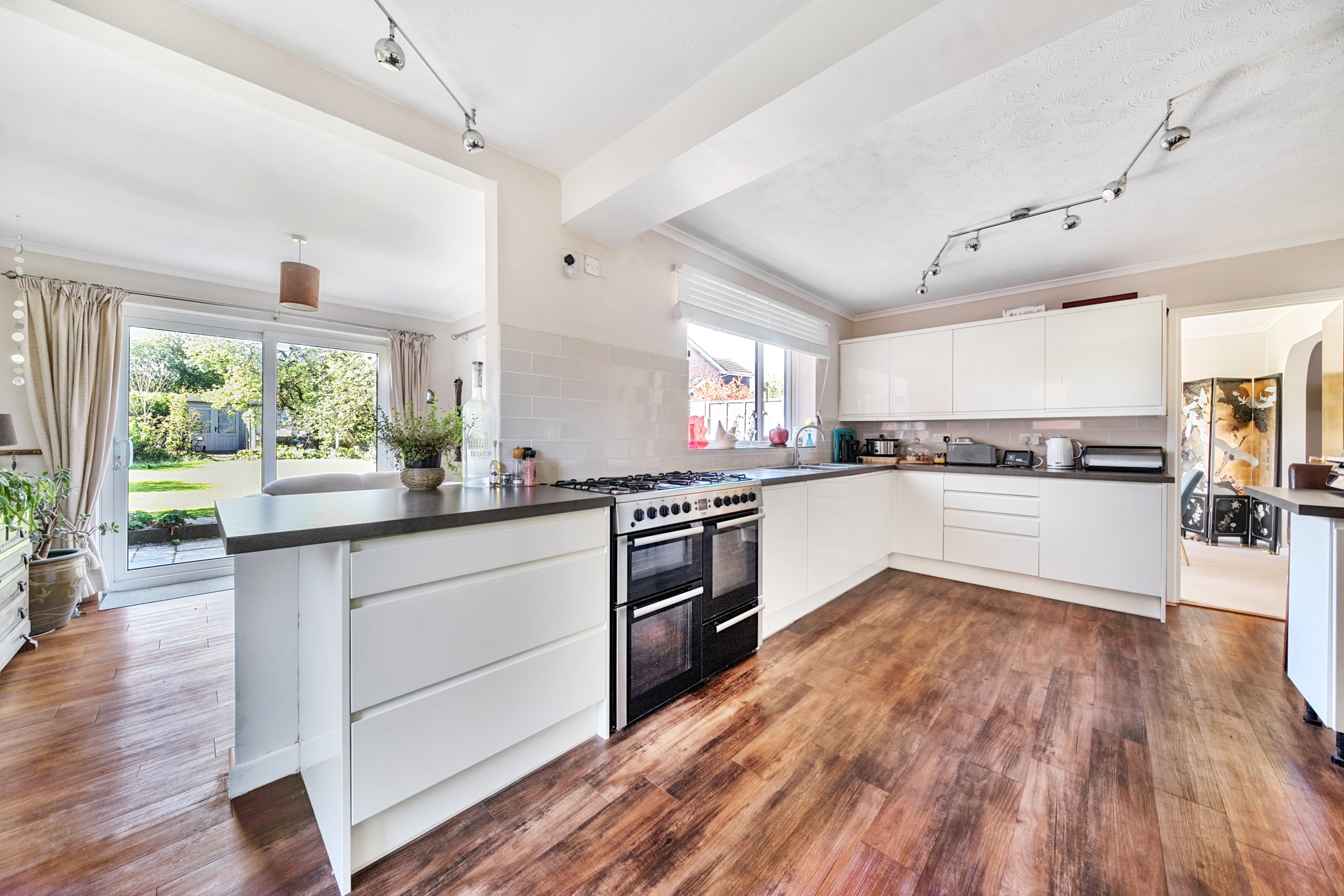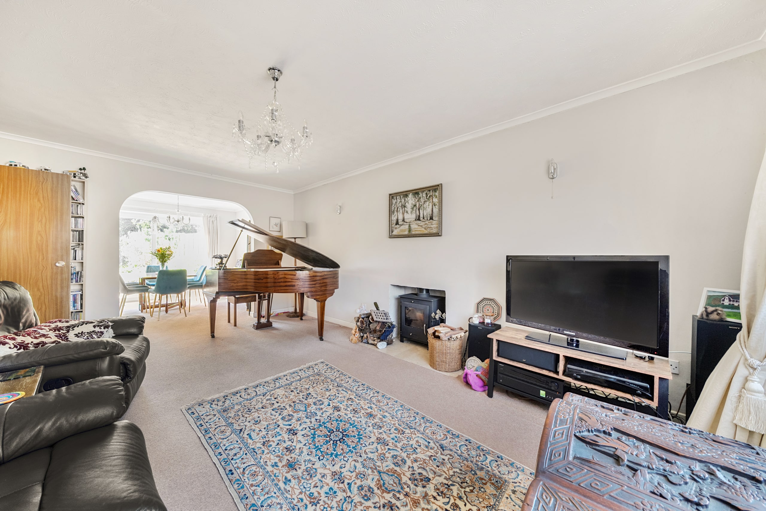 The lounge is home to a feature multi fuel burner, ample spcae for sofas and further furnishings providing access to the dining space with patio doors leading to the rear garden. The kitchen comprises; 1 1/2 bowl stainless steel sink unit with cupboards under, further range of matching base and eye level units, gas range cooker, tiled splashbacks, fridge freezer, cupboard housing boiler. The sun room is located at the rear of the property and is a fantasic addition providing a real social space from the kitchen.