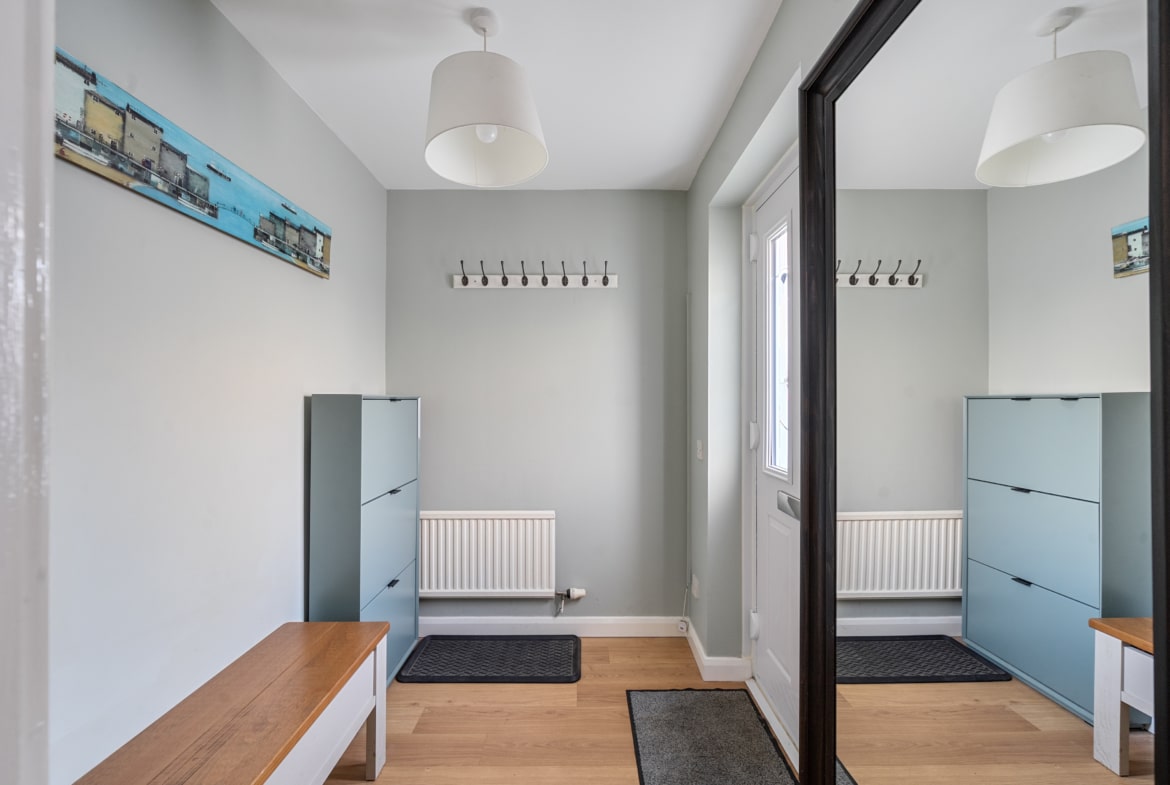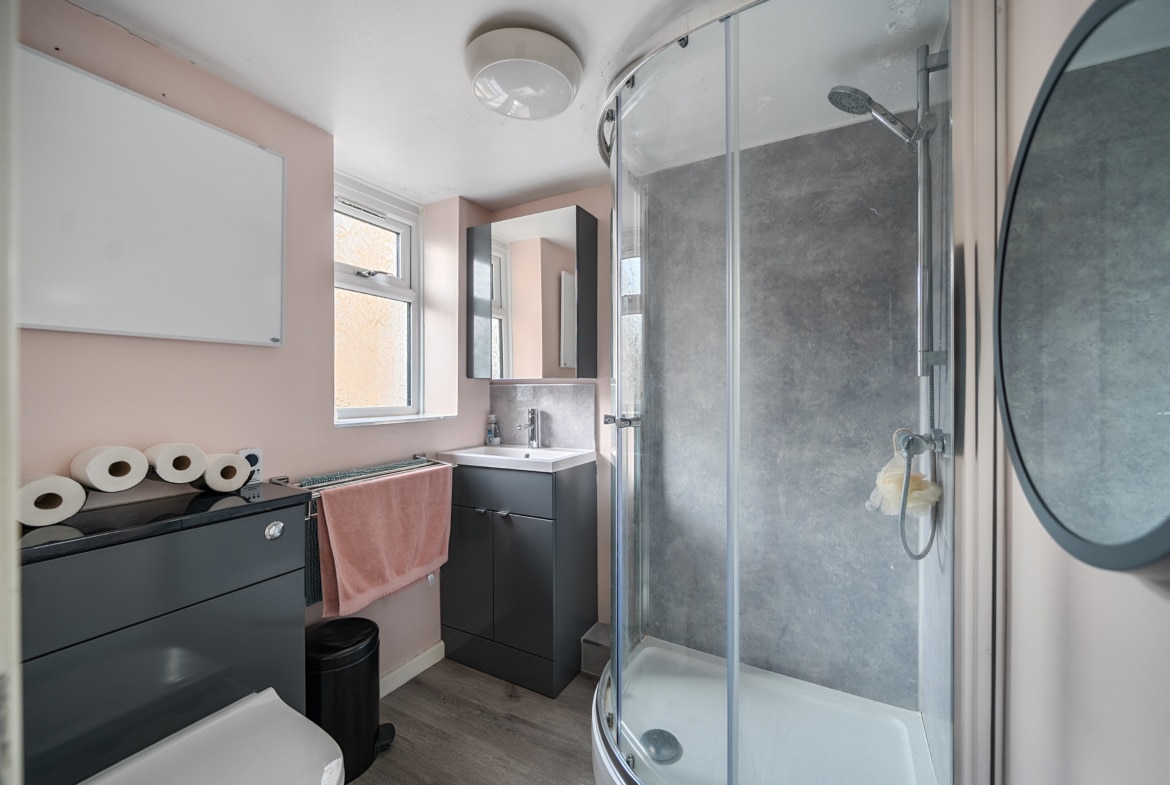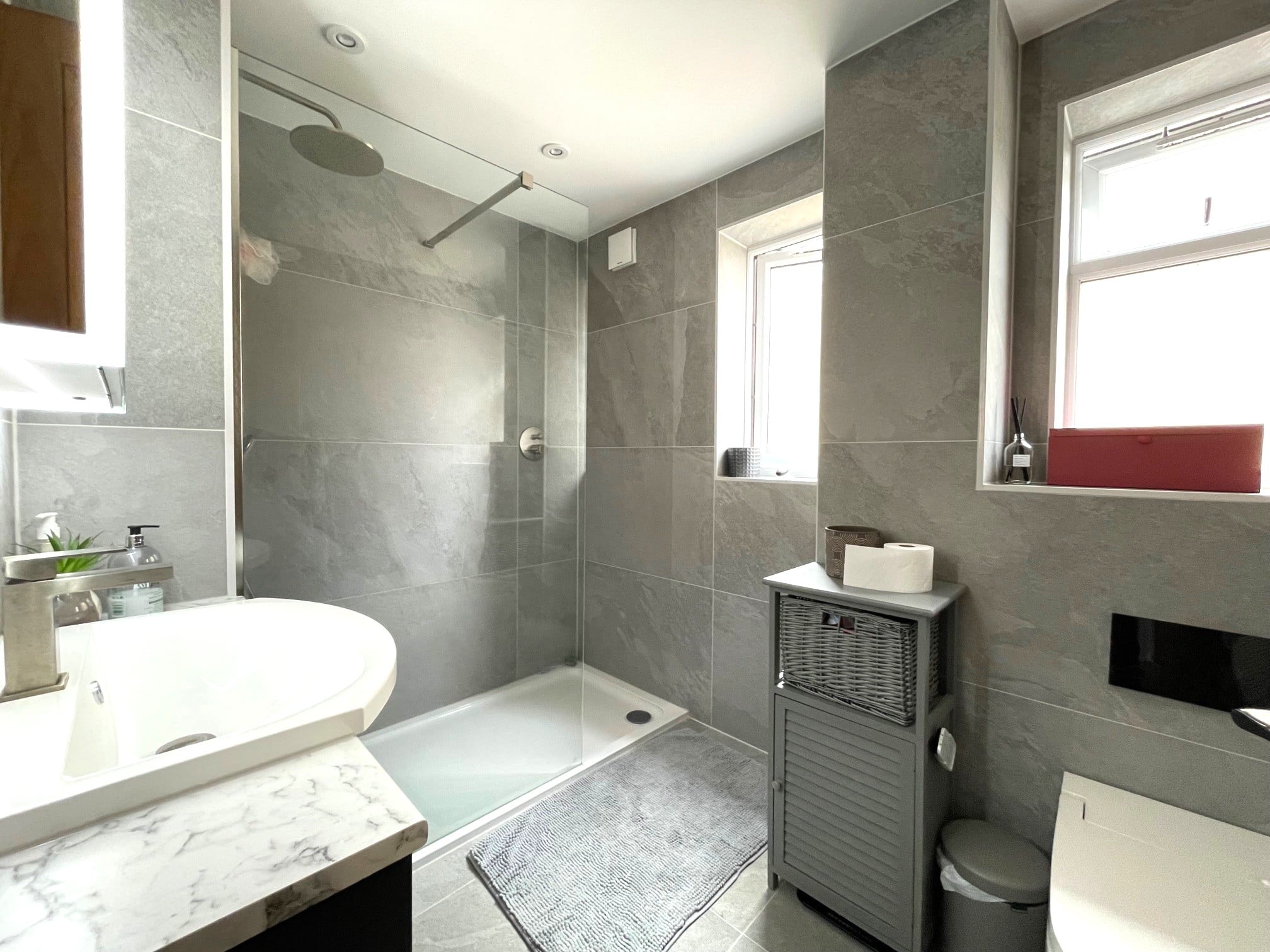 Upstairs, there are four well-proportioned bedrooms two with built-in wardrobes and a luxury fully tiled shower room featuring a large walk-in shower, remote comfort WC, and vanity wash basin.