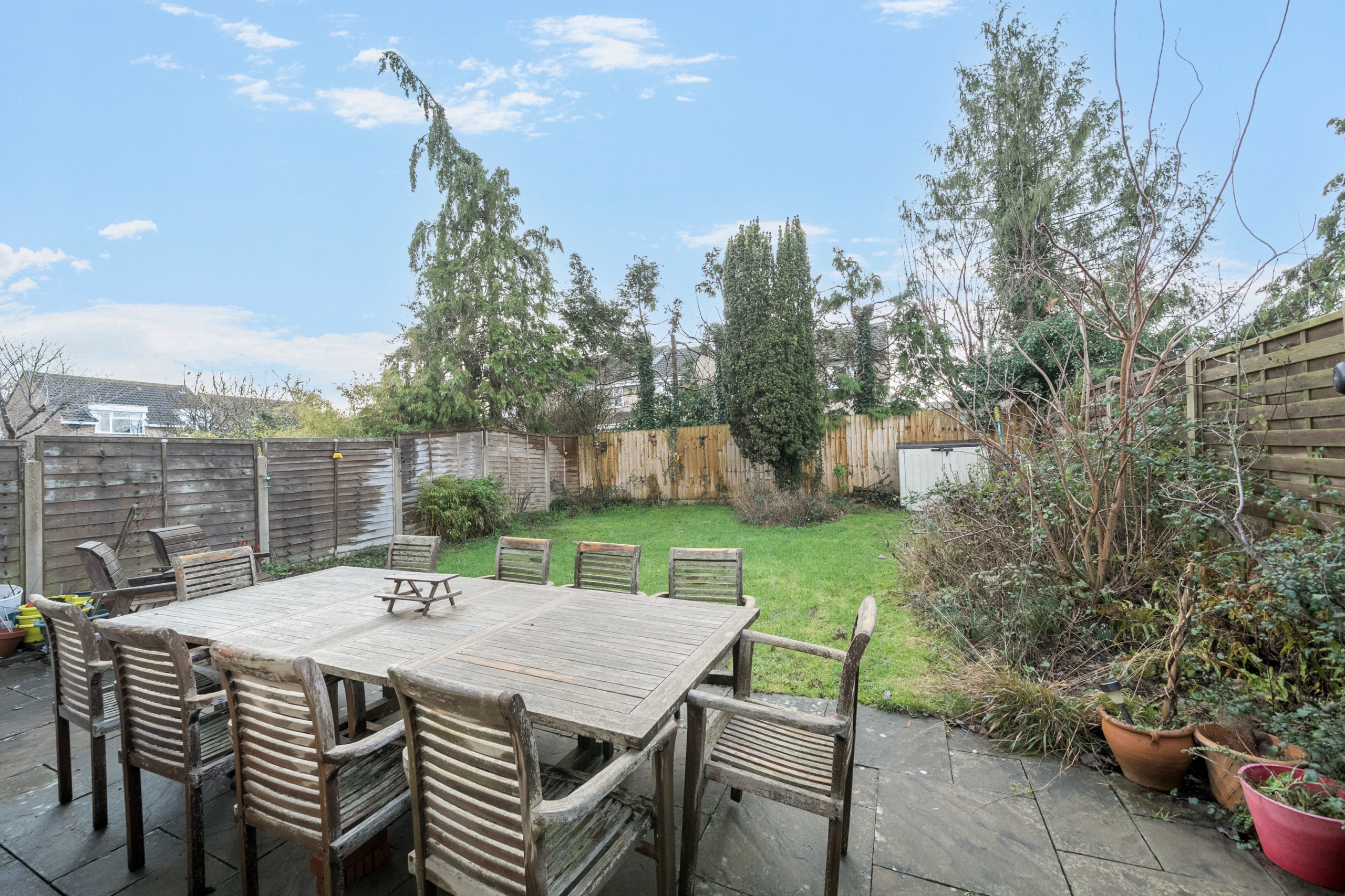 Outside, the private south-facing rear garden is mainly laid to lawn with flower and shrub borders and a patio area. To the front, a blocked pavior driveway provides parking for multiple vehicles and access to the attached garage (with power and light).