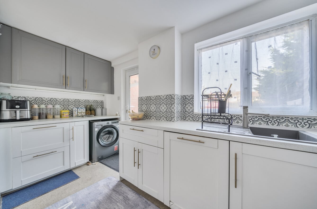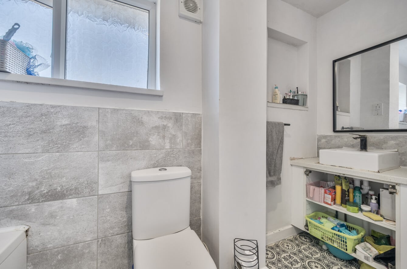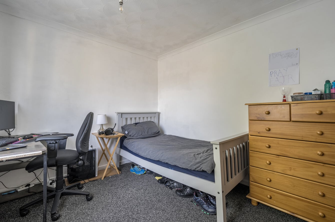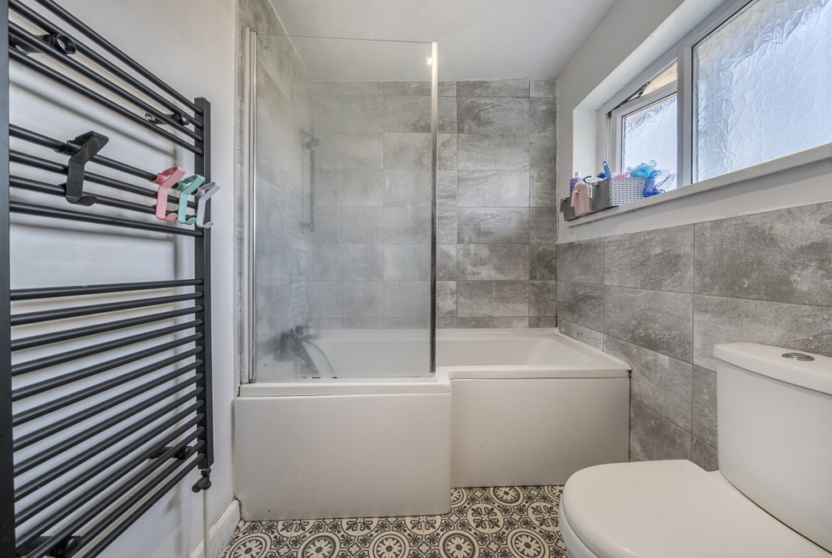 Upstairs, the property boasts two spacious double bedrooms, both able to accommodate full bedroom furniture with room to spare. The third bedroom is a well-proportioned single – perfect for a child’s room, study, or dressing room. All bedrooms are finished to a modern standard, and good natural light throughout. A contemporary family bathroom completes the upper floor.