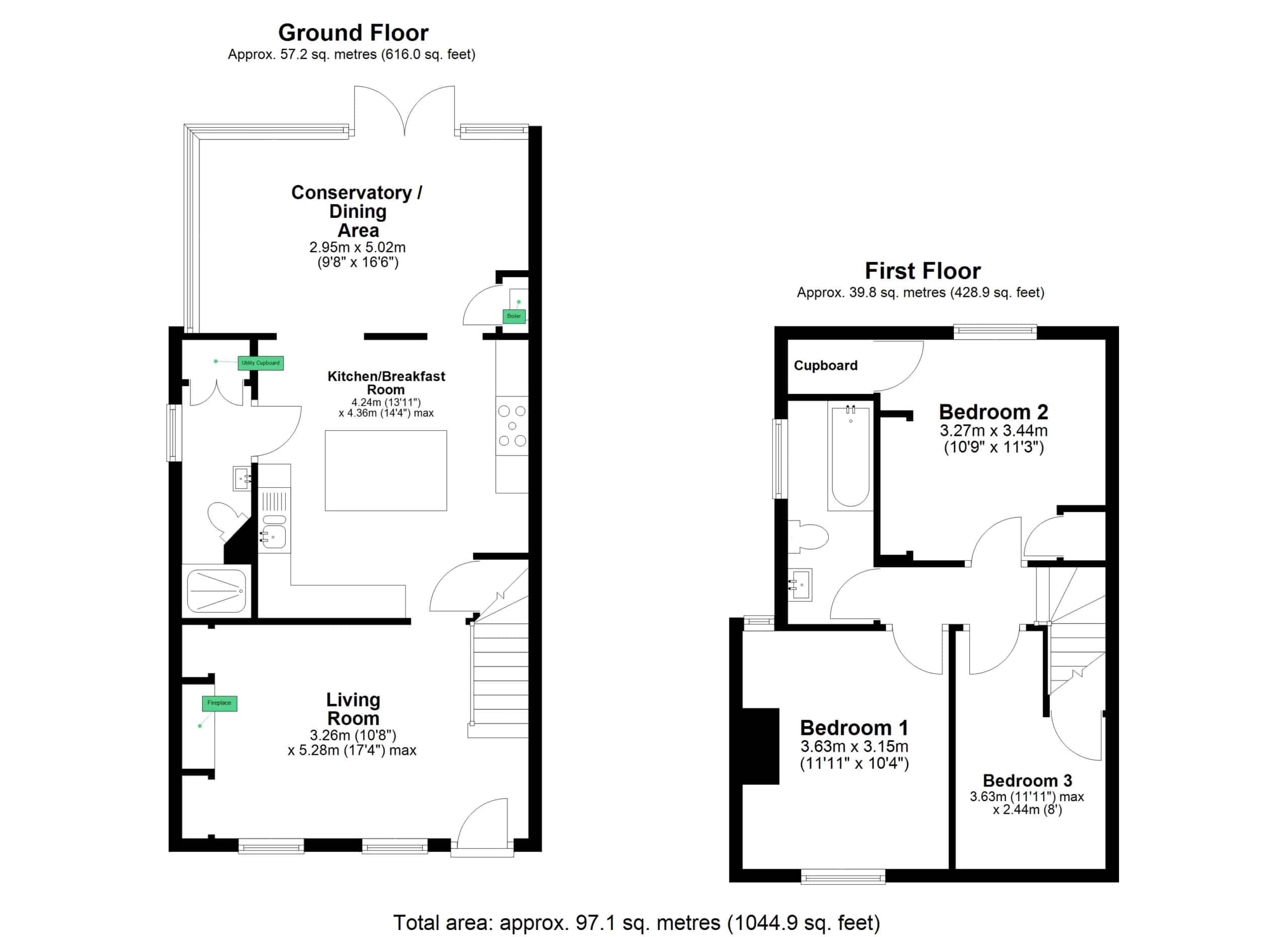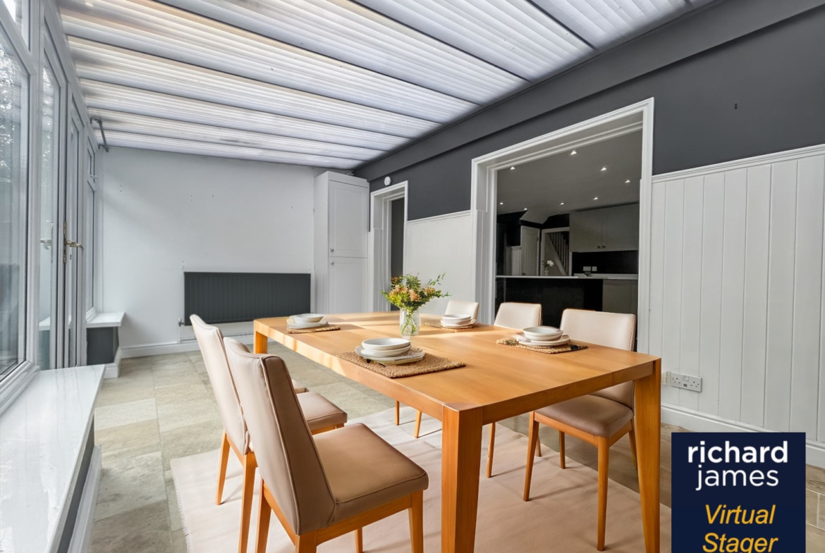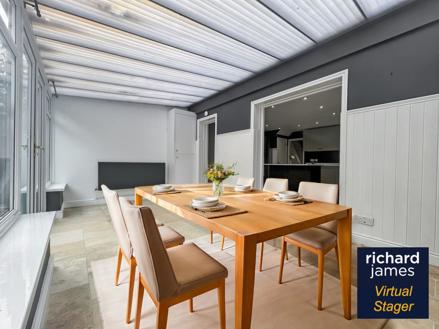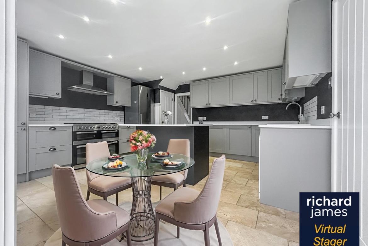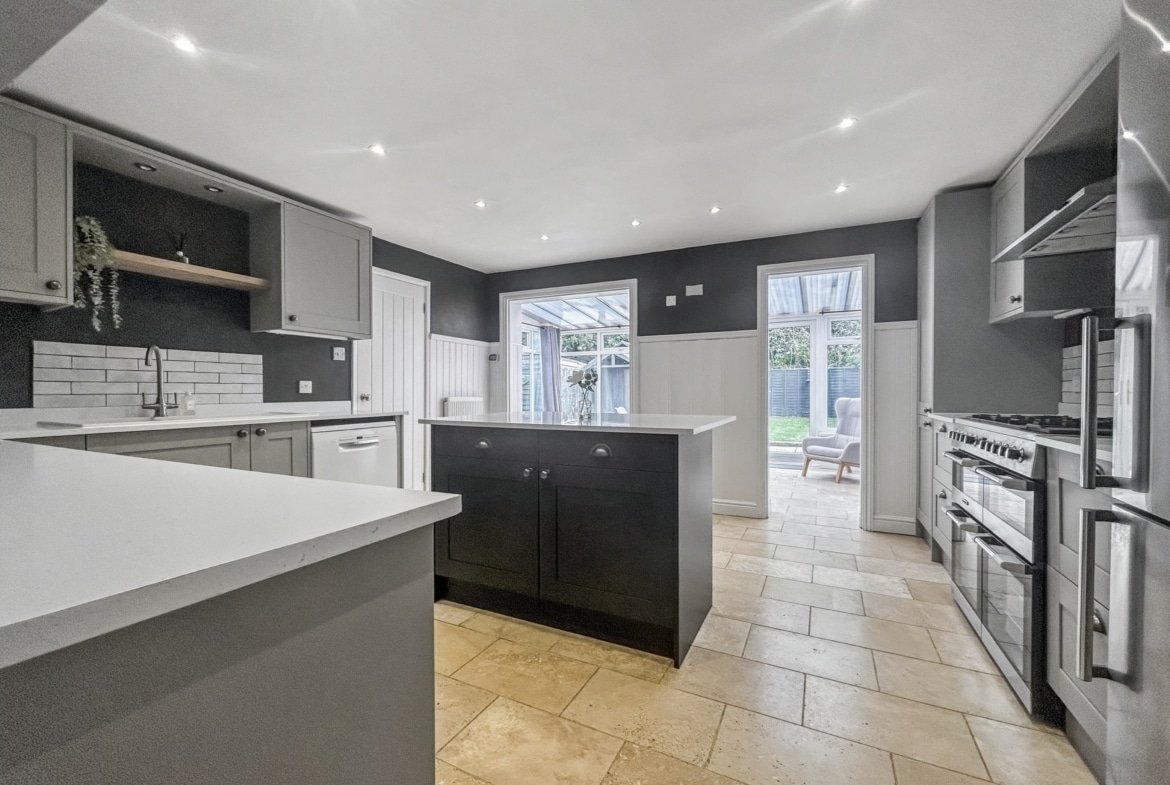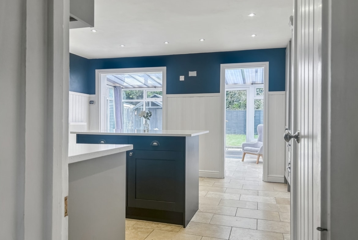 At its heart lies a generous open-plan kitchen/breakfast room, recently upgraded with elegant two-tone shaker-style cabinetry and a sociable central island — ideal for cooking, entertaining, or gathering with family. The adjoining conservatory floods the space with natural light and opens directly onto the low-maintenance rear garden, creating a seamless indoor–outdoor lifestyle. For evenings in, the cosy living room offers a welcoming snug feel, complete with fireplace for those winter nights.