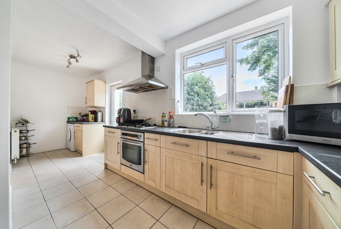 To the front of the property is a private driveway, offering off-street parking. Inside, the lounge is a comfortable size, featuring a characterful bay window that fills the room with natural light. The kitchen has been thoughtfully extended behind the garage, creating a much larger and more functional space, finished in neutral tones to suit any style. Adjacent to the kitchen, the dining room offers ample space for entertaining and opens directly into the rear garden.