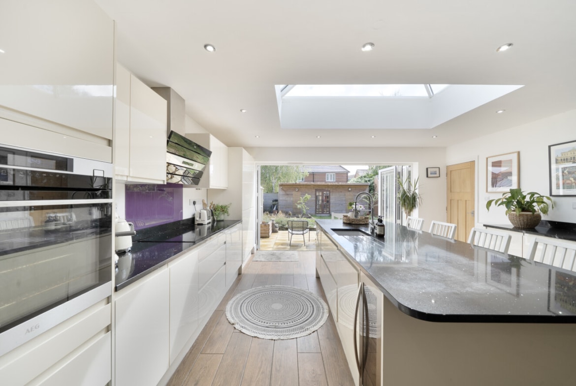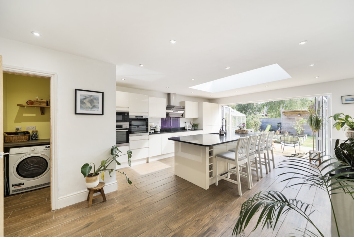 This beautifully presented and fully modernised 4-bedroom semi-detached home is ideally located close to top-rated schools, shops, and transport links. It boasts a large driveway, bright and airy hallway, a spacious reception room, and an impressive open-plan lounge/dining area. The sleek modern kitchen features a large island, with a utility room and access to the garage. A downstairs WC with shower adds extra convenience.