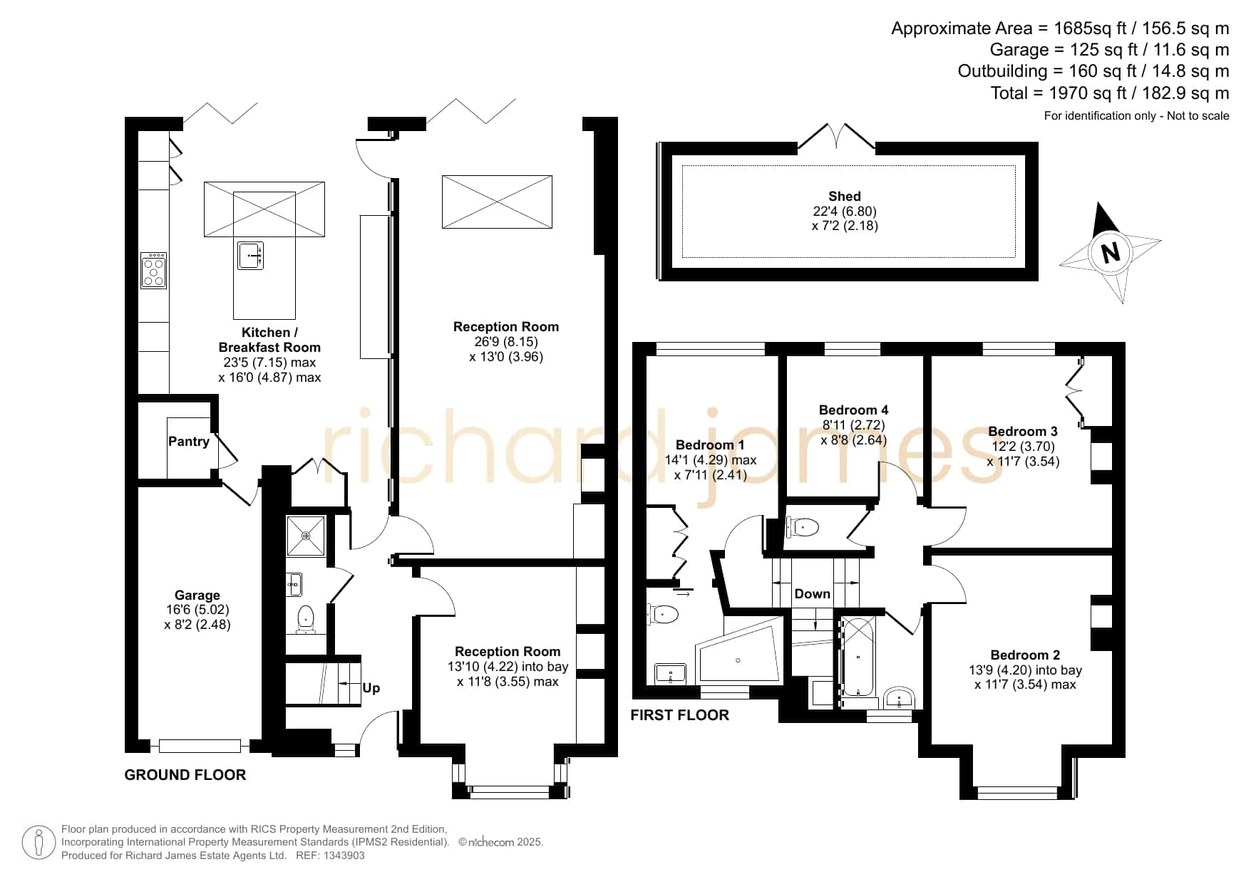 Upstairs includes a bright master bedroom, a double bedroom with en suite, two further generous bedrooms, a separate WC, and a stylish family bathroom. The large, sunny garden with a handy shed completes this perfect family home.