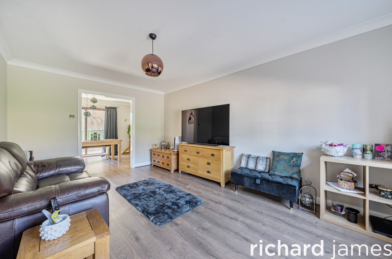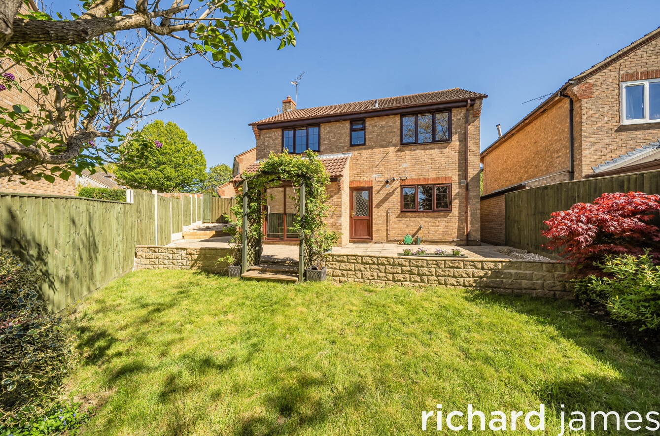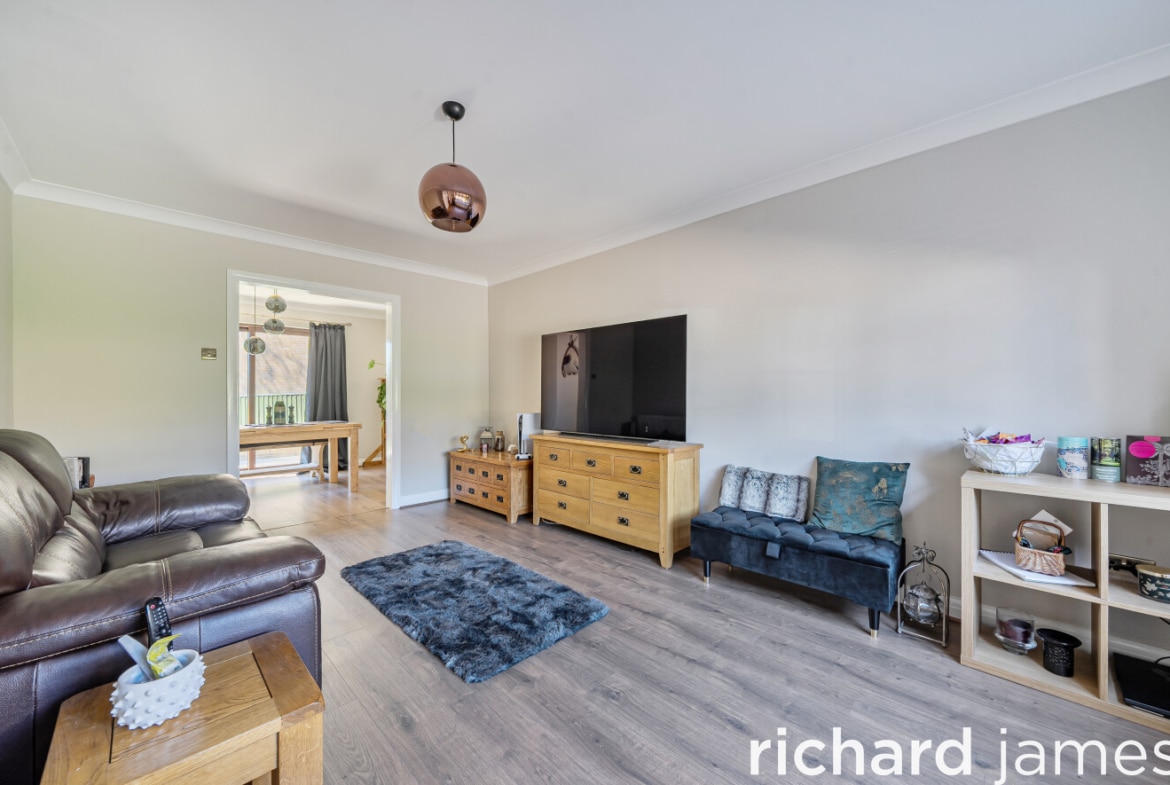 Externally, the home continues to impress. To the rear is an enclosed and private garden, featuring a patio seating and barbecue area, ideal for entertaining, leading onto a well-maintained lawn. To the front, a generous driveway provides parking for multiple vehicles and gives access to the garage via an up-and-over door.
