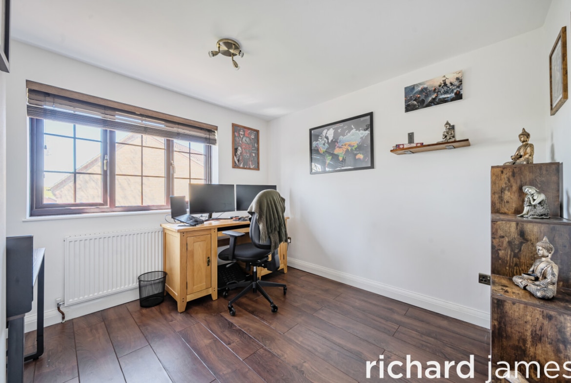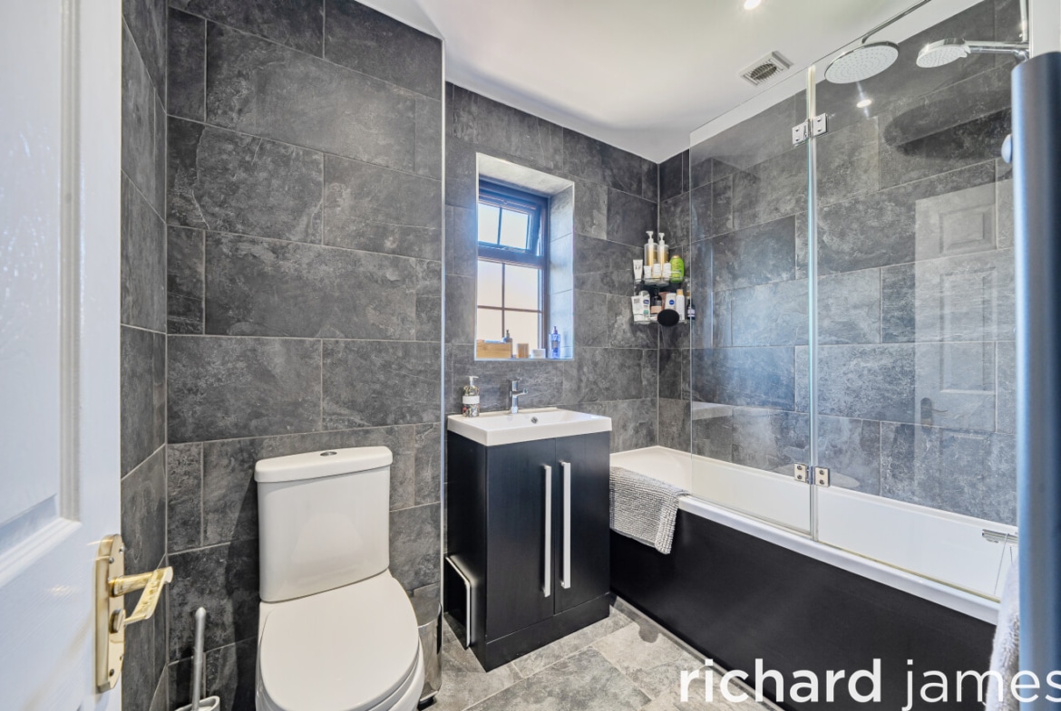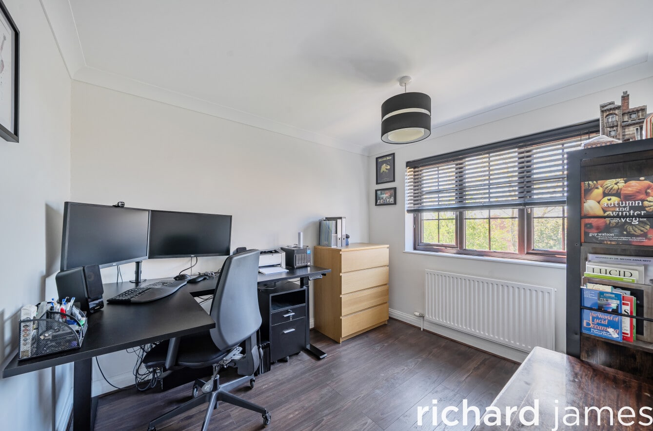 To the first floor, the landing leads to four generously sized bedrooms. The principal bedroom is a spacious double, complete with fitted wardrobes and a private en-suite shower room with wash hand basin. Bedroom two is another large double, complemented by two further well-proportioned bedrooms. A modern, recently re-fitted family bathroom completes the first-floor accommodation.
