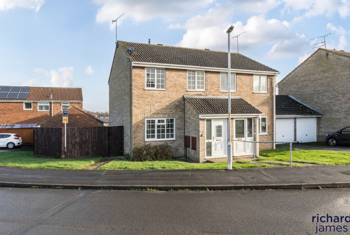 This chain-free semi-detached house, perfect for new owners to personalise, offers two bedrooms, a well appointed living room, dining space opening to the rear garden, fitted kitchen, and a white bathroom suite. Nestled on a corner plot, it boasts a driveway, garage, and gardens with scope for side extension (subject to consents). Located in a peaceful cul-de-sac in West Swindon, it provides excellent road links and access to local amenities including supermarkets, restaurants and schools, along with parks, a cinema, and a bowling alley for leisure.