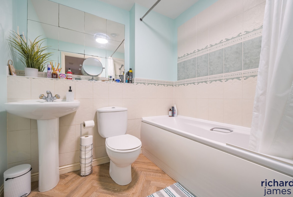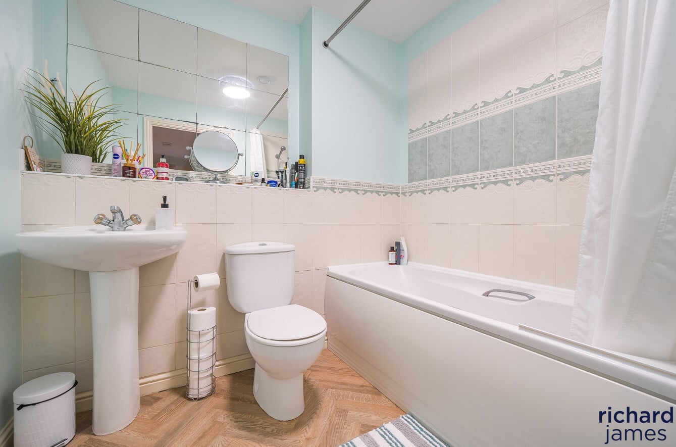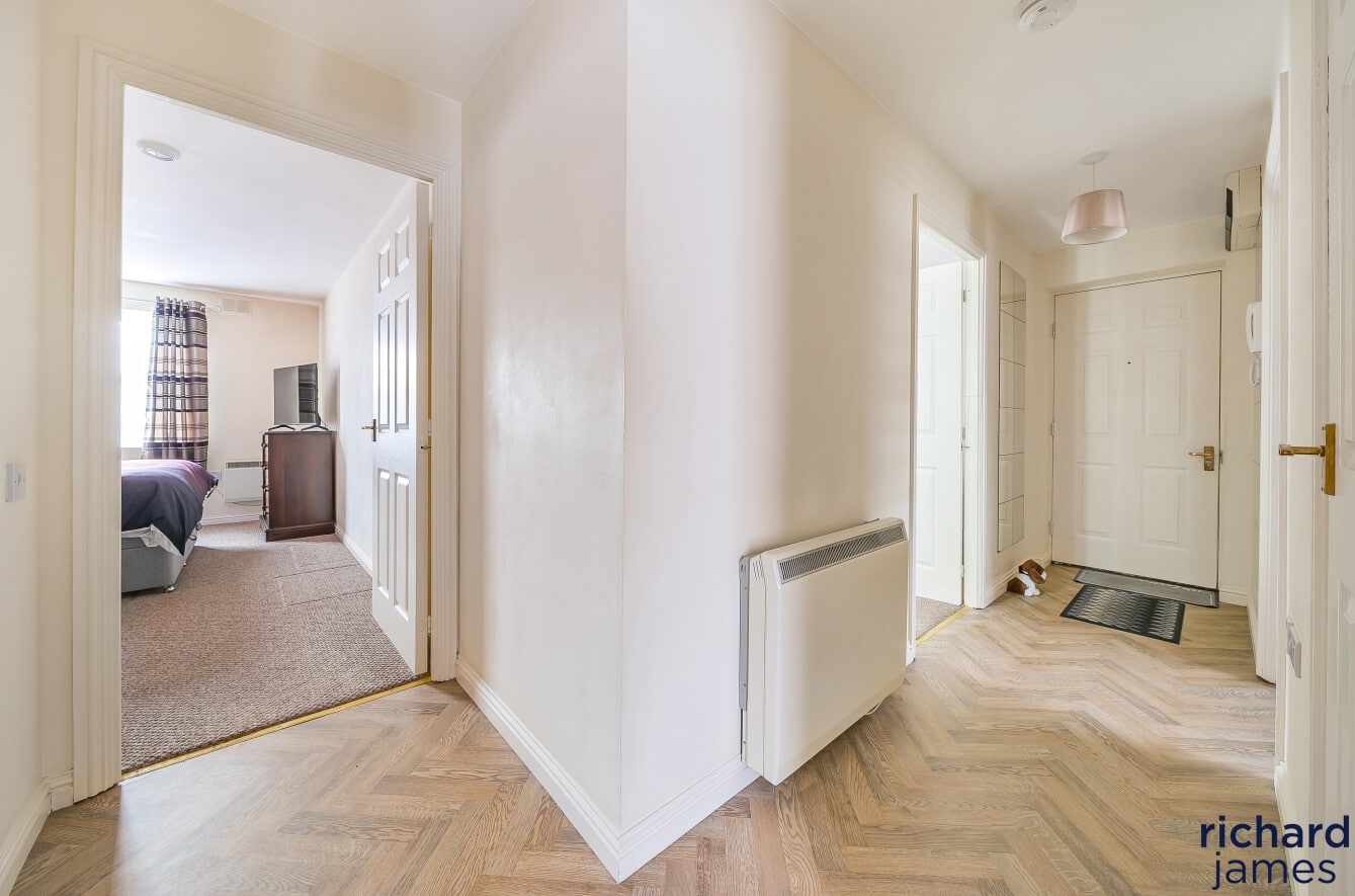 The property compromises of: Hall, modern fitted Kitchen, 17′ Living Room, Two double Bedrooms and Bathroom. Features include PVCu double glazing, Electric Heating, Two allocated Parking Spaces and is conveniently Sold Free of Chain!
