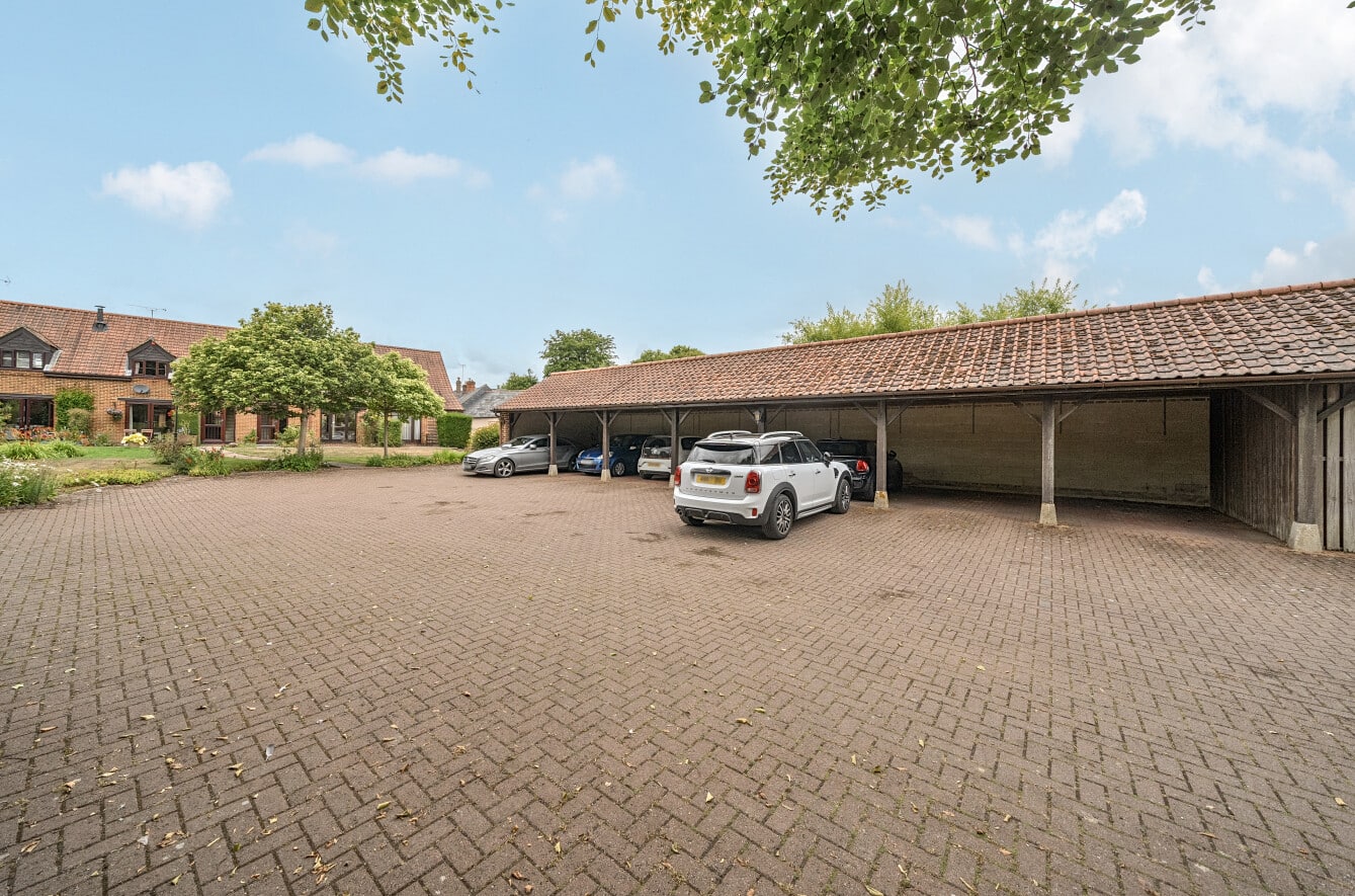 Externally, residents benefit from a communal garden, maintained by a management company, while each home has use of its own patio area, ideal for seating, barbecues, or enjoying summer evenings. The property also includes covered parking for one vehicle and an additional allocated parking space.