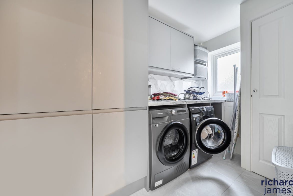 Upon entering through the spacious reception hall, a sense of warmth and elegance immediately greets you. To the right, a beautifully bright dual-aspect lounge provides an inviting space for relaxation, while to the rear, a contemporary open-plan kitchen and dining area forms the social heart of the home. The kitchen is fitted with a stylish central island and quality modern appliances, perfectly complemented by a utility room and a convenient downstairs cloakroom. From the kitchen leads a spacious conservatory with access to the rear garden A separate office provides the ideal spot for home working.