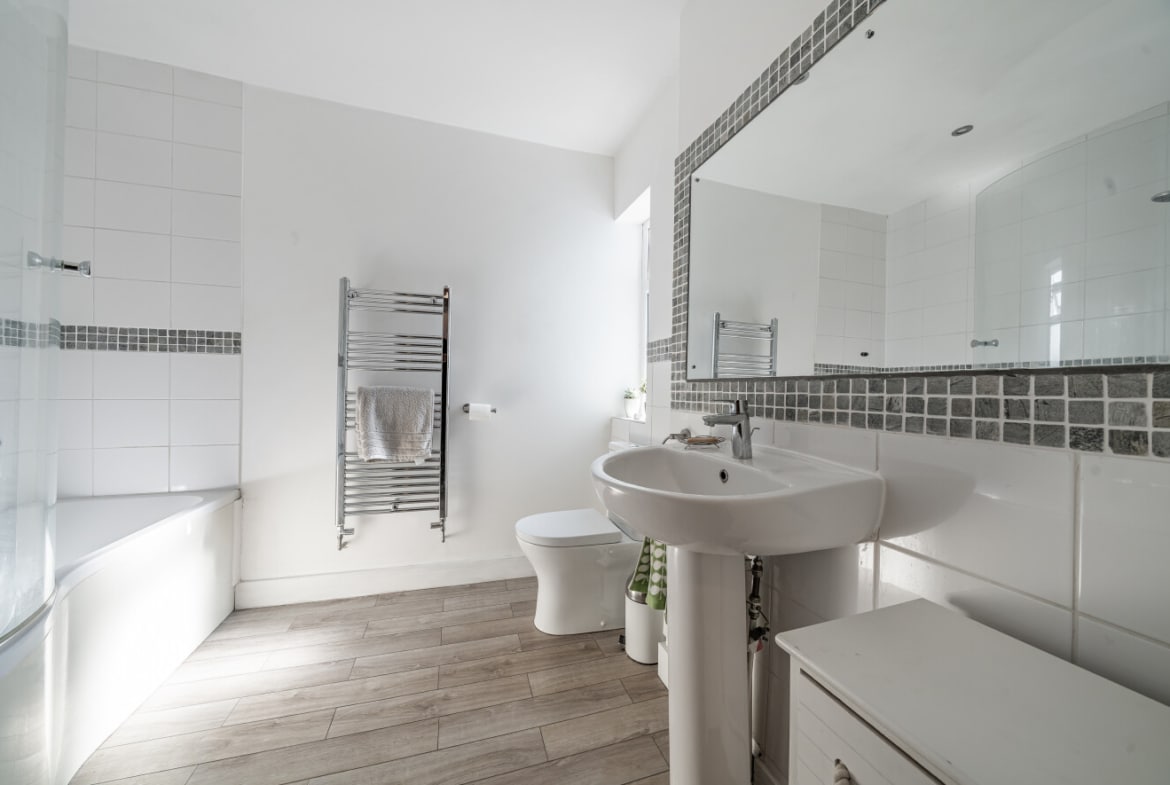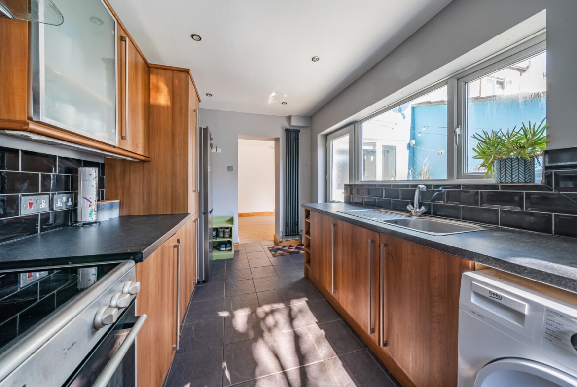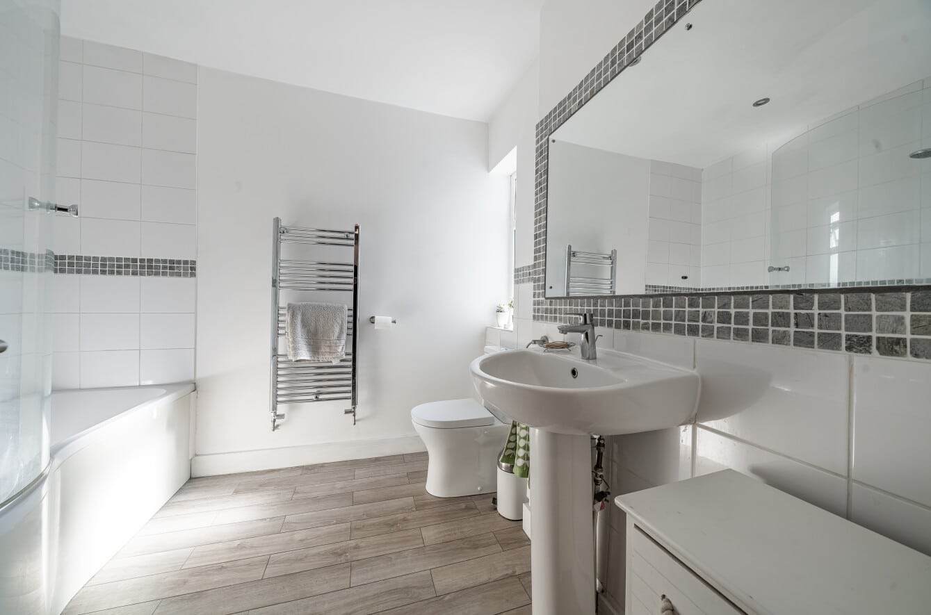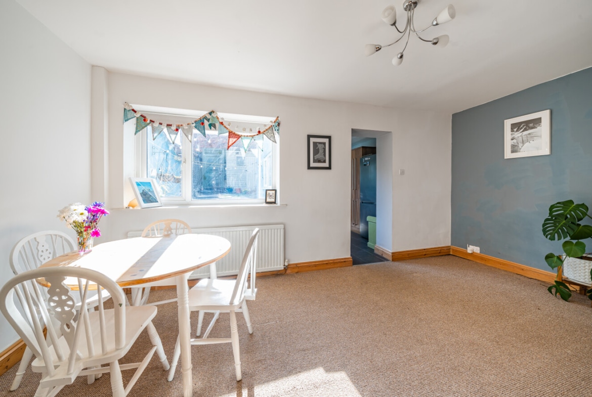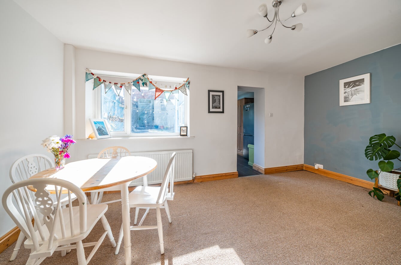 The deceptively spacious accommodation offers over 1000sqft of living space and retains much of its original character including exposed floorboards and red brick chimney breast, to the Living Room. The well presented accommodation comprises: Hallway, Living Room with bow window, 18′ Dining Room and modern fitted 16′ Kitchen. With the Three Bedrooms and Bathroom with modern white suite, to the first floor.