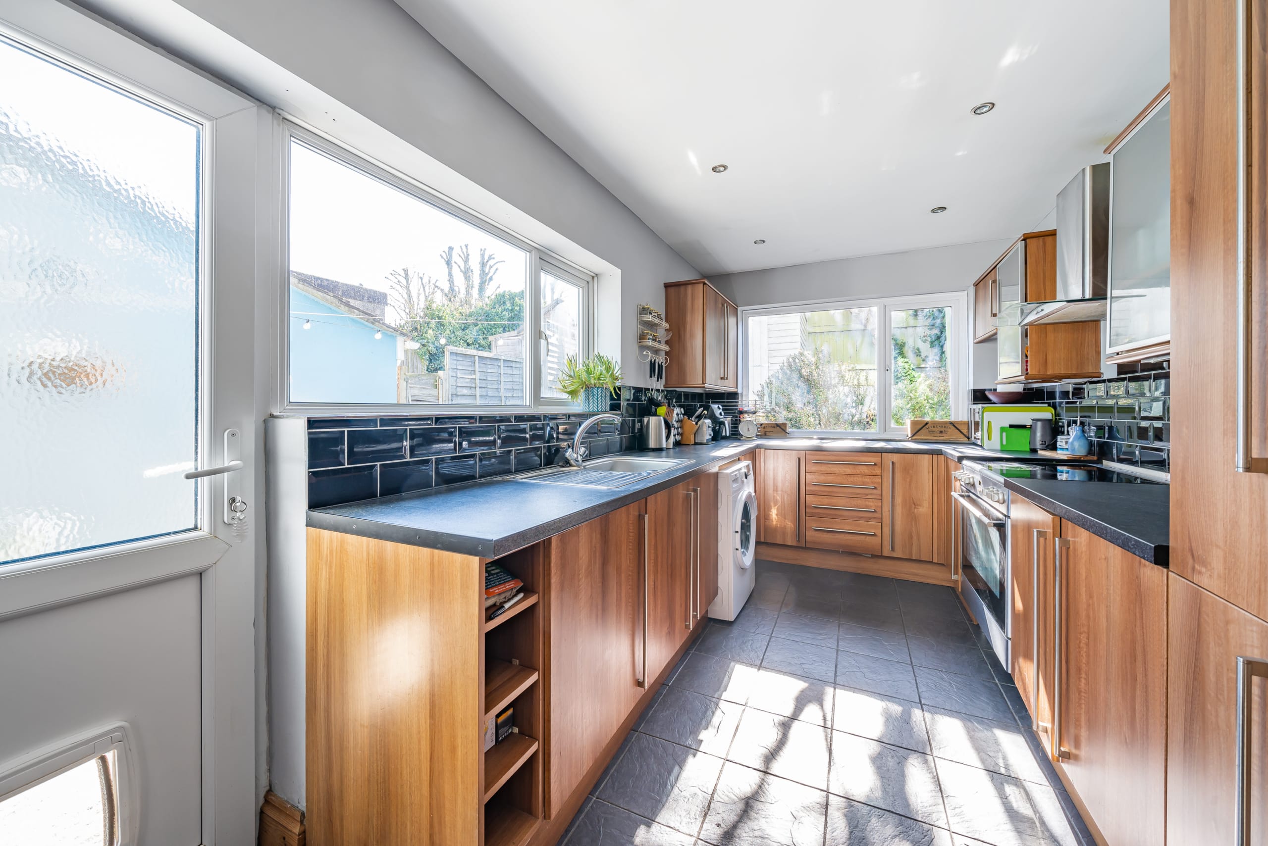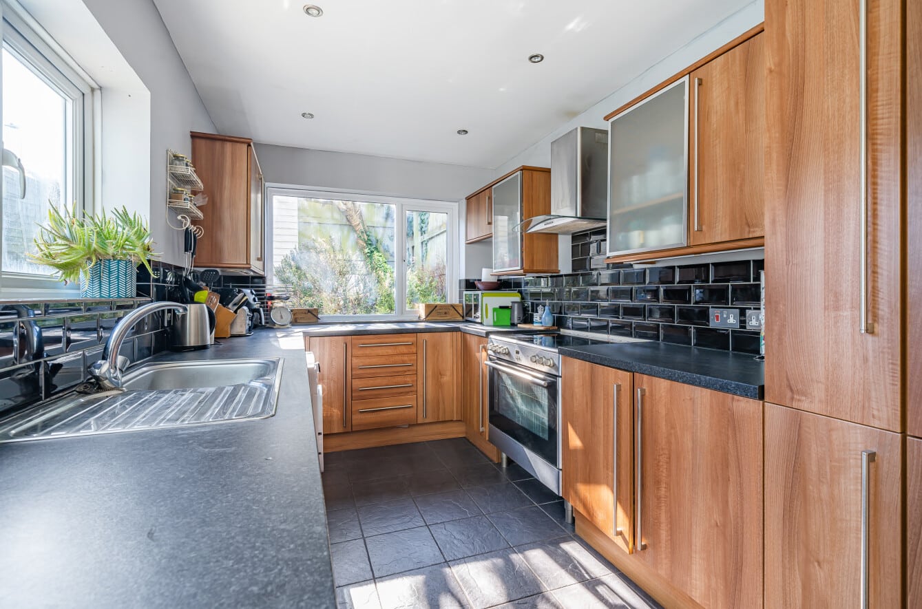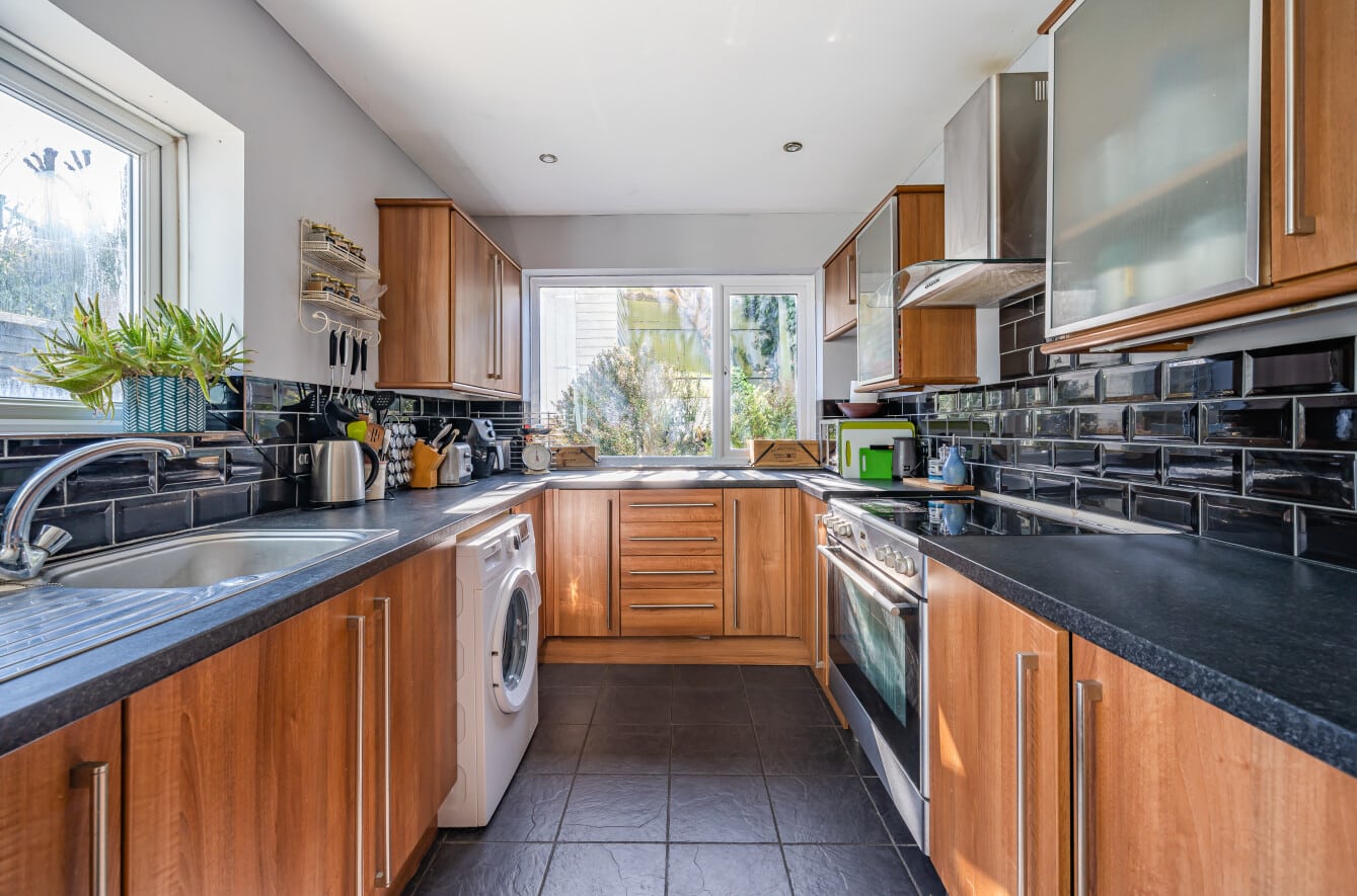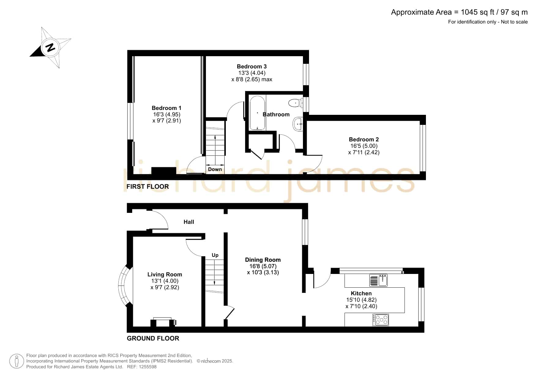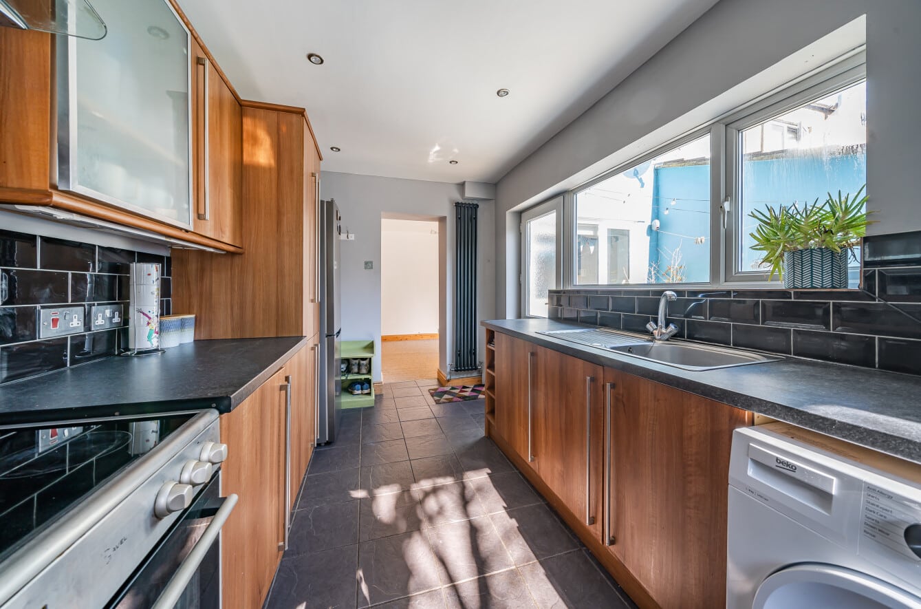 The deceptively spacious accommodation offers over 1000sqft of living space and retains much of its original character including exposed floorboards and red brick chimney breast, to the Living Room. The well presented accommodation comprises: Hallway, Living Room with bow window, 18′ Dining Room and modern fitted 16′ Kitchen. With the Three Bedrooms and Bathroom with modern white suite, to the first floor.