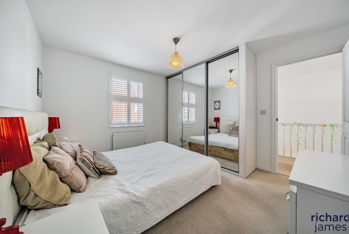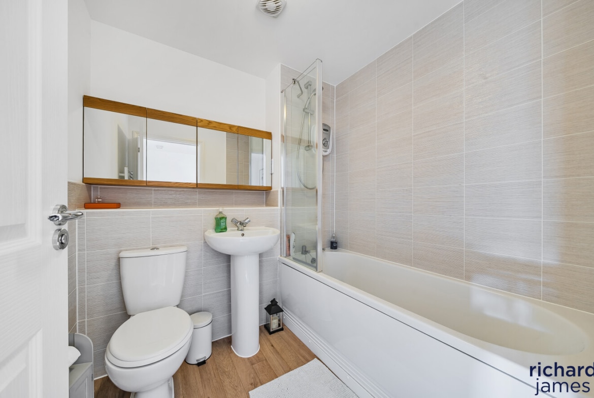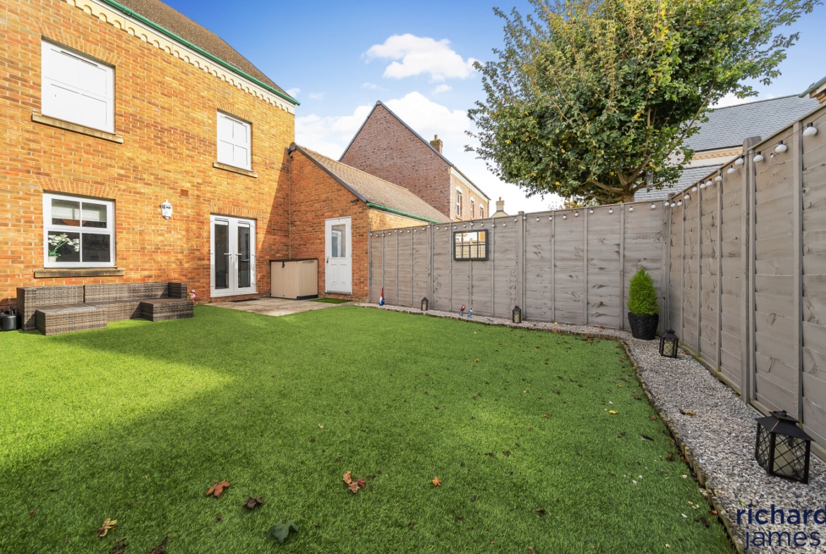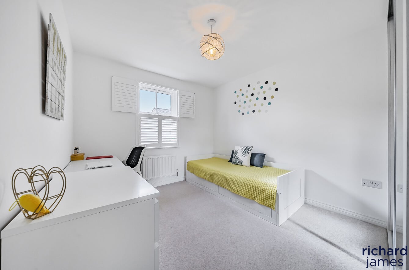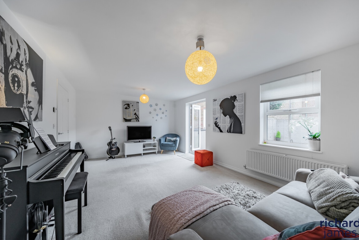 spacious Kitchen/Dining Room with integrated appliances, Cloakroom and Sitting Room with PVCu patio doors opening into the south facing Rear Garden and there’s also a small Study off the Sitting Room. The first floor, includes a large Landing, Four bedrooms, Ensuite shower room and fitted wardrobes to Bedroom One and a Family Bathroom.