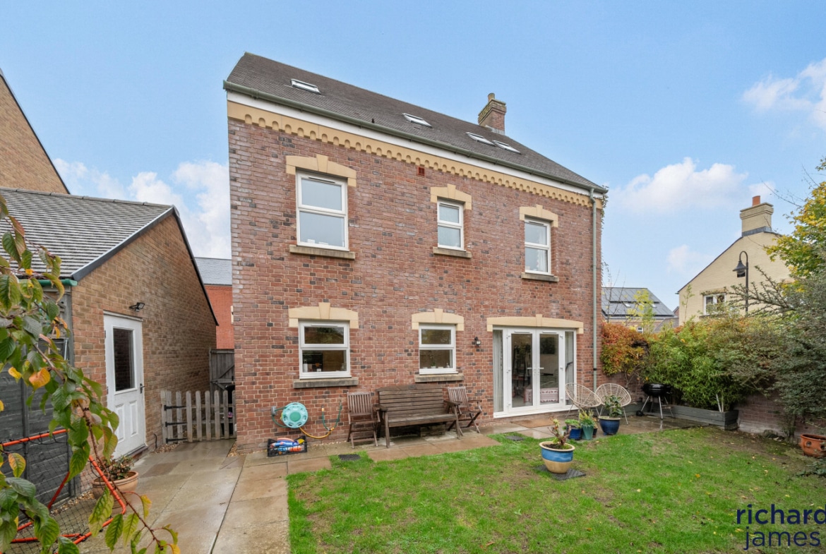 To the rear is an enclosed, private south facing rear garden with a patio seating and barbecue area with a generous lawn making it ideal for families and children plus access to the garage from the rear garden.