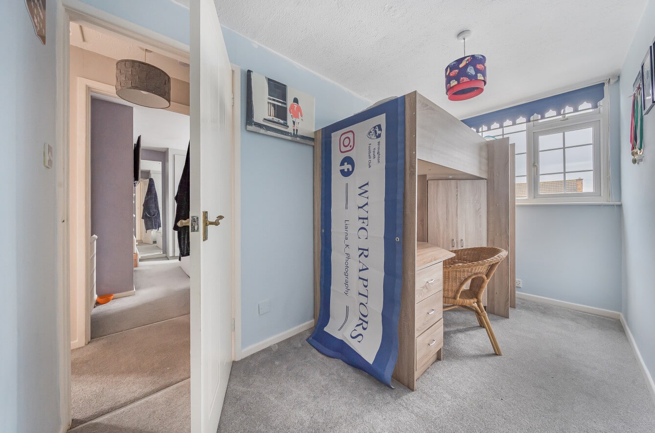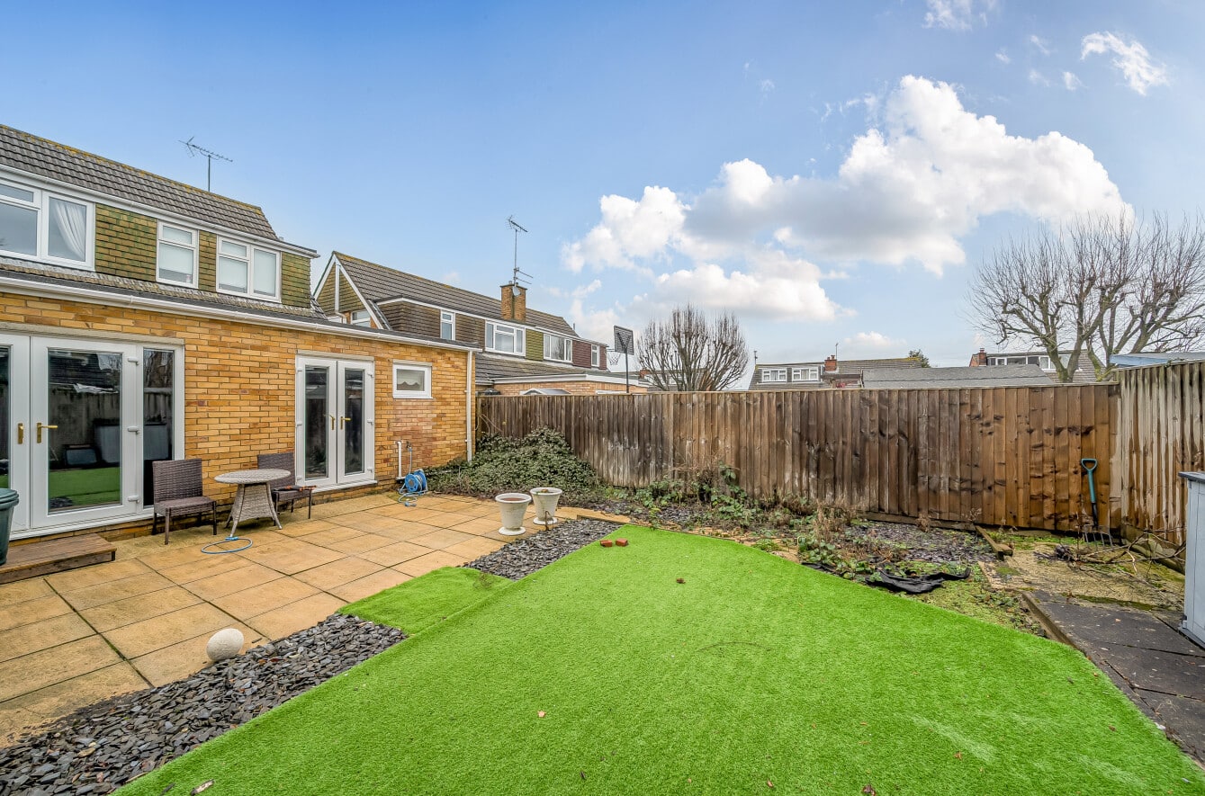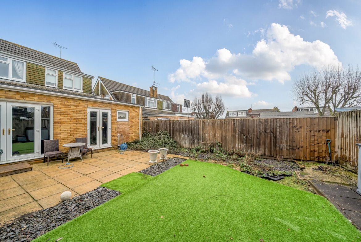 Externally, the rear garden is fully dog-proofed and laid with low-maintenance artificial grass, making it ideal for families and pet owners. A garden shed provides useful additional storage.