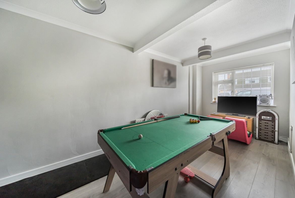 Upon entering, a well-presented entrance hallway immediately conveys a sense of space and flow, with the staircase rising to the first floor on the left. To the right, the converted garage has been thoughtfully repurposed into a games room, offering a highly flexible space suitable for a home gym, playroom, or additional reception room to suit individual needs.