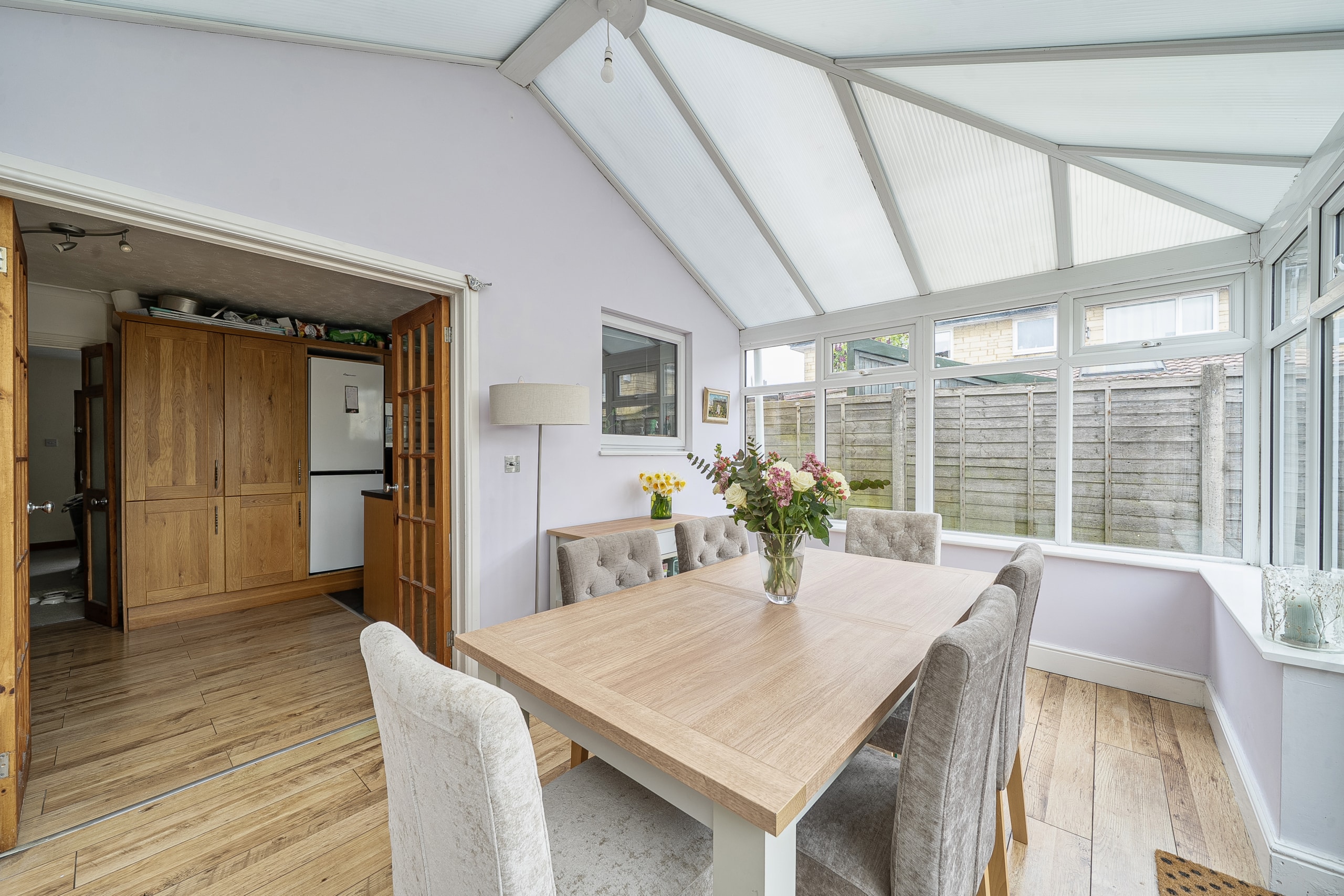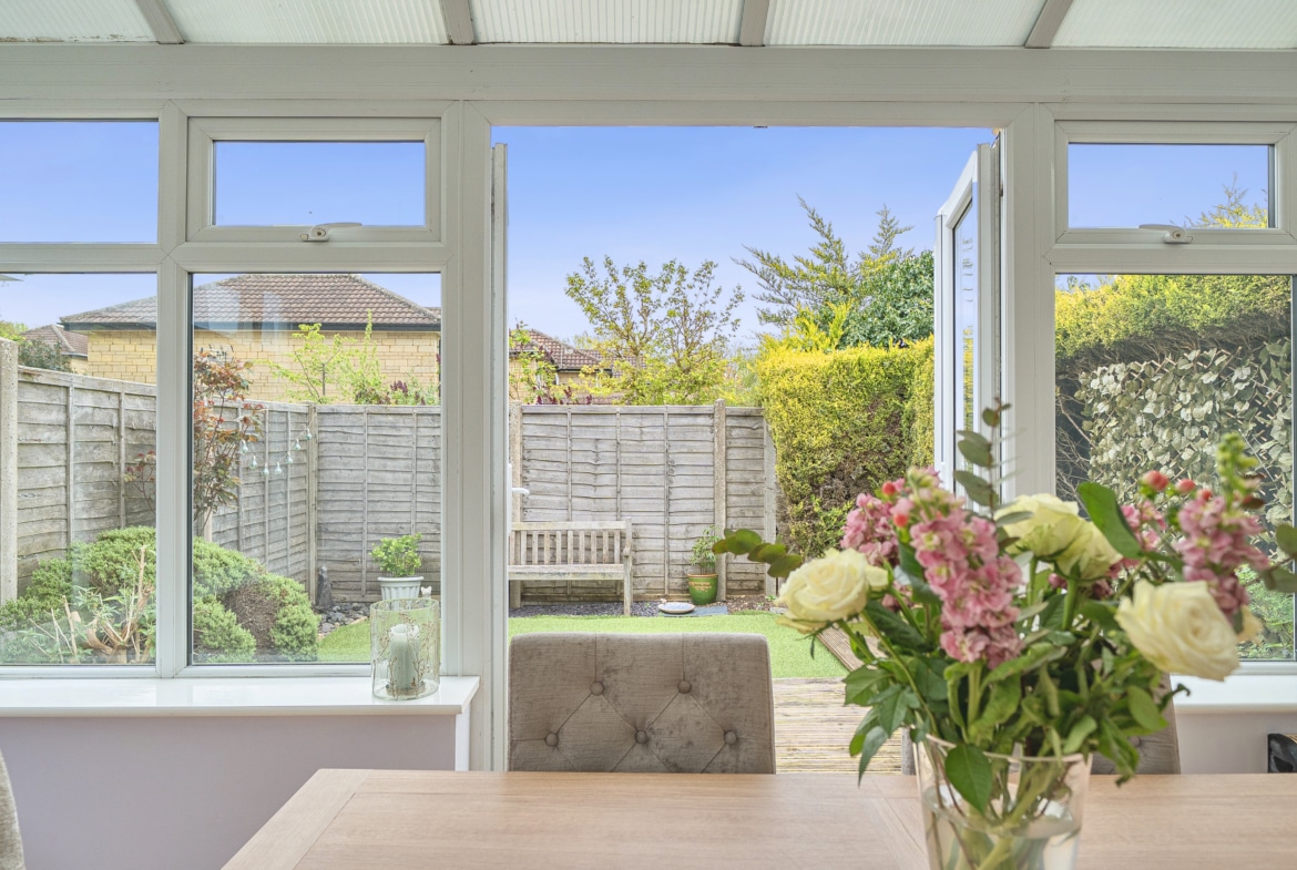 Well-presented three-bedroom end-terrace in Stratton Heights with spacious reception room, modern kitchen, conservatory, landscaped low-maintenance garden, plus garage and off-road parking.