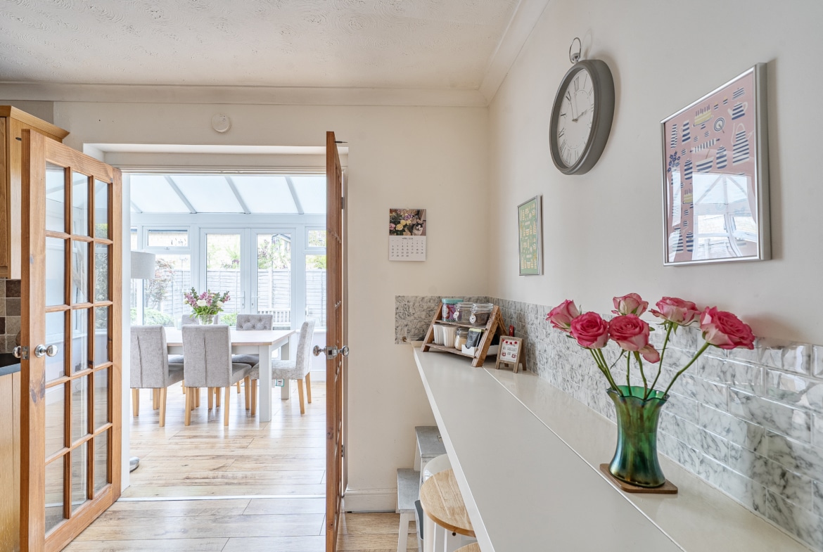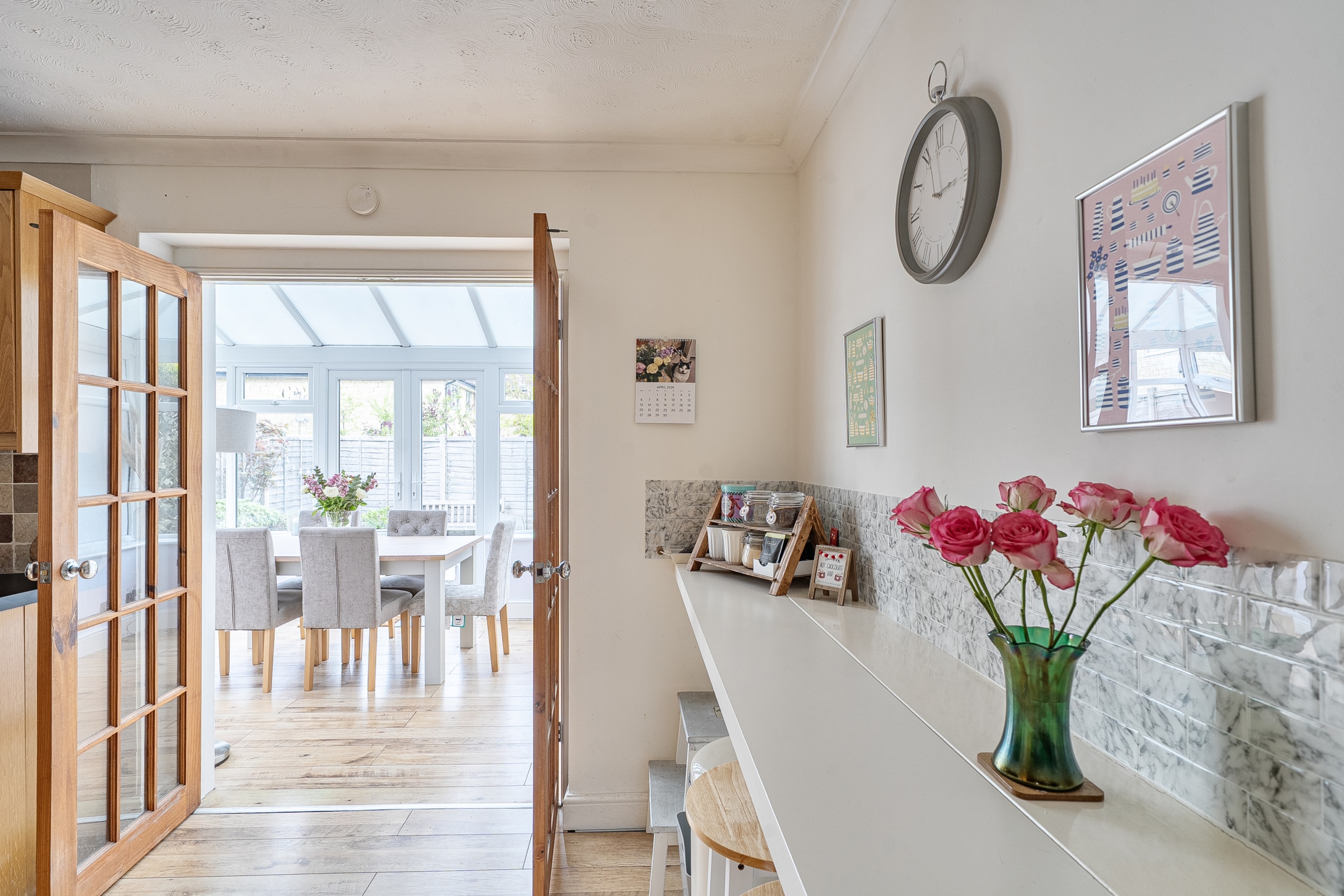 The ground floor features a welcoming entrance leading into a spacious reception room, perfect for both relaxing and entertaining. To the rear, a well-appointed kitchen provides ample storage and workspace, with direct access through to a bright conservatory that overlooks the garden—creating an ideal dining or additional living space.