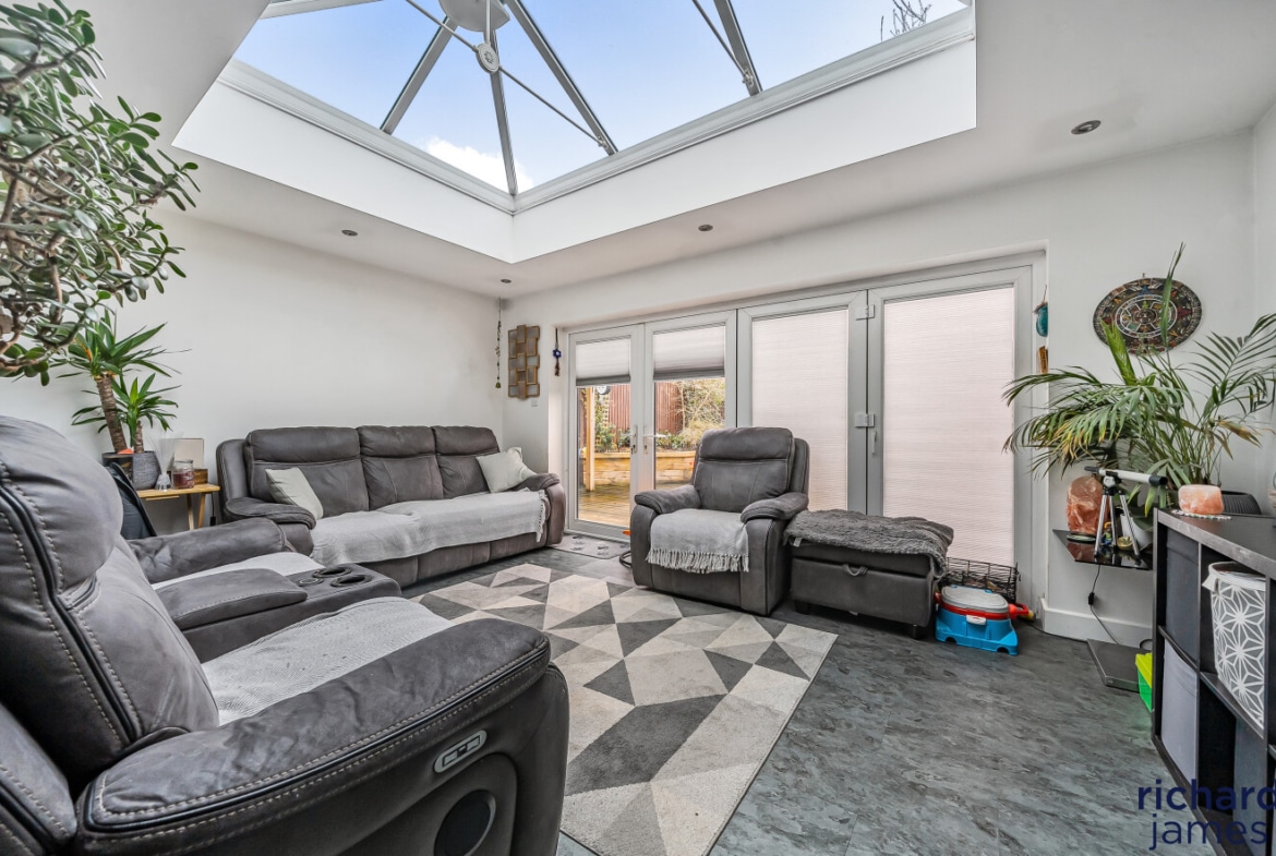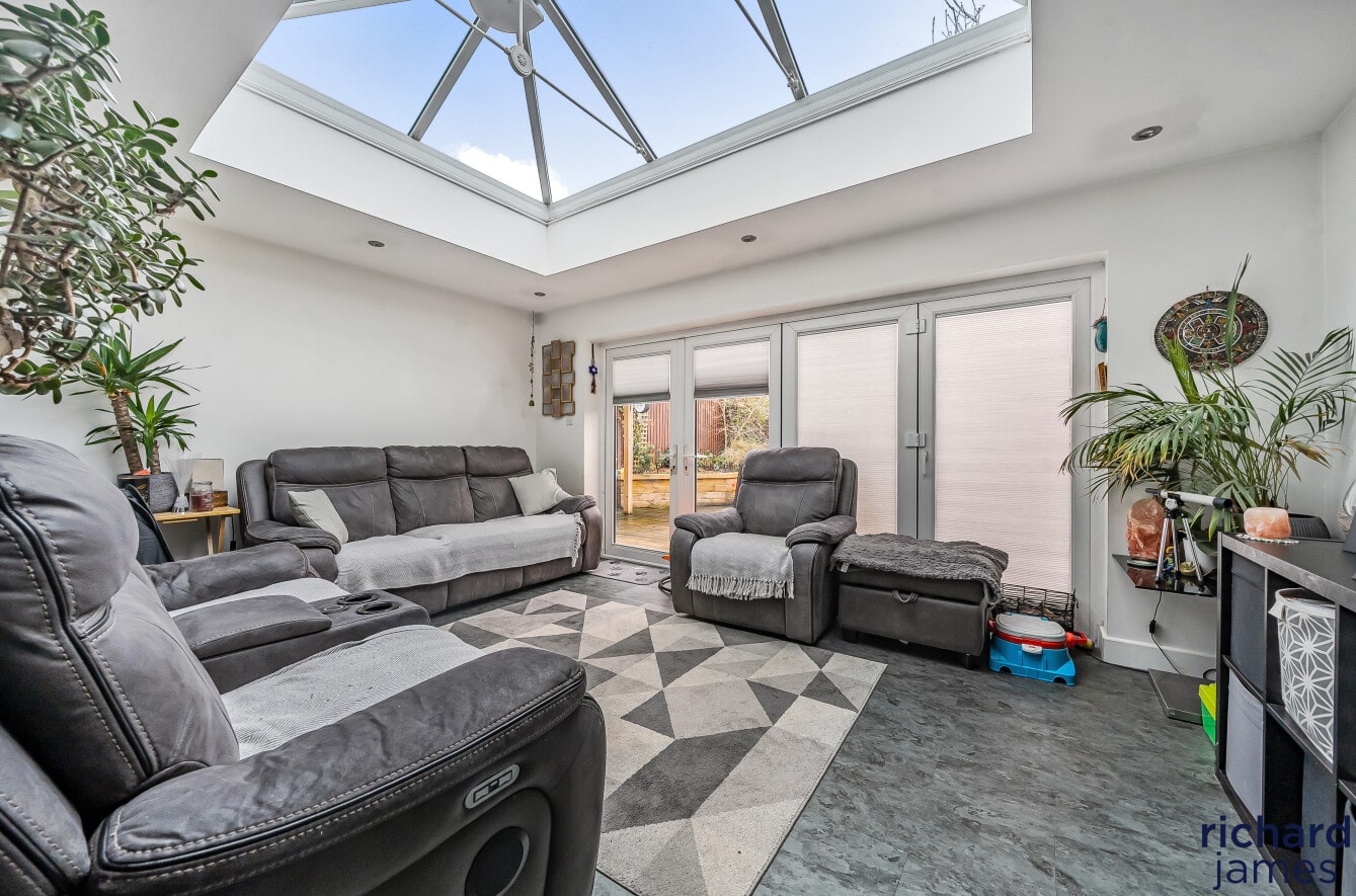 Upstairs, the first floor accommodates generous master bedroom, three further bedrooms and a modern family bathroom, providing ample space for everyone. Outside, the property features a beautiful orangery to the rear, seamlessly connecting indoor and outdoor living and overlooking the enclosed garden—a perfect spot for entertaining or unwinding in private.