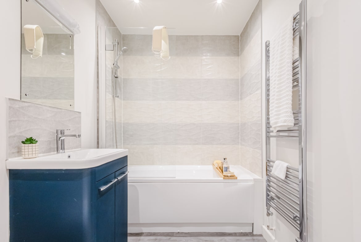 Upstairs, the master bedroom features a private en-suite, while the second bedroom is ideal for guests, a home office, or a growing family.