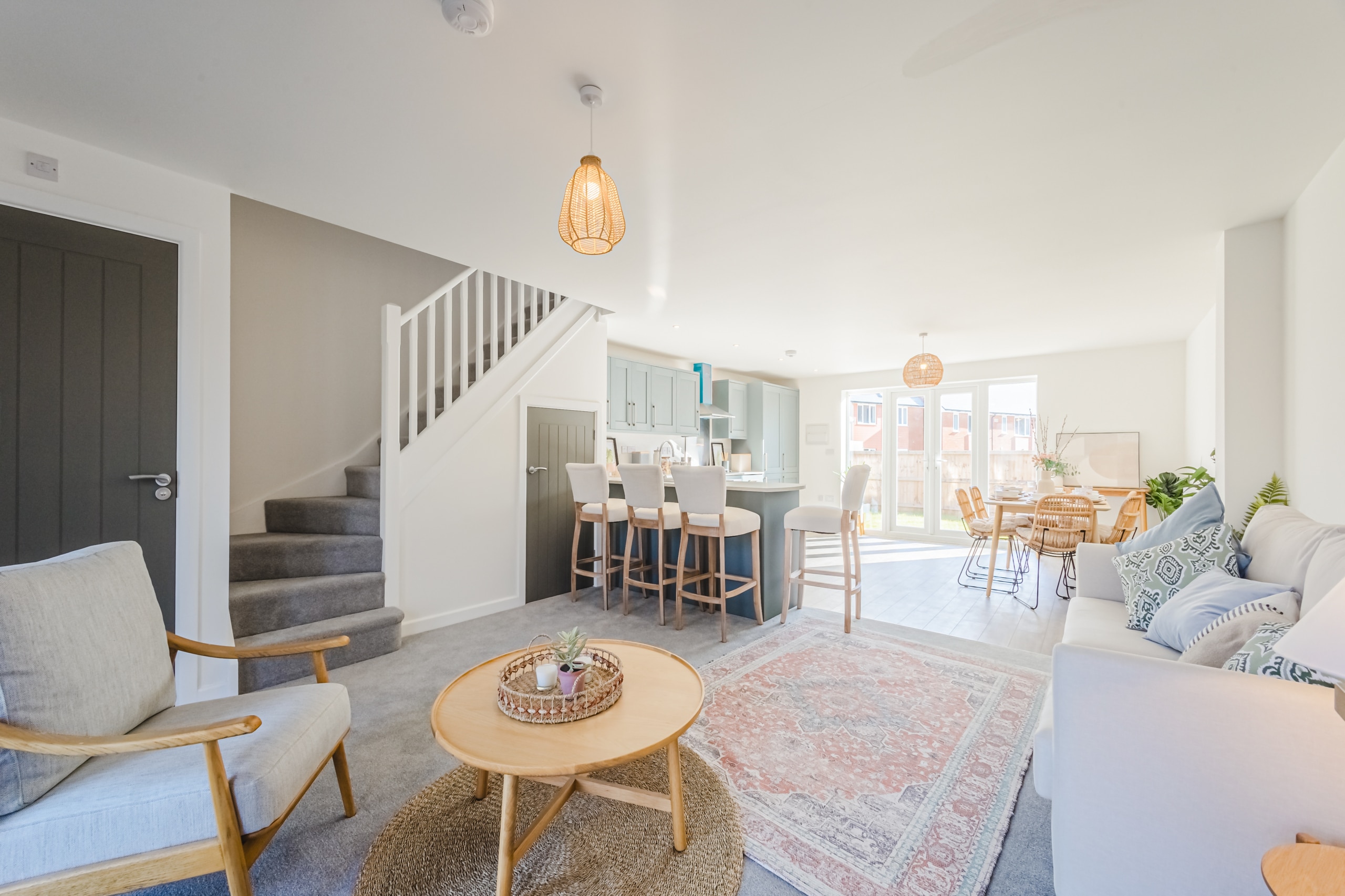 Boasting a bright and spacious open-plan living area, the home flows seamlessly onto a private garden—perfect for relaxing, entertaining, or enjoying the outdoors. The well-designed layout includes a contemporary kitchen, generous living space, and a sleek finish throughout.