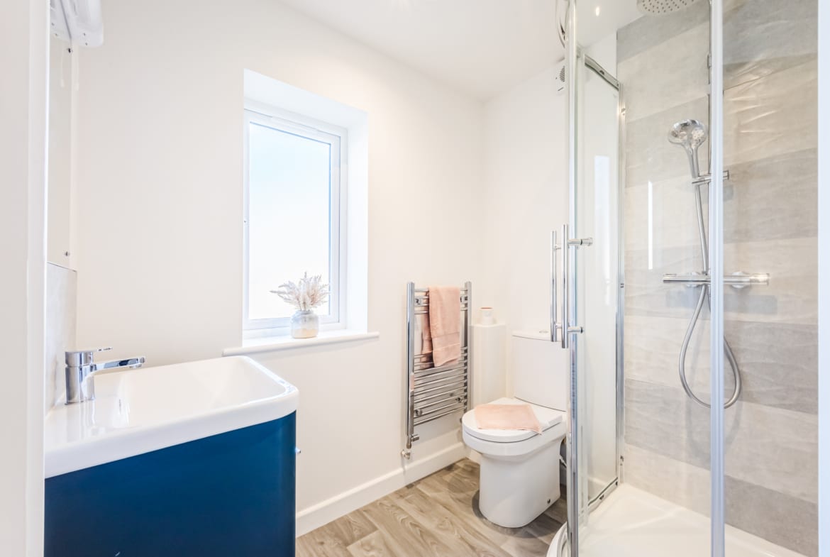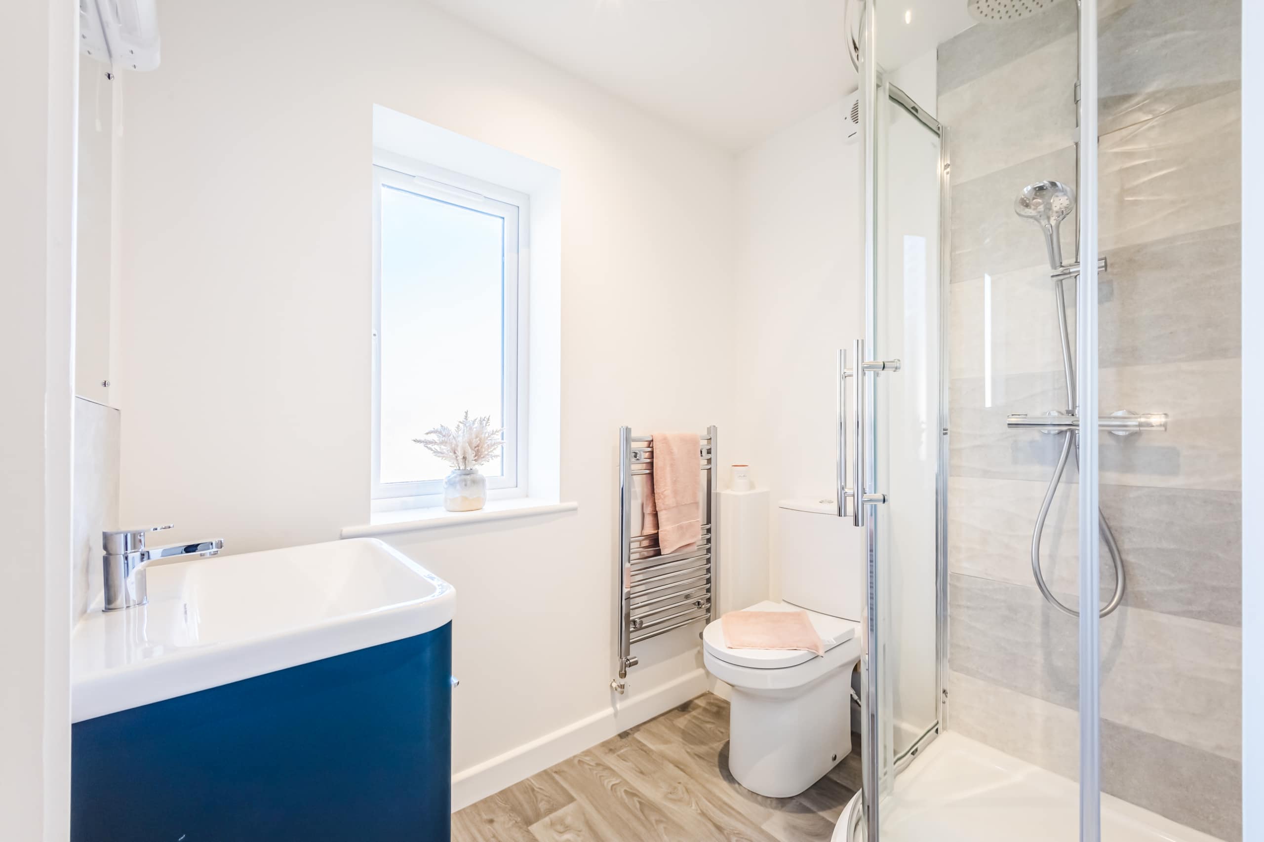 Upstairs, the three well-sized bedrooms offer a relaxing retreat. The principal bedroom stands out with its spacious layout and luxurious en-suite, which includes an enclosed shower space. Two additional bedrooms are serviced by a stylish family bathroom.