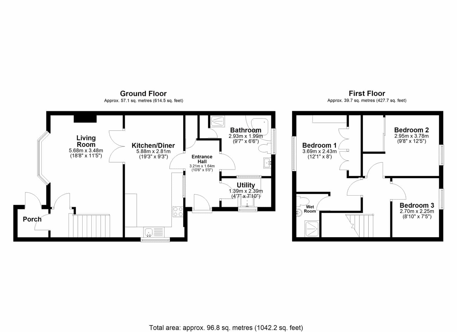 The first floor offers TWO DOUBLE bedrooms and a single bedroom. The master bedroom benefits from built in wardrobes and a Wet Room/En-Suite.