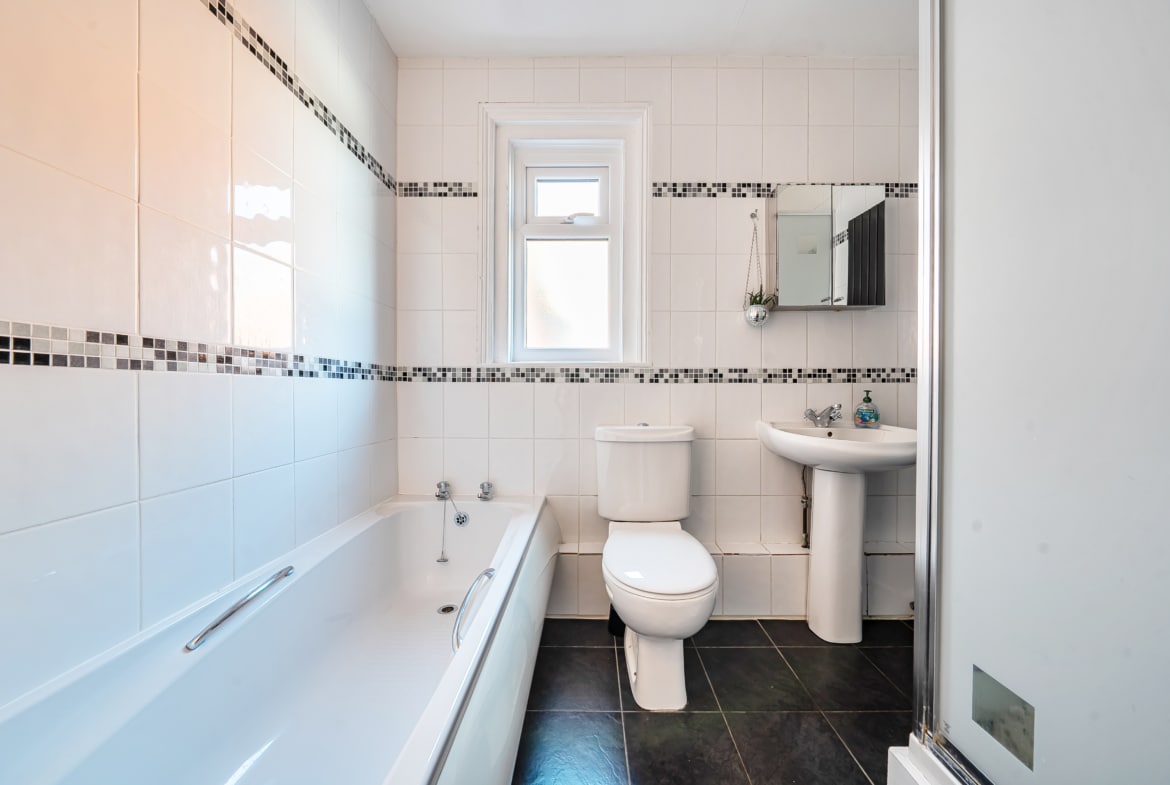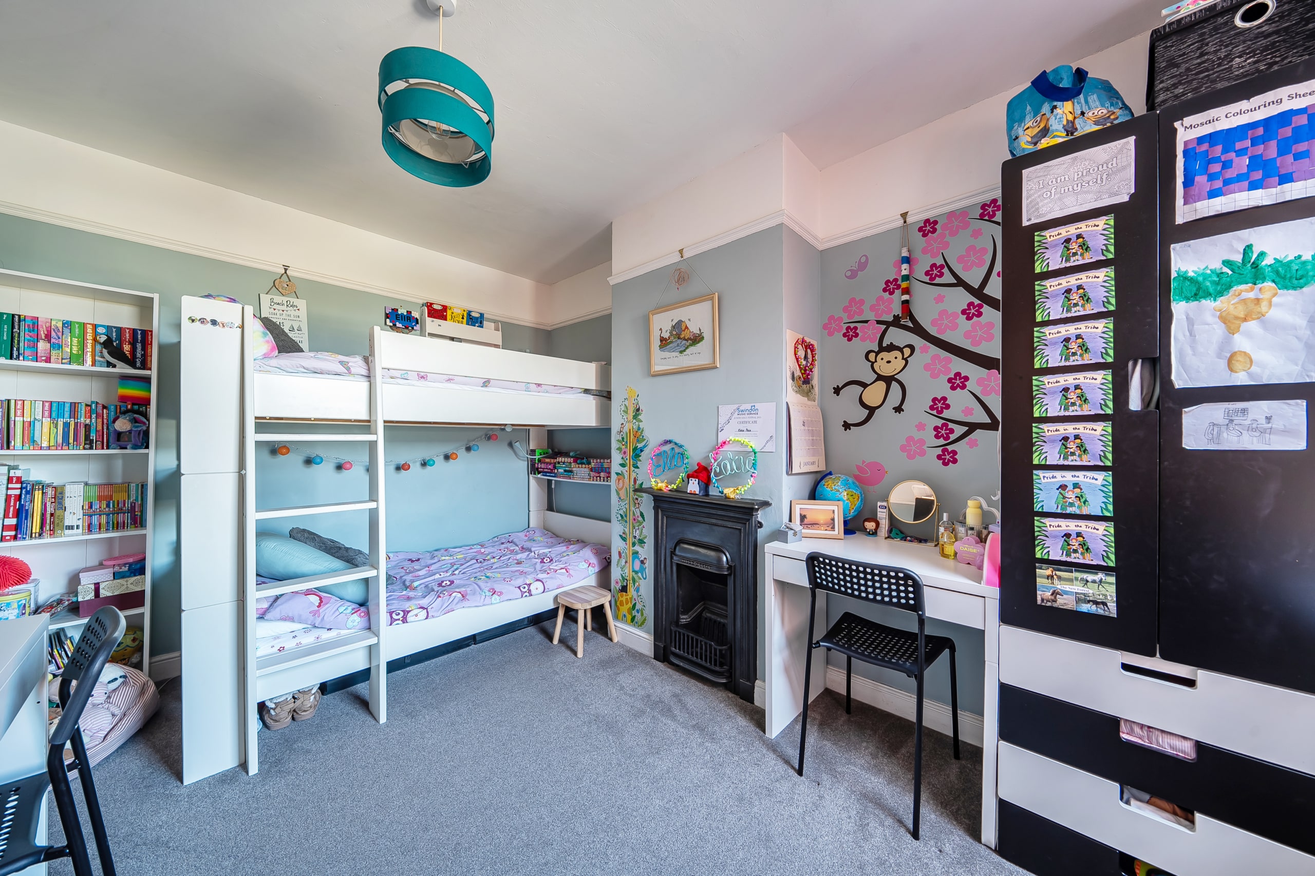 Upstairs, there are two spacious doubles and a third single bedroom. The master bedroom at the front boasts another feature fireplace and dual windows that flood the room with natural light. The third bedroom is currently arranged as a single but would equally lend itself to a home office or nursery. A well sized family bathroom completes the first floor accommodation.