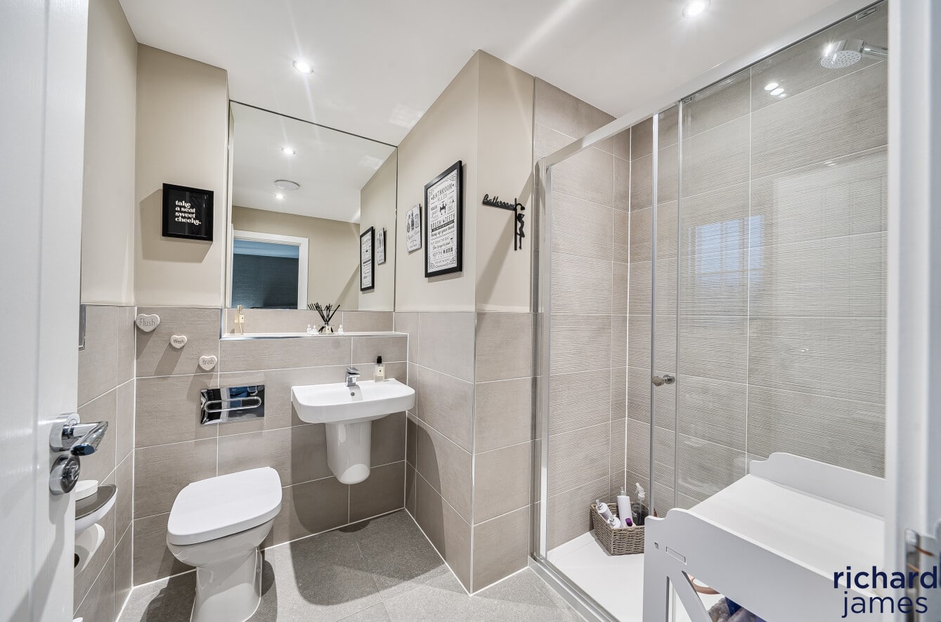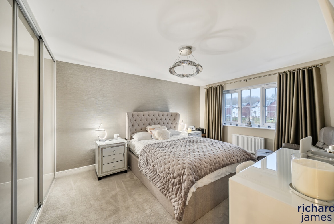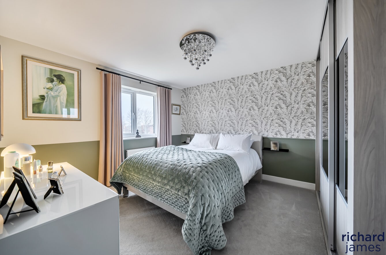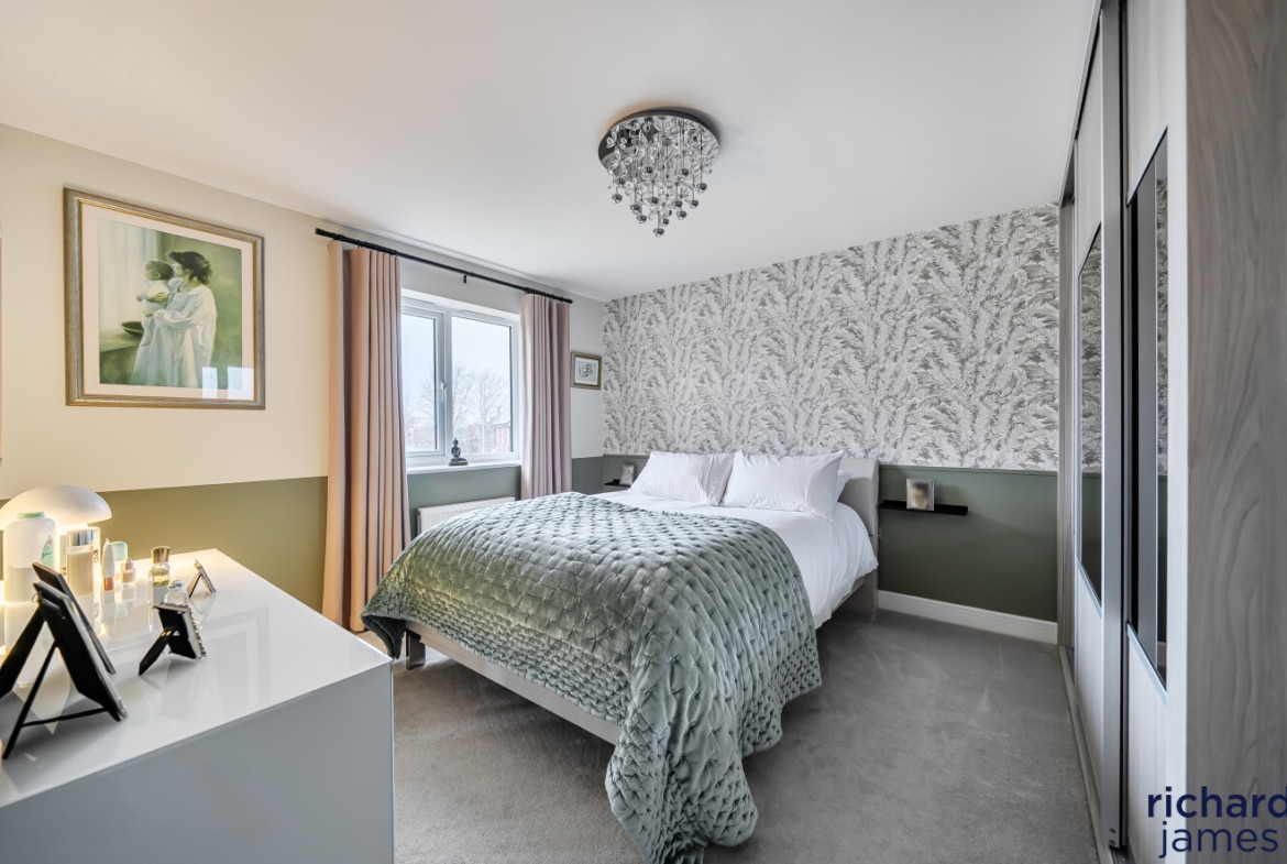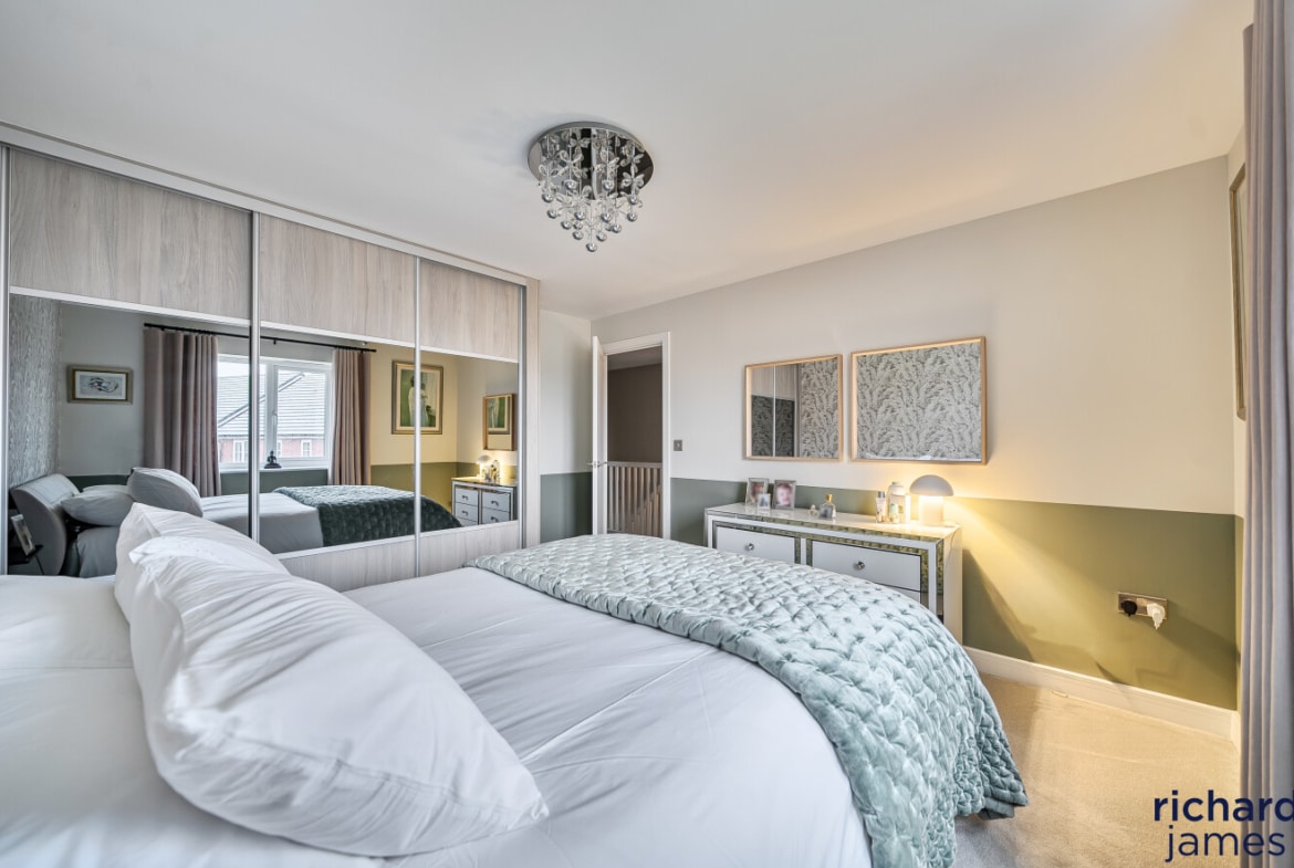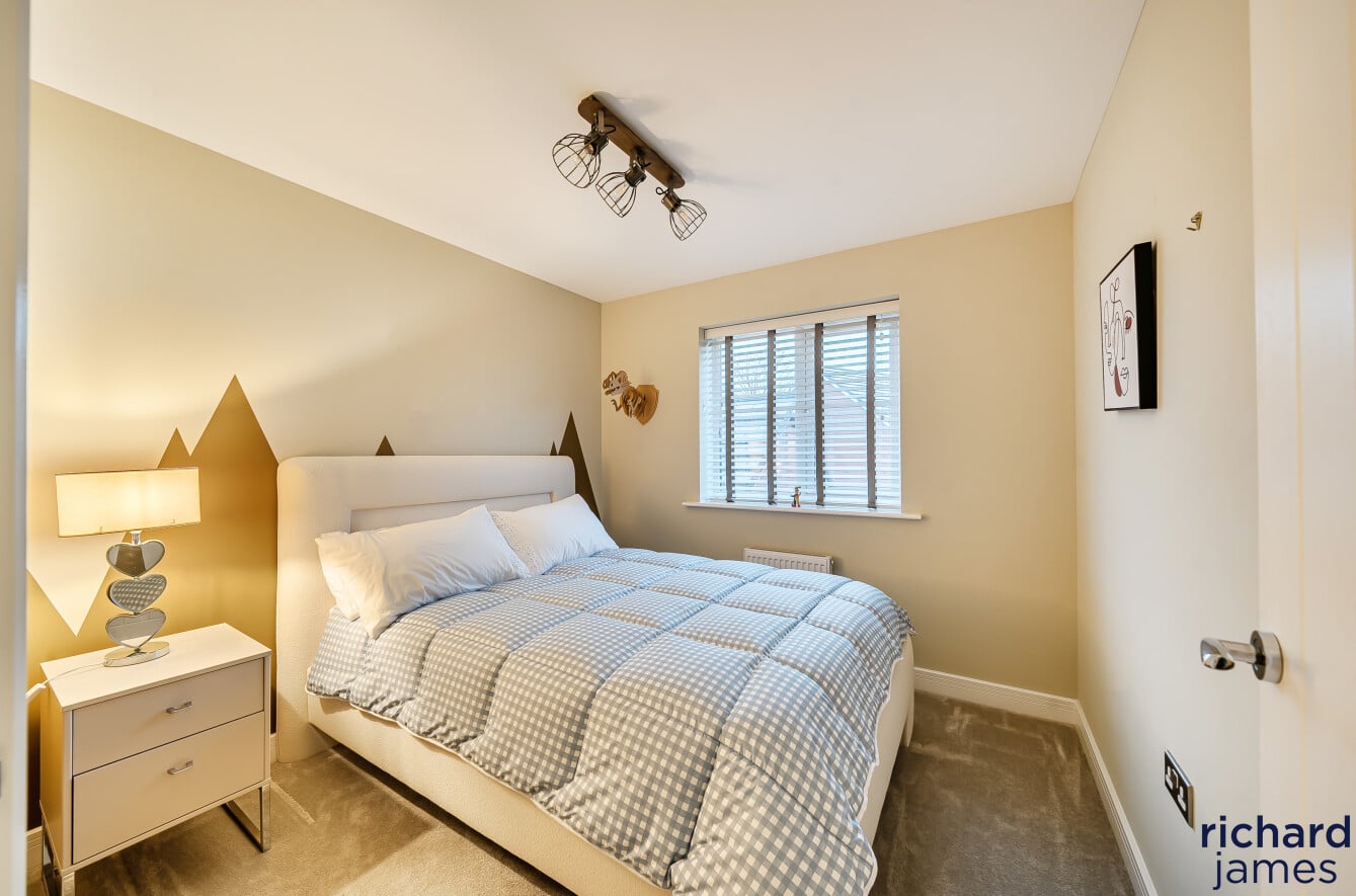 Upstairs, the bedrooms are well proportioned and beautifully presented, with the principal bedroom benefiting from fitted storage and a sleek en-suite shower room. The remaining bedrooms are served by a modern family bathroom, all finished to a high standard and continuing the neutral, well-considered styling seen throughout the property.