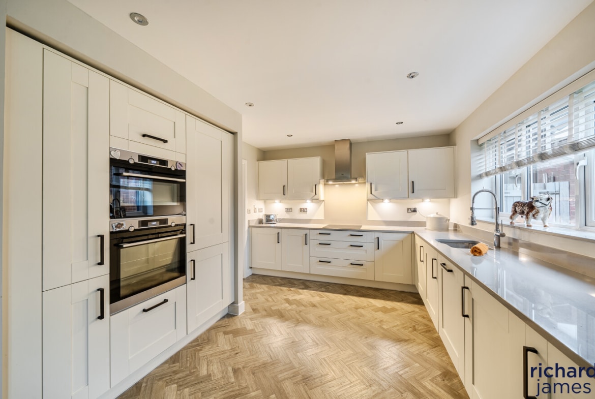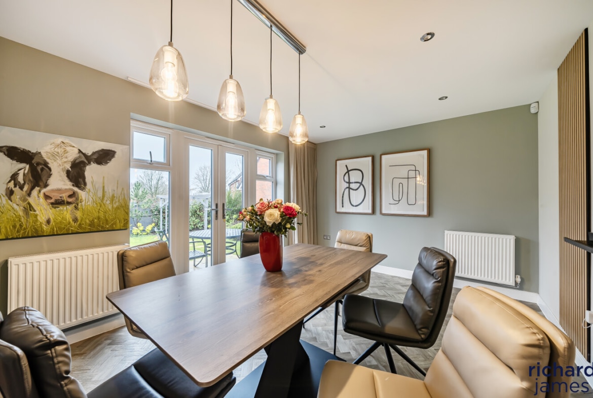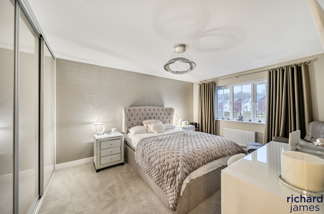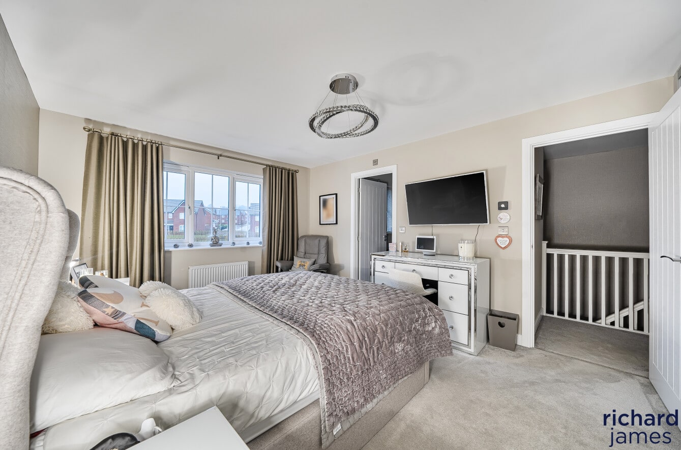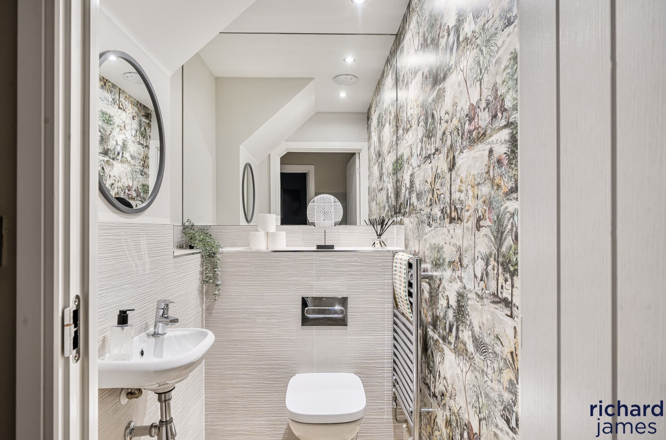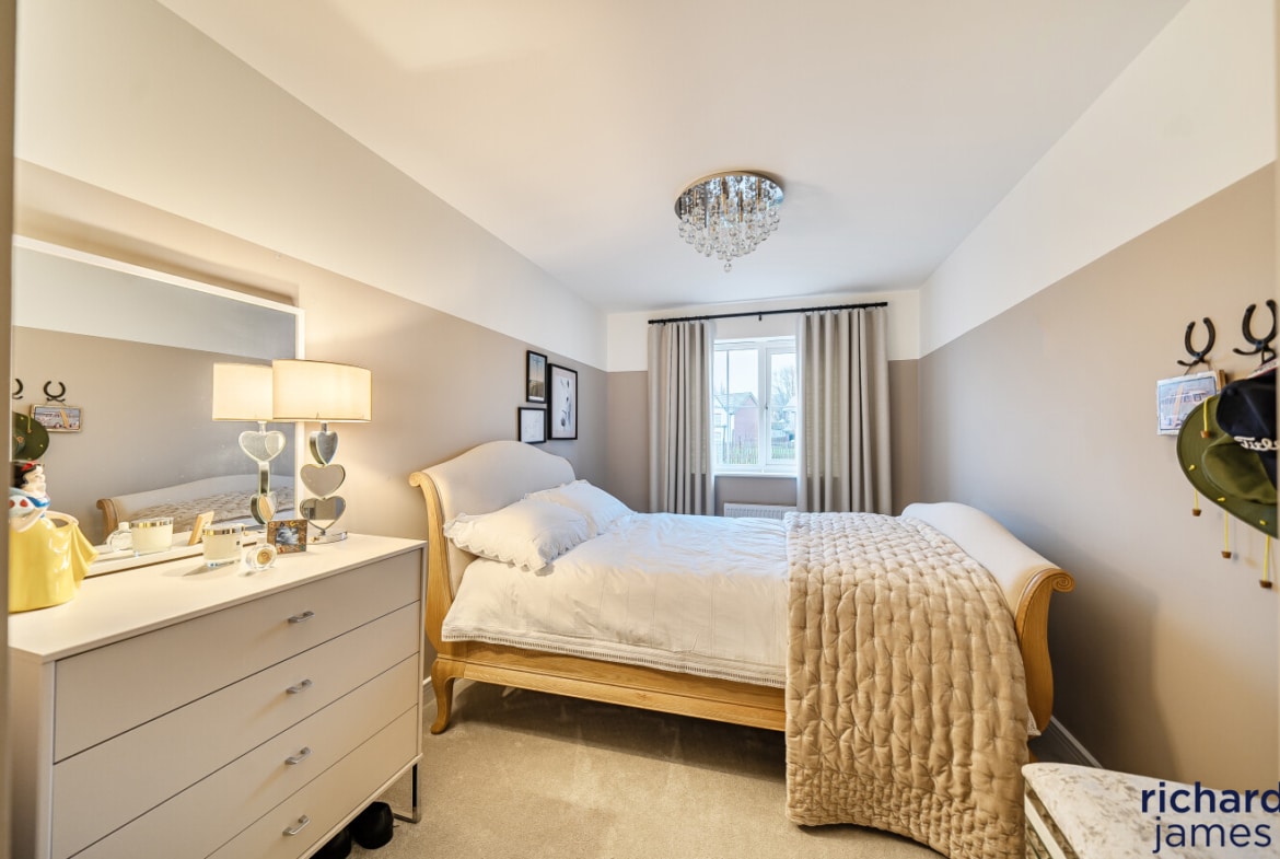 Upstairs, the bedrooms are well proportioned and beautifully presented, with the principal bedroom benefiting from fitted storage and a sleek en-suite shower room. The remaining bedrooms are served by a modern family bathroom, all finished to a high standard and continuing the neutral, well-considered styling seen throughout the property.