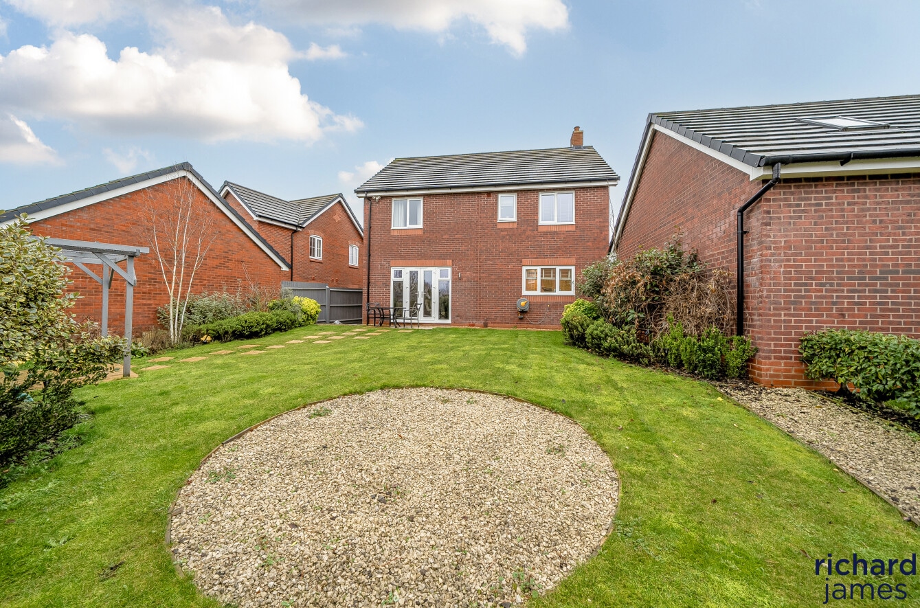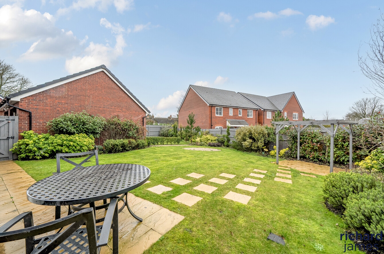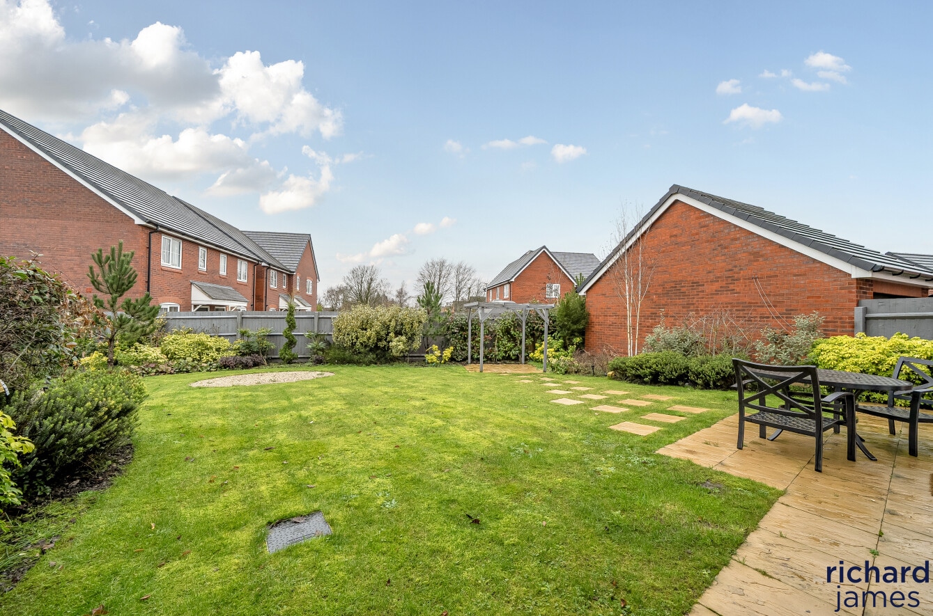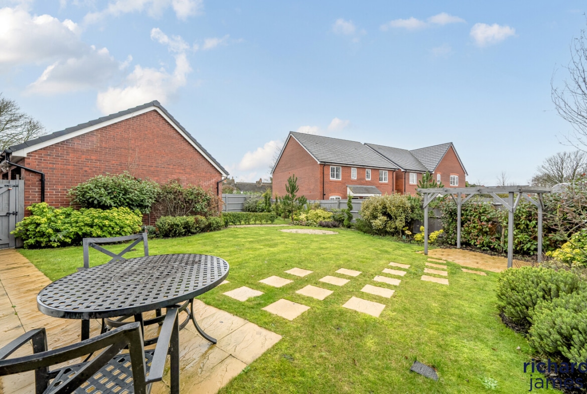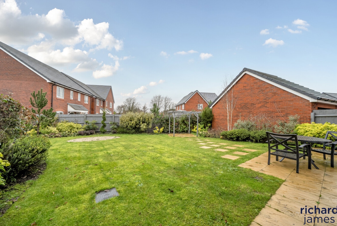 Externally, the house enjoys a sizeable and private rear garden that has been carefully landscaped, offering a generous lawn, patio seating areas and an attractive outlook, ideal for both families and those who enjoy outdoor entertaining. To the side, the property is complemented by a detached double garage and a wide driveway providing ample off-road parking.