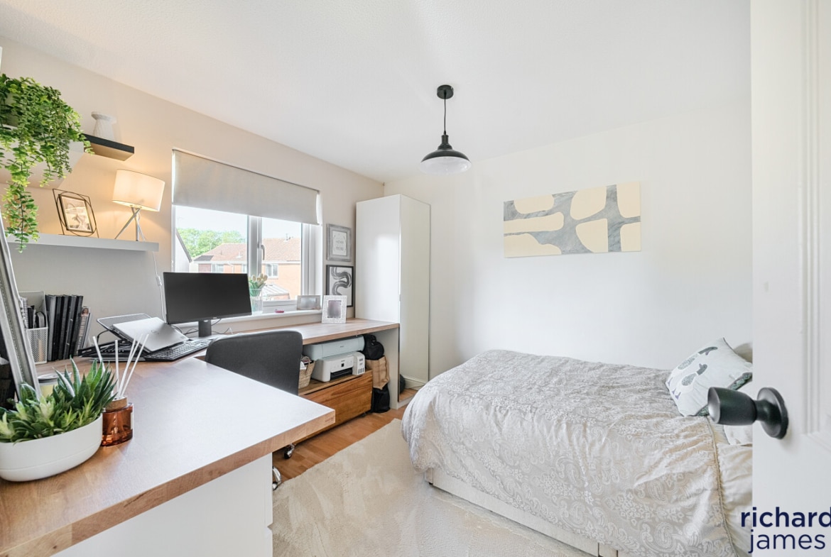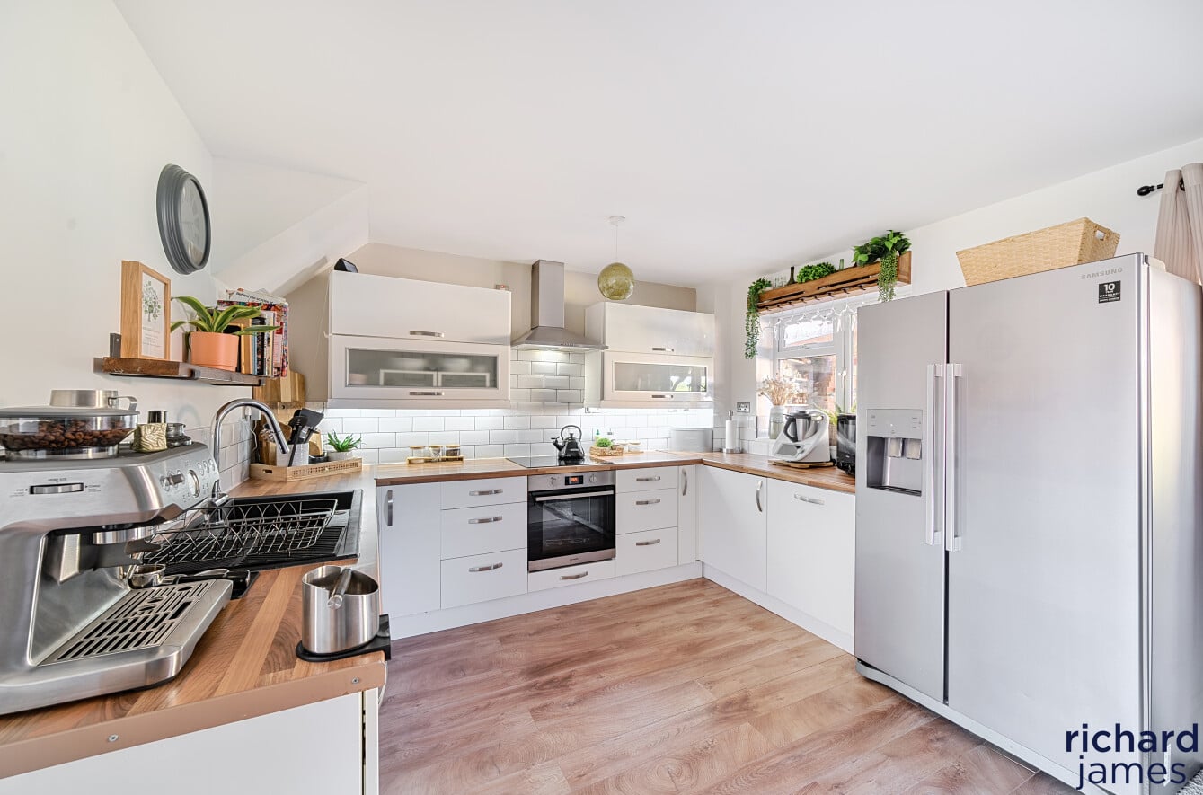 This cherished property offers two double bedrooms and a single, with a well-maintained interior and a refitted kitchen/dining room and boiler. Outside, enjoy a low maintenance front garden, parking for two, and a south-westerly rear garden with a man cave and pizza oven. Nestled in a tranquil cul-de-sac, it’s just minutes from shops, schools, and dining. Ideal for commuters, M4 J16 is under 2 miles away.
