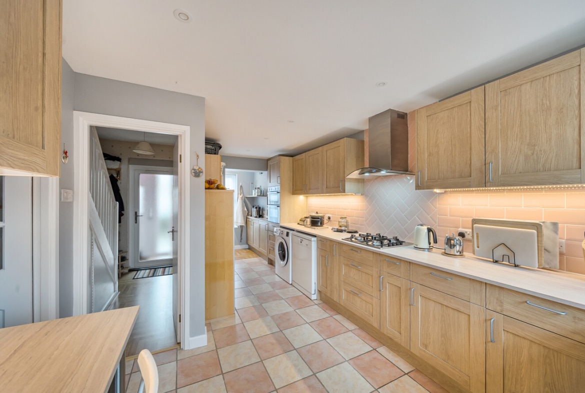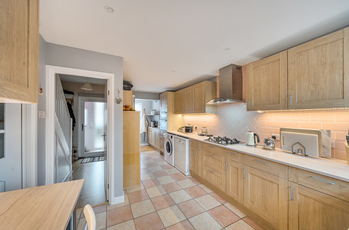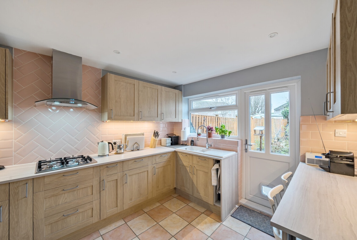 This charming three-bedroom home is set in a great location and begins with a well-maintained front garden, offering an inviting first impression. Step inside to find a practical, modern kitchen featuring plenty of storage and the added benefit of a breakfast bar—perfect for quick meals or a morning coffee.