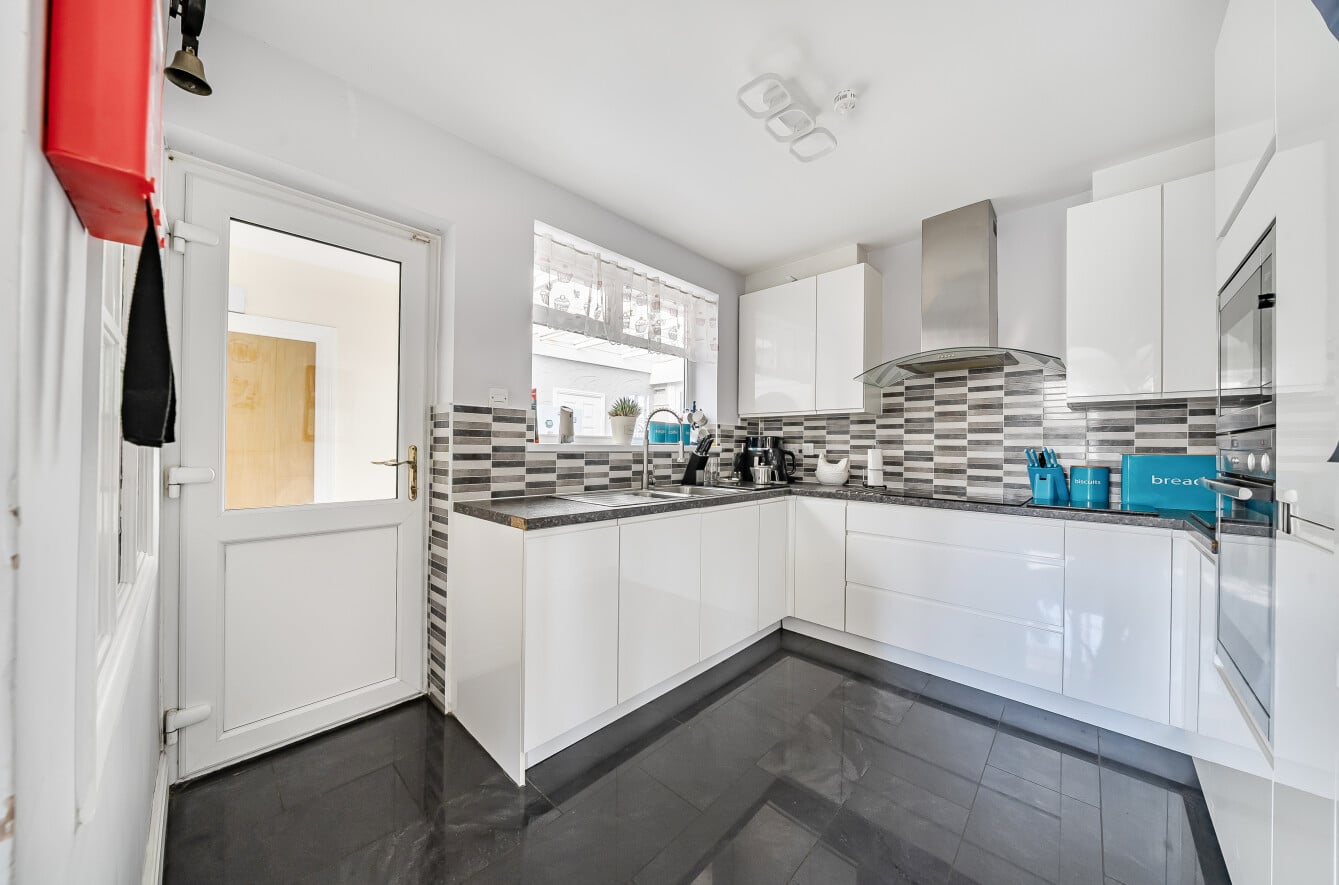 The three bedrooms are positioned at the rear of the property, offering privacy and comfort. At the heart of the home is a large lounge, which opens through an archway into a dedicated dining area, providing a natural flow into the well-laid-out kitchen. Just off the kitchen, you’ll find a generous utility room, offering excellent additional space and practicality.