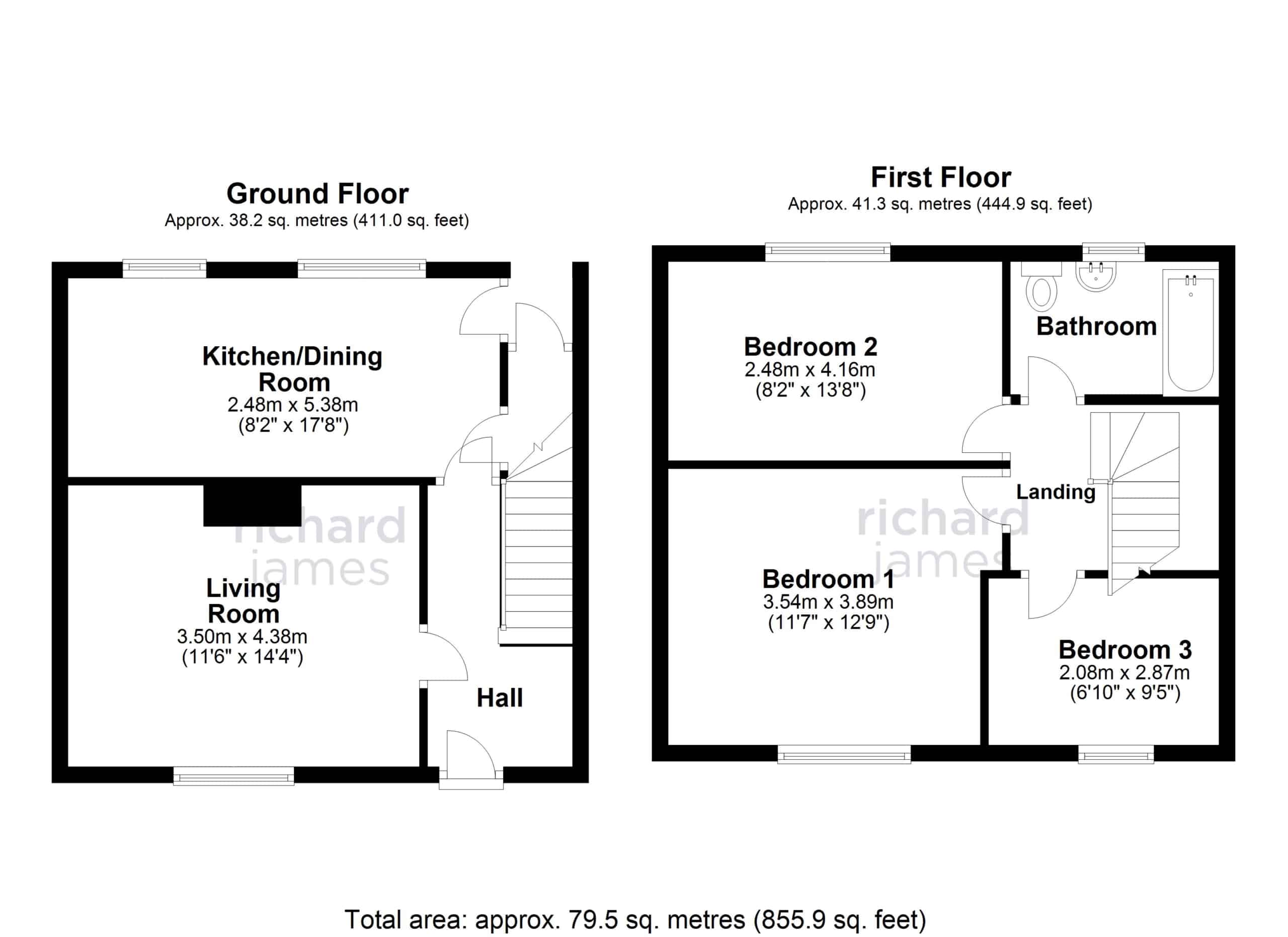 Upstairs, you’ll find three well-proportioned bedrooms, including two generous doubles, along with a contemporary bathroom featuring a shower.