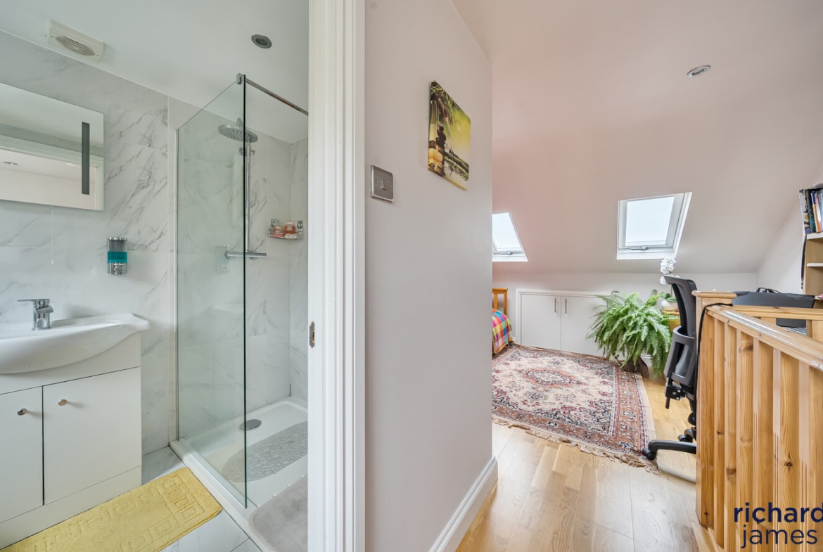 The second floor offers; second floor landing, and a large main bedroom with eaves storage and an en-suite shower room.