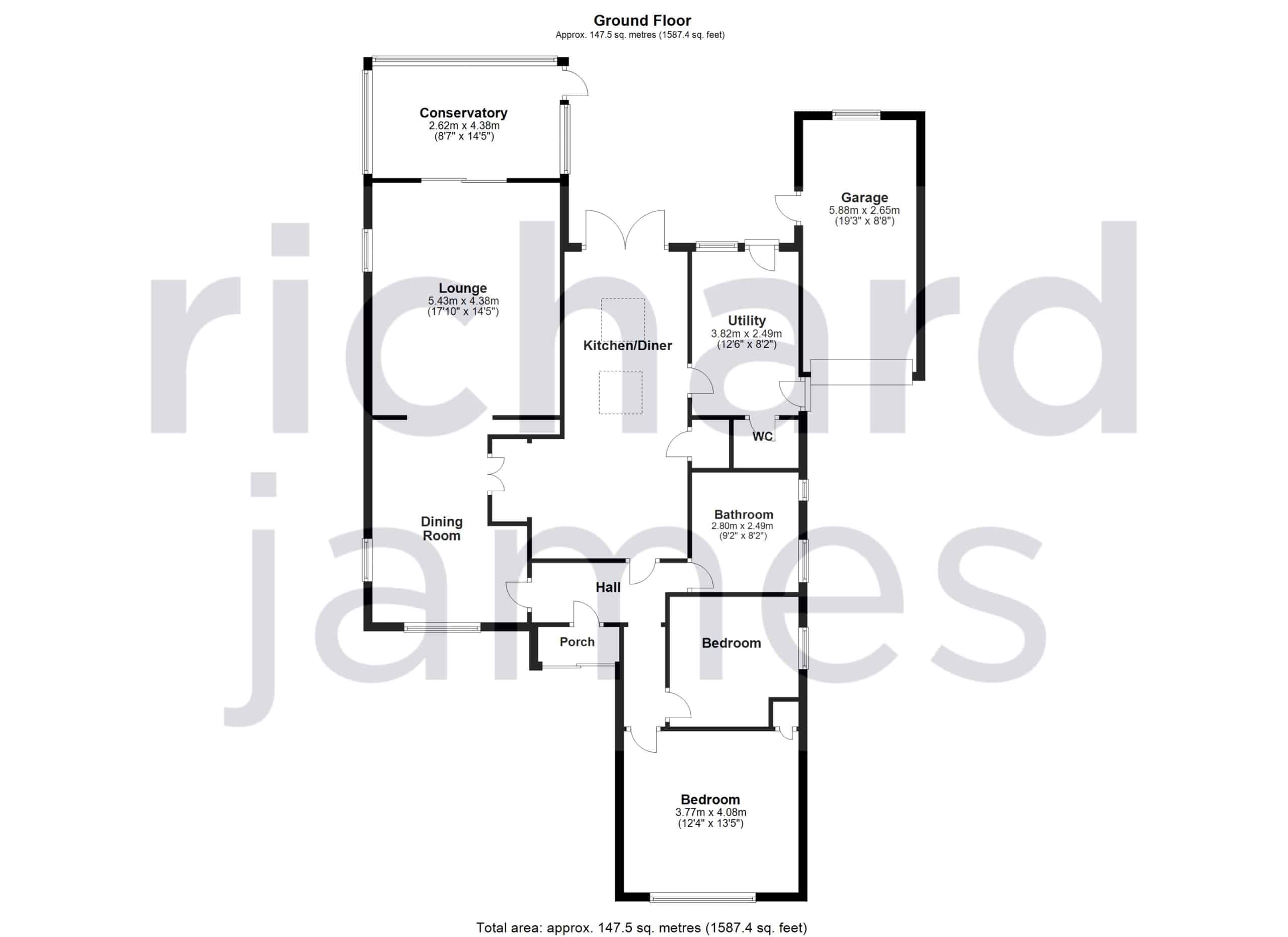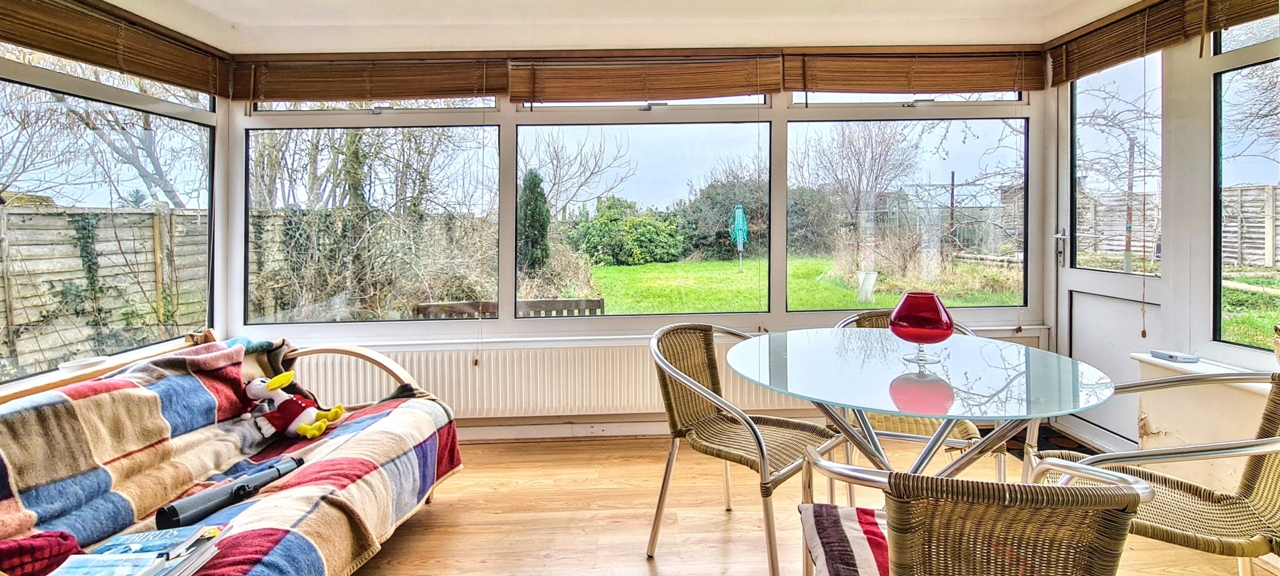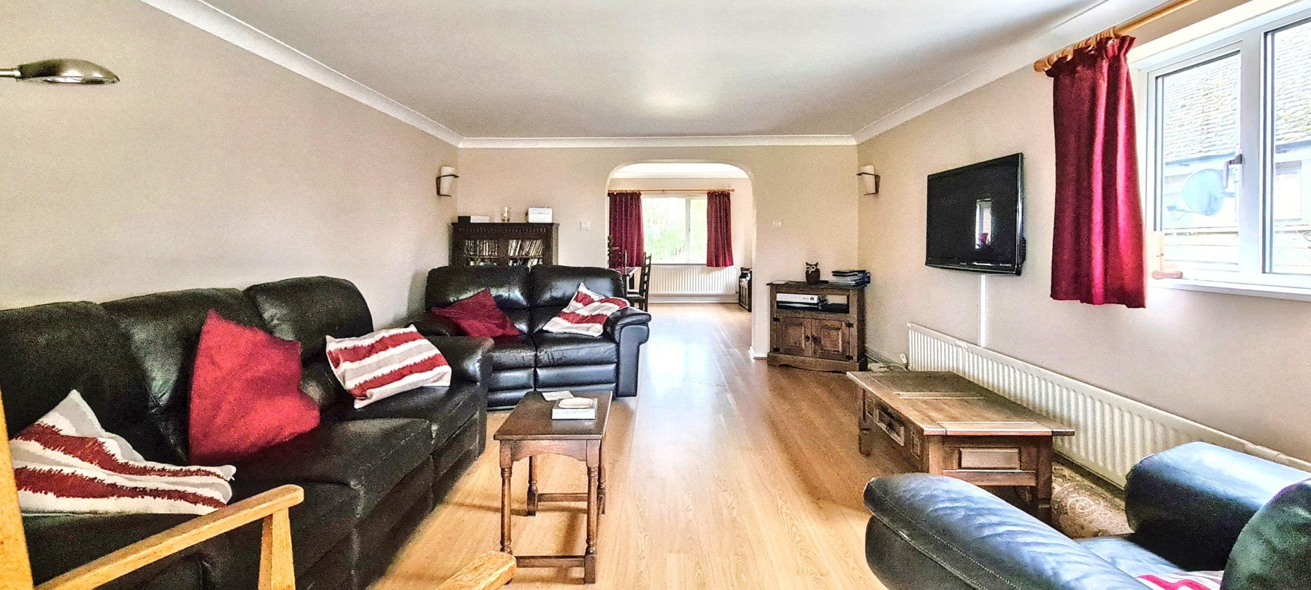 Boasting a generously sized front garden with ample off-road parking, the property features a driveway leading to a garage and side entrance. The main entrance is via a charming porch, opening into a welcoming hallway that provides access to a spacious lounge/diner, a well-appointed kitchen/diner, two double bedrooms, and a family bathroom. Additional highlights include a delightful conservatory and a convenient separate WC.