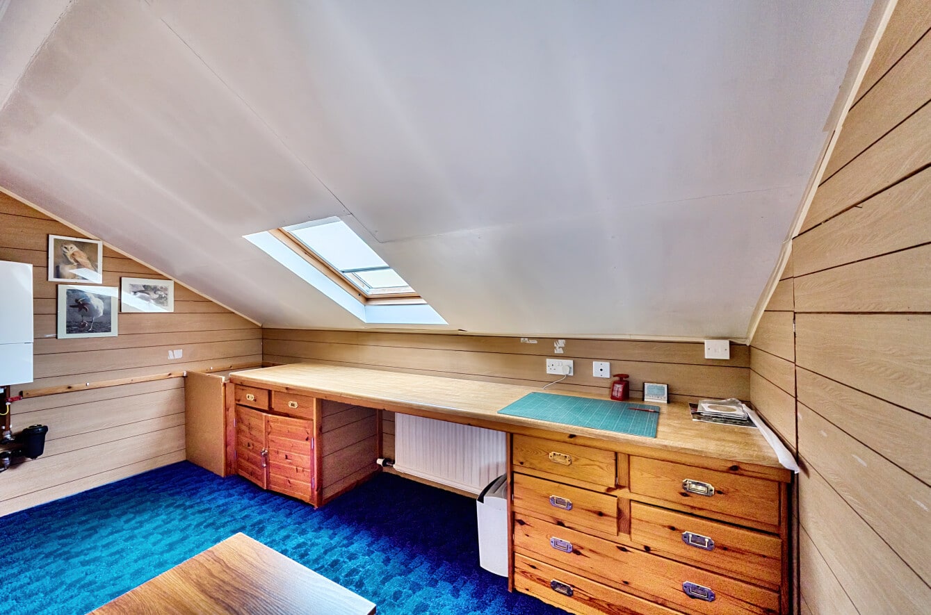 The large reception room provides a comfortable area for lounging, while the downstairs WC and utility room add everyday practicality and open directly onto the car port. A bright and airy double bedroom sits on the ground floor, along with a dedicated dining space ideal for family meals. The lovely rear garden completes the ground floor and includes both a workshop area and garage access—perfect for hobbyists or additional storage needs.
