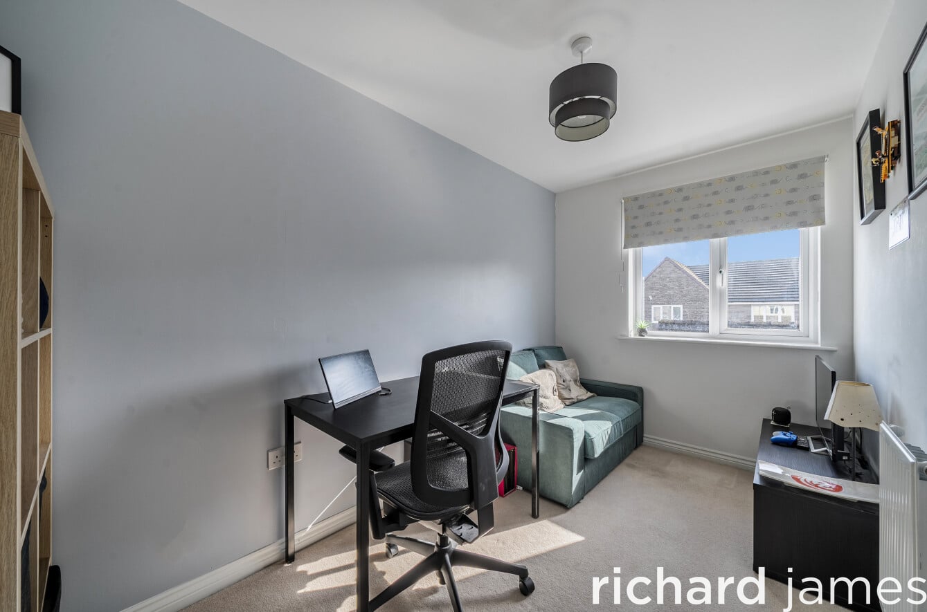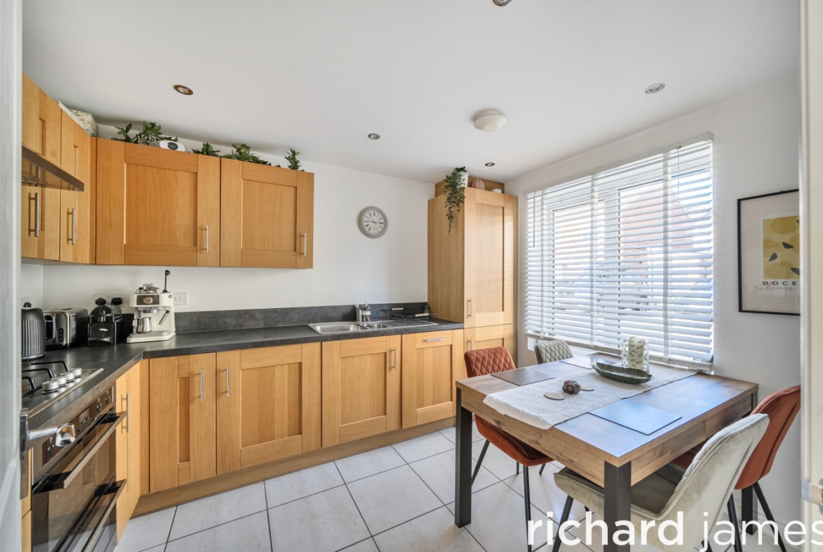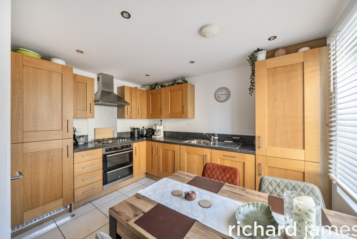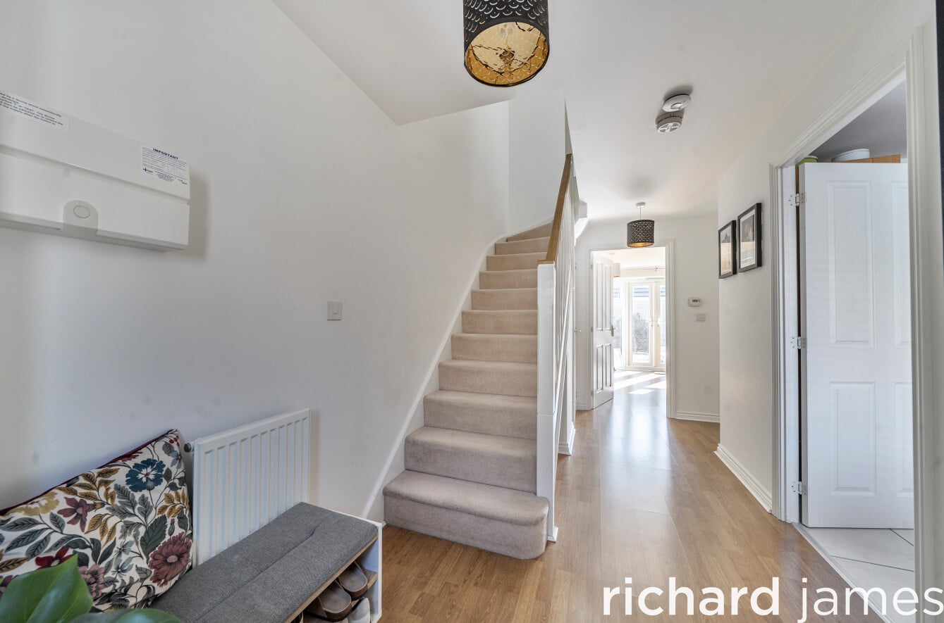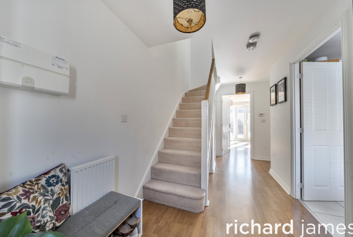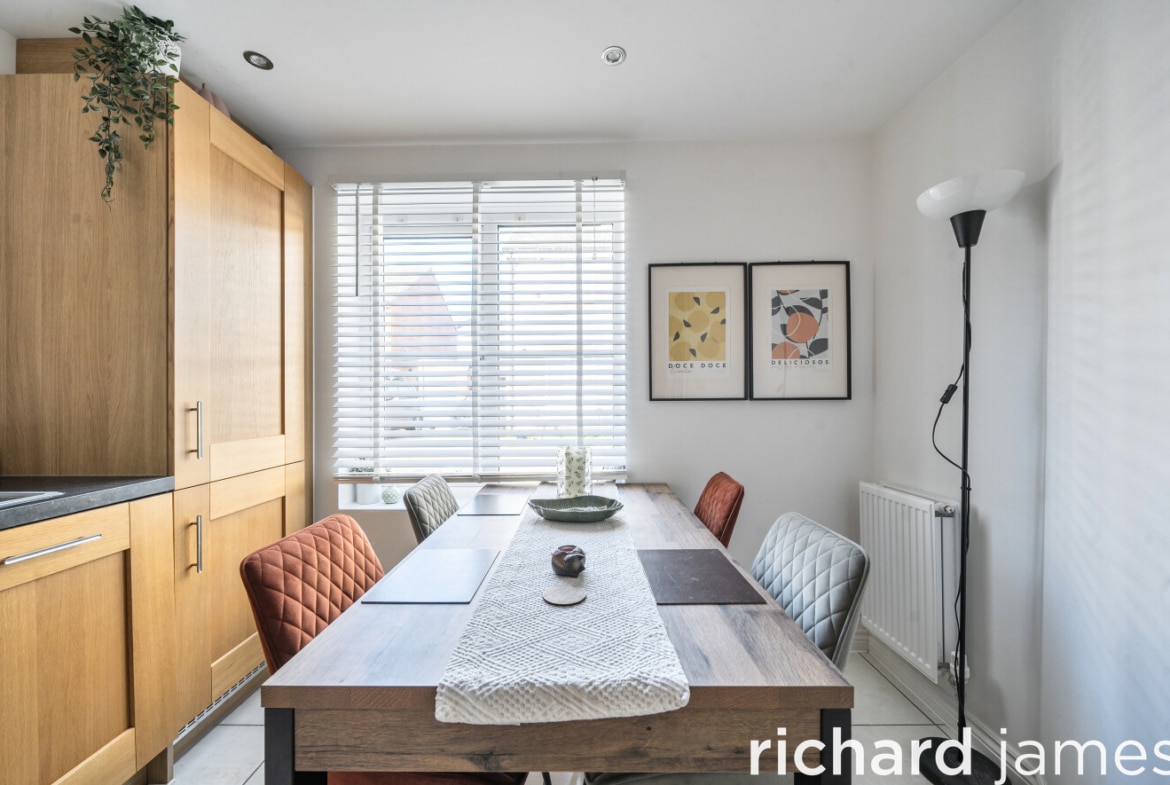 Upstairs, the first floor continues to impress with a generous main bedroom complete with its own en‑suite shower room. Two further well-sized bedrooms provide flexibility for family members, guests, or home working, and are served by a contemporary family bathroom.
