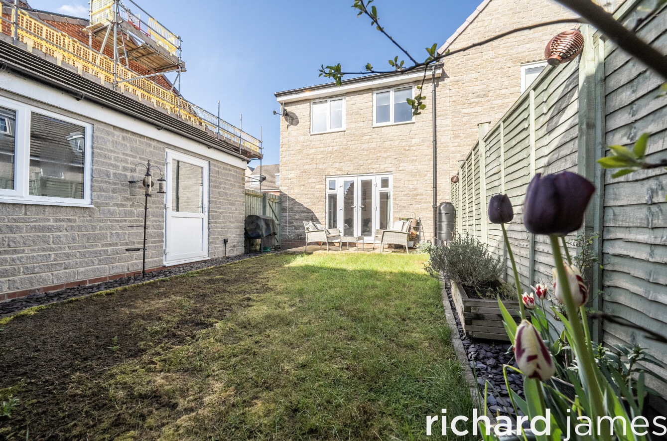Externally, the enclosed rear garden has been thoughtfully arranged with a patio seating and barbecue area leading onto a lawn, ideal for both relaxing and entertaining. Gated rear access leads to the detached garage, which benefits from power, lighting, and additional storage. To the front, a generous driveway provides parking for multiple vehicles.