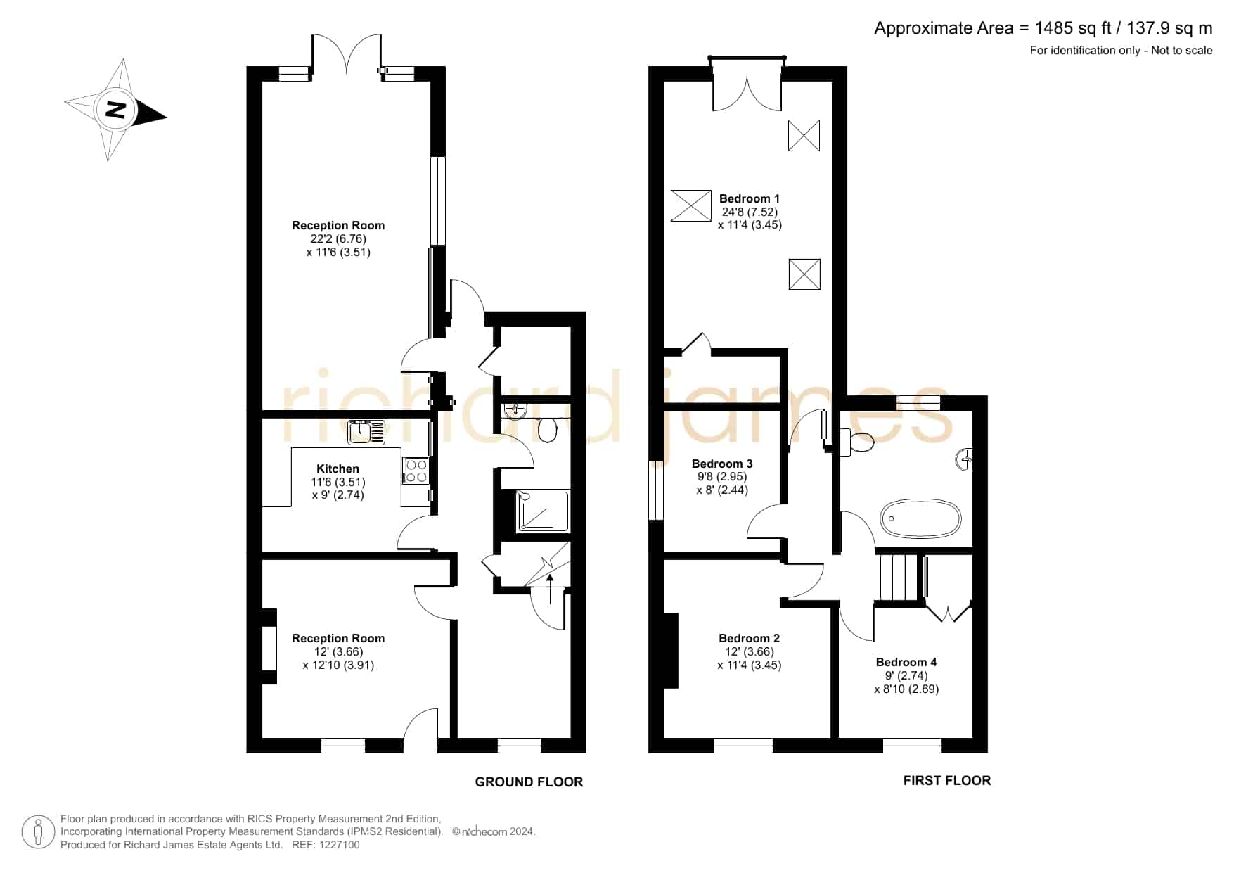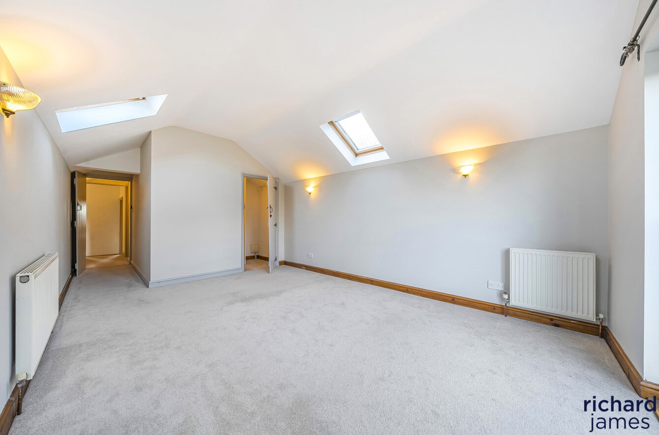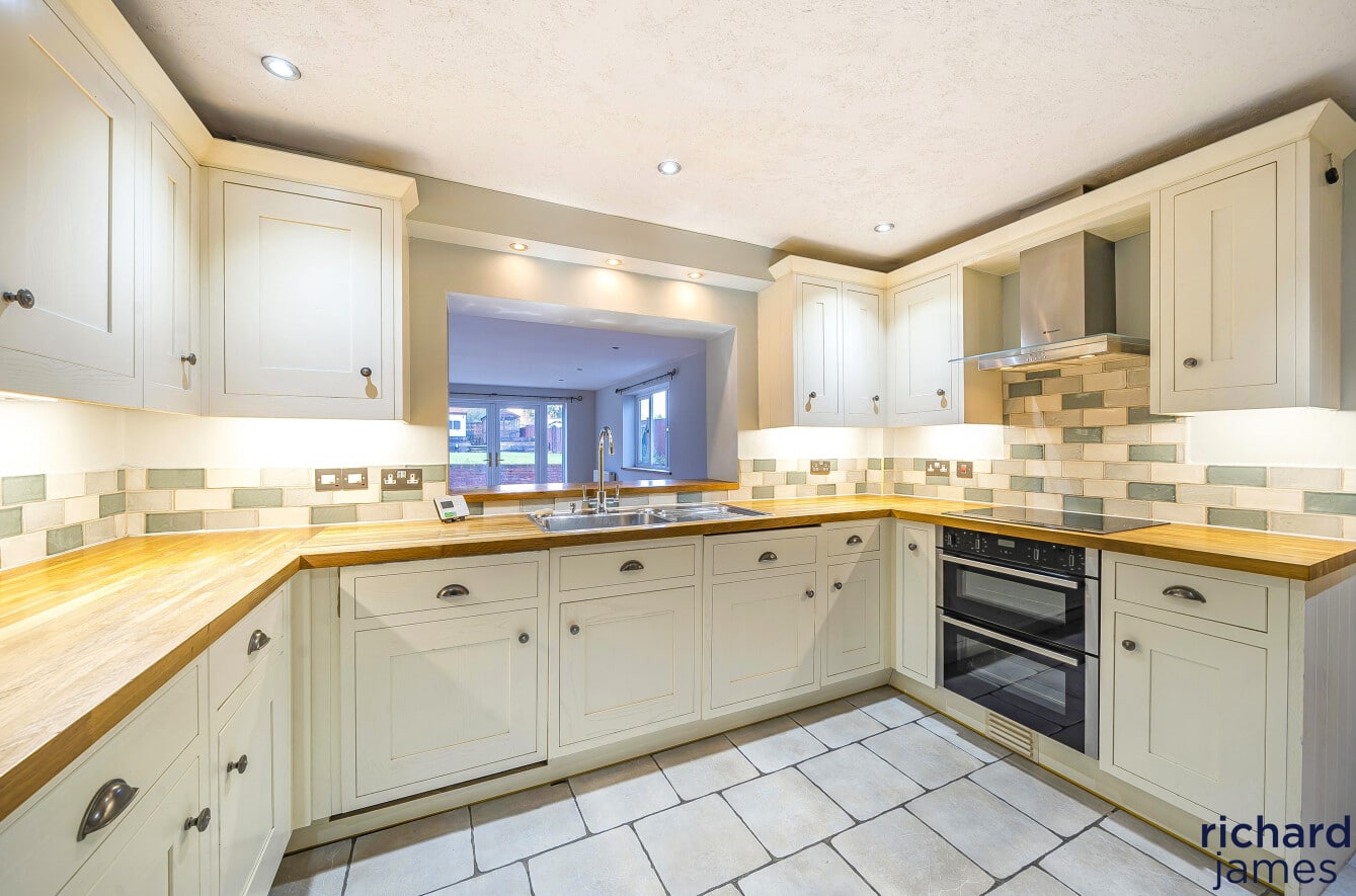 The interior of this home is equally impressive, beginning with a cosy sitting room featuring a charming wood burner. At the front, a dedicated home office space is complemented by a staircase leading to the first floor. A spacious inner hallway provides access to the well-appointed kitchen, while a convenient downstairs shower room and cloakroom offer practical living. The rear of the house opens up into a large, inviting sitting room, which boasts French doors that lead out to the rear terrace and garden, creating a seamless connection between indoor and outdoor spaces.