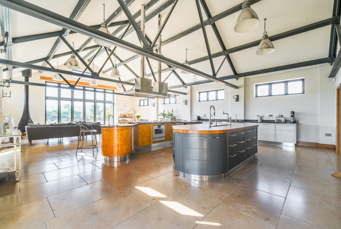 A particular highlight of the home is the breathtaking, c.40ft vaulted kitchen and family room, offering panoramic views across open countryside—an ideal space for entertaining or simply enjoying the serenity of its surroundings.