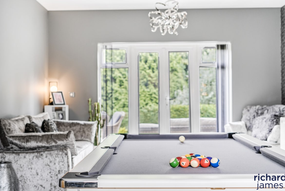 The ground floor living accommodation comprises; a large spacious entrance hall offering an abundance of space courtesy of the tall ceilings above, a large bay fronted lounge/dining room with french doors to the rear currently housing a pool table this room offers a large living space, the snug which also offers access to the rear garden, plus the living room which is currently used as the cosy lounge of the property, W.C and a large kitchen/breakfast room with a feature bay window to the front, this stunning kitchen offers fully fitted appliances, a utility room and also offers the space for a breakfast table if you want one.