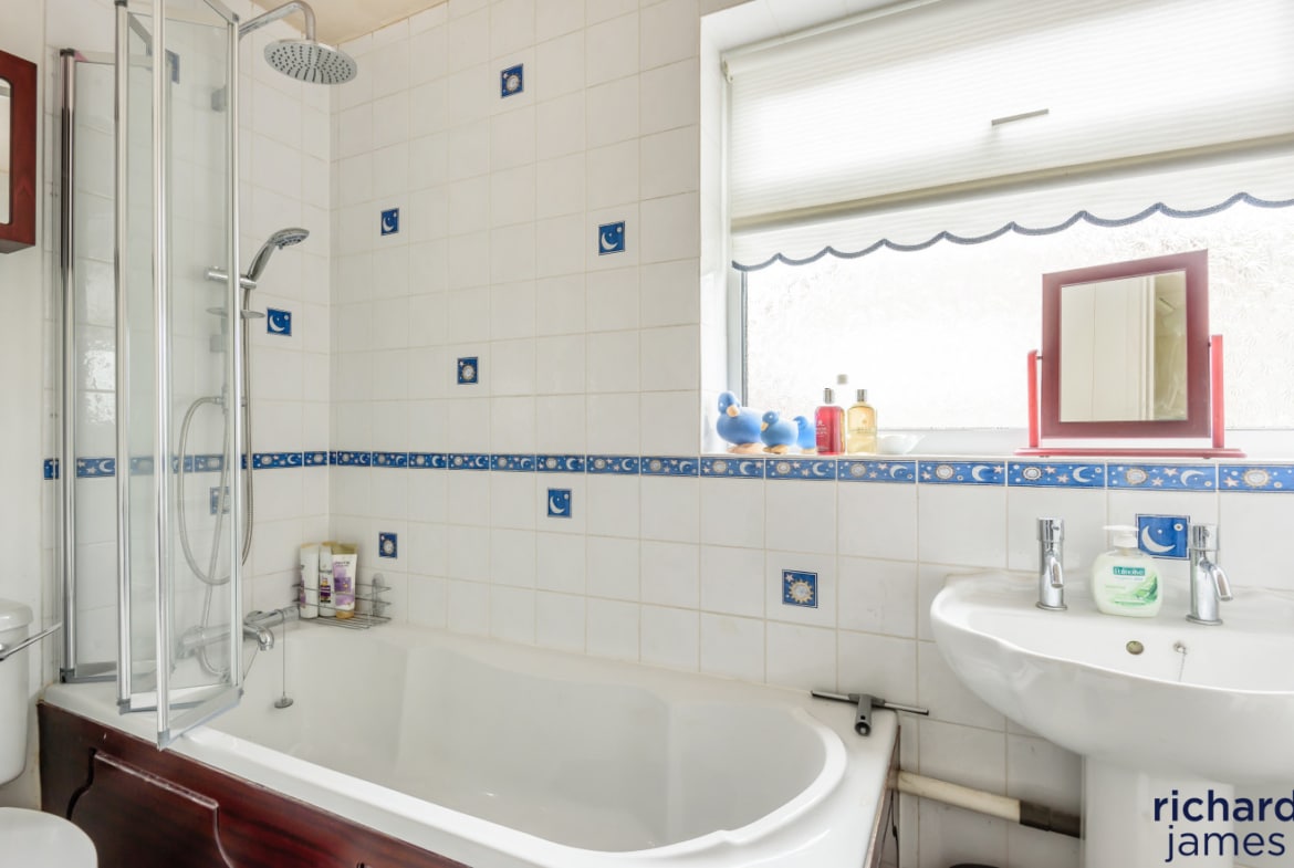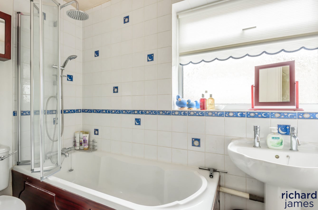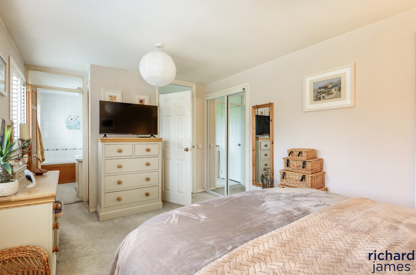 Upstairs, there are four bedrooms. The principal bedroom benefits from an en-suite shower room and built-in wardrobes, while the second bedroom also features fitted wardrobes.